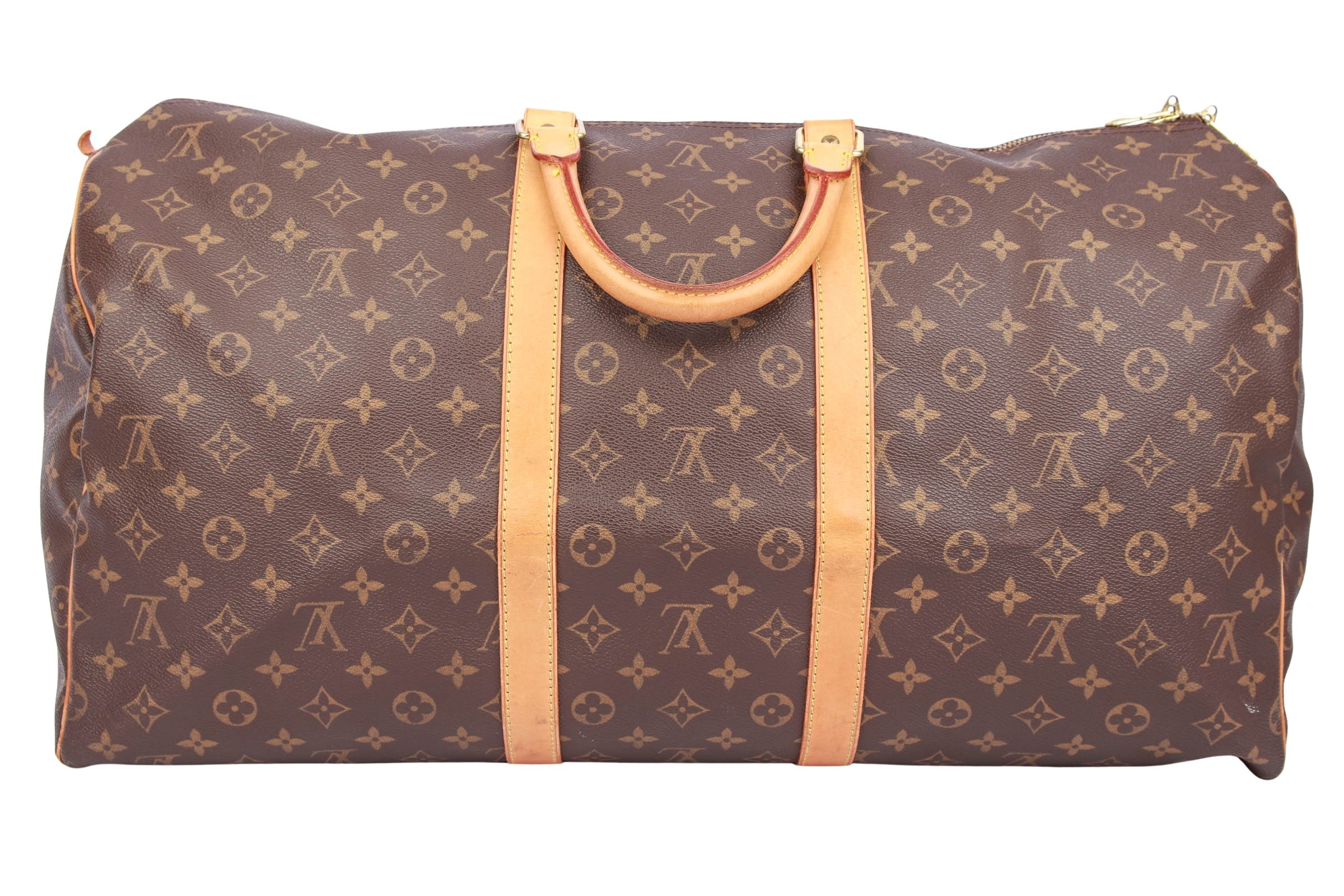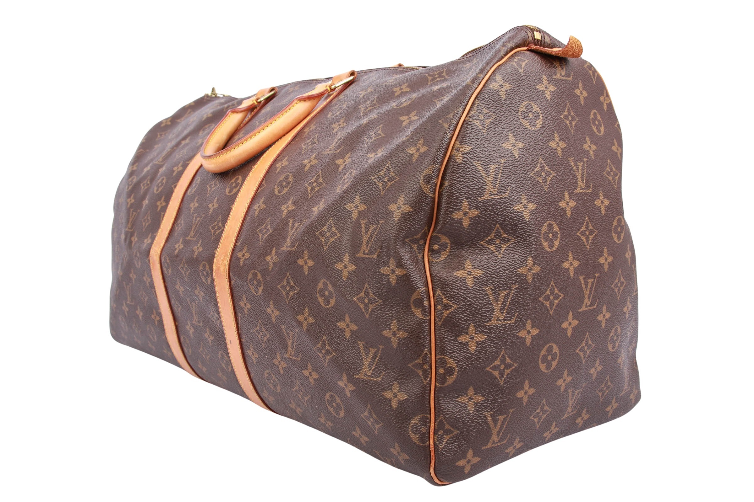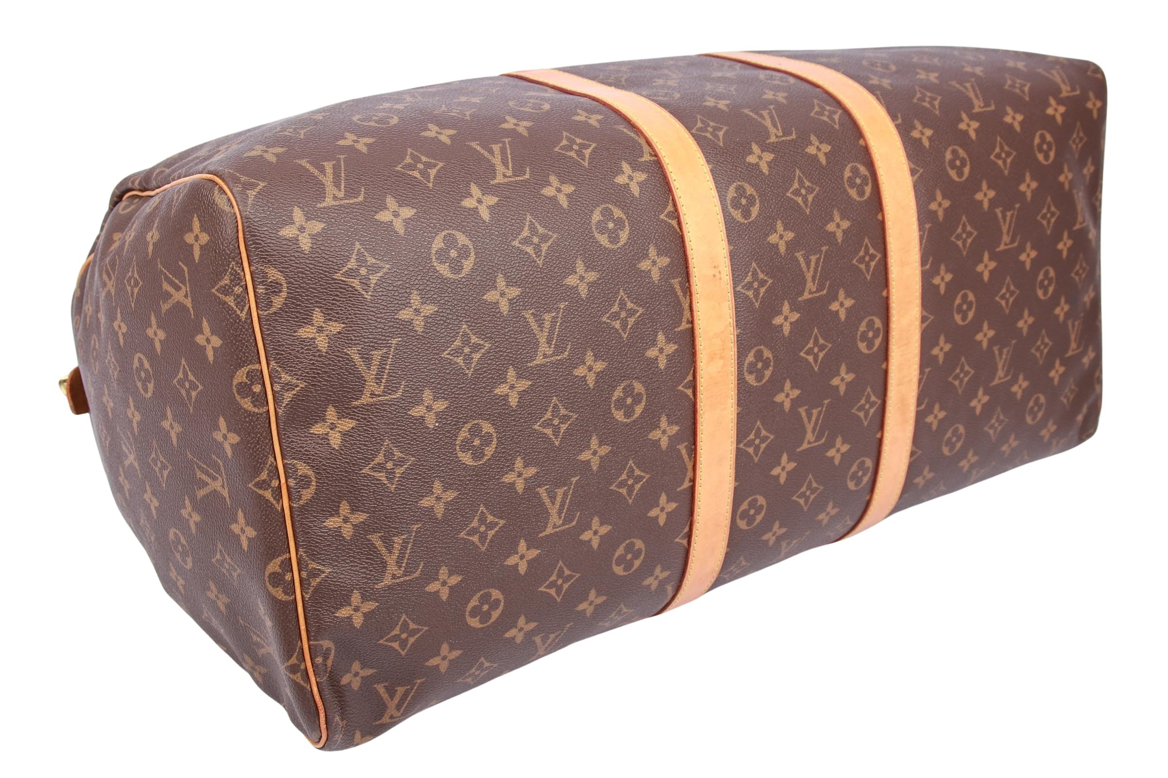 Die Louis Vuitton Keepall 55 in klassischem Monogram Canvas ist eine ikonische Reisetasche mit zeitlosem Design. Sie bietet großzügigen Stauraum und erfüllt die gängigen Handgepäckmaße, was sie zum perfekten Begleiter für Wochenendtrips oder Kurzreisen macht. Ausgestattet mit robusten Ledergriffen und einem flexiblen, leichten Aufbau, verbindet sie Stil, Funktionalität und Reisekomfort auf höchstem Niveau.