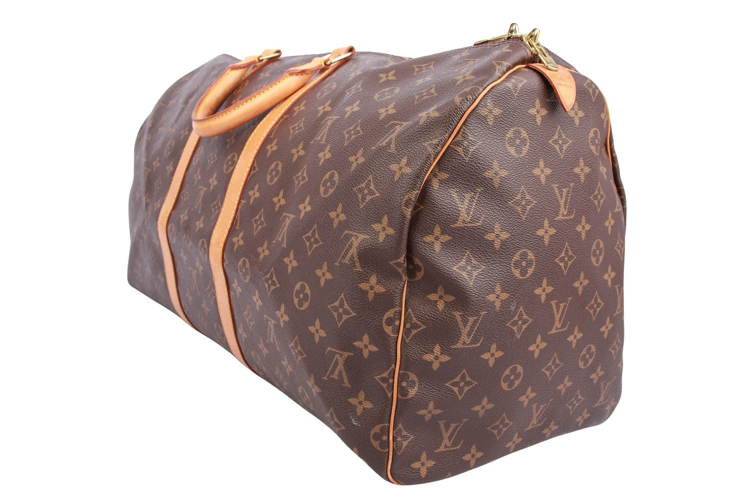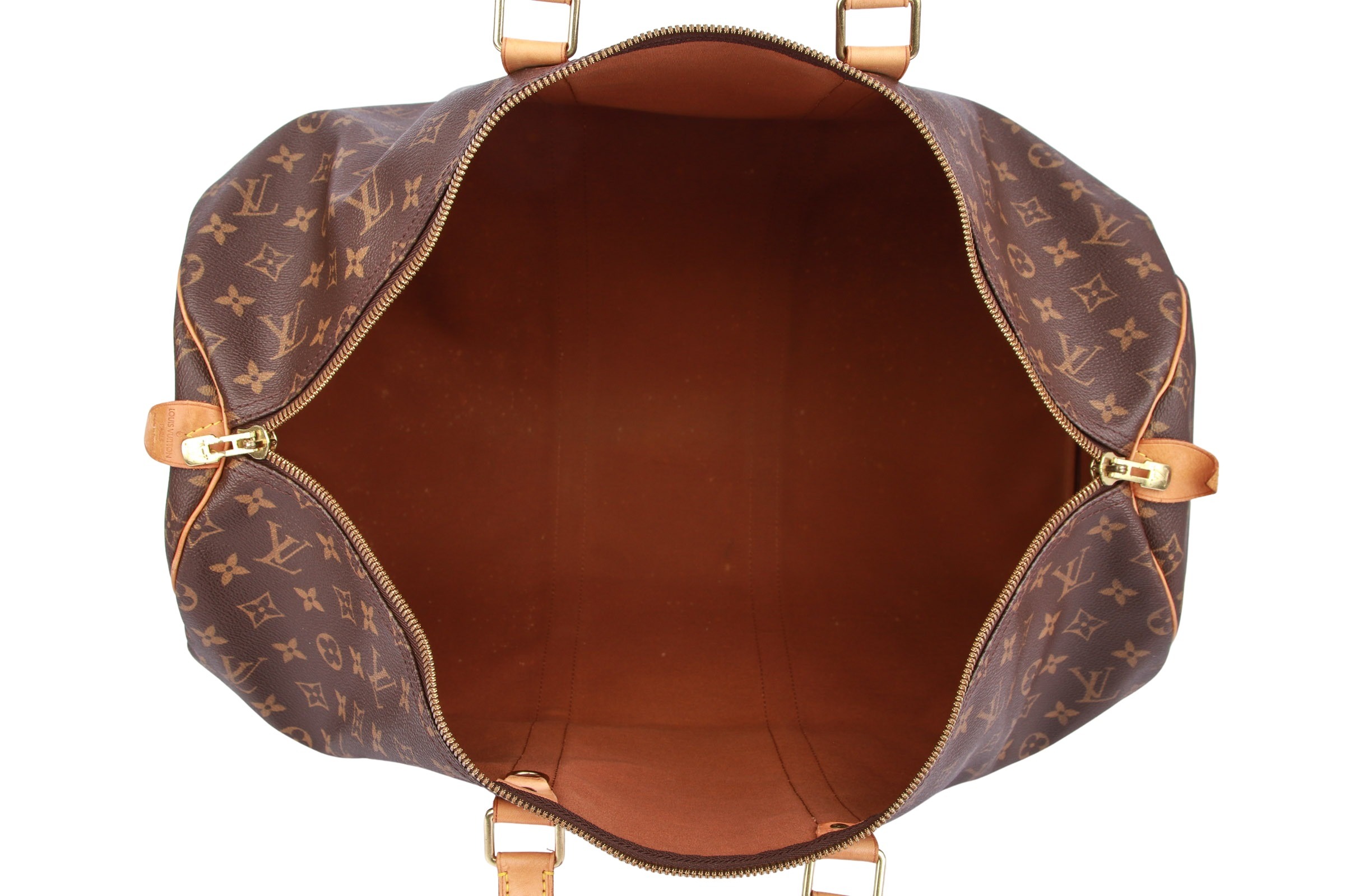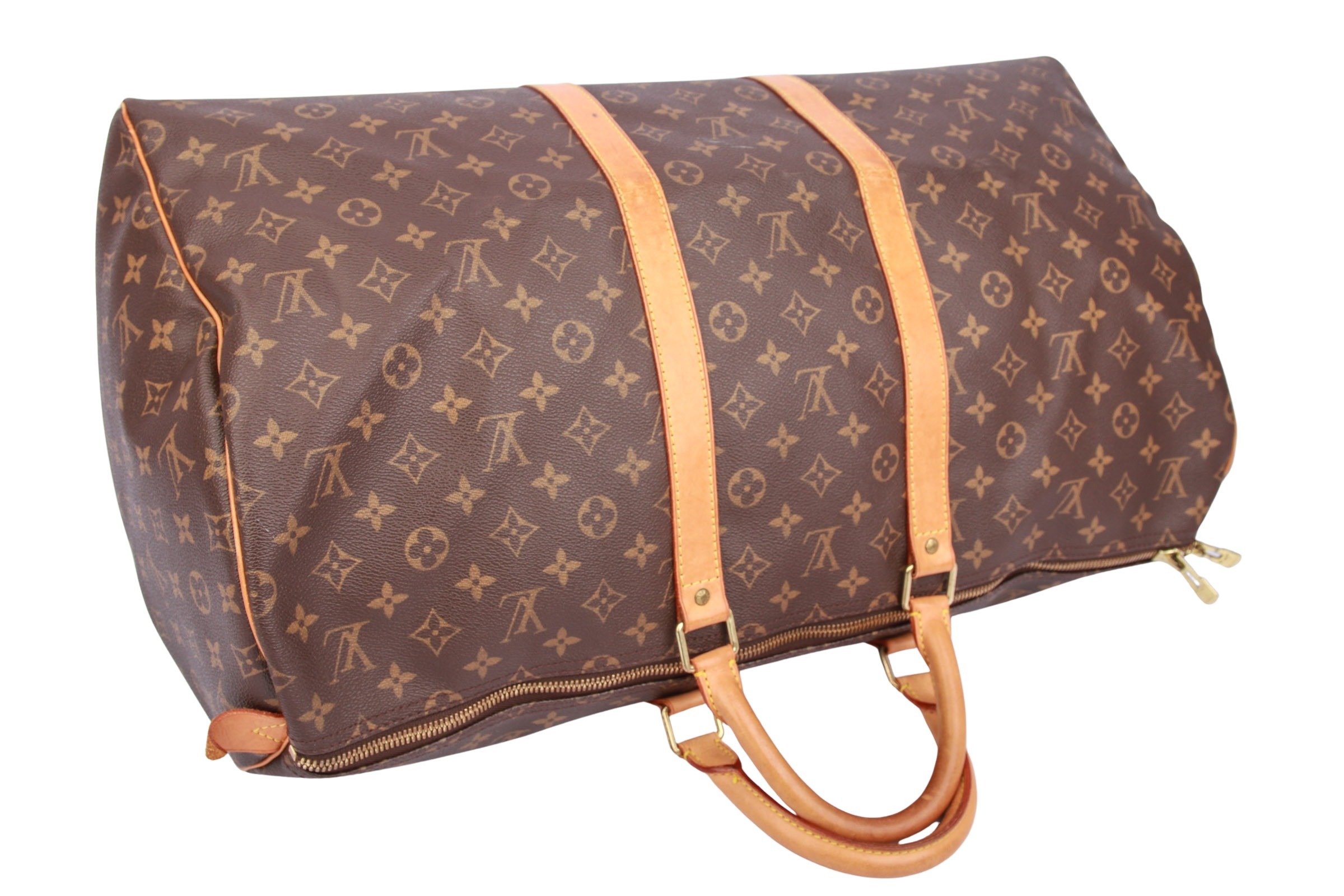 Die Louis Vuitton Keepall 55 in klassischem Monogram Canvas ist eine ikonische Reisetasche mit zeitlosem Design. Sie bietet großzügigen Stauraum und erfüllt die gängigen Handgepäckmaße, was sie zum perfekten Begleiter für Wochenendtrips oder Kurzreisen macht. Ausgestattet mit robusten Ledergriffen und einem flexiblen, leichten Aufbau, verbindet sie Stil, Funktionalität und Reisekomfort auf höchstem Niveau.