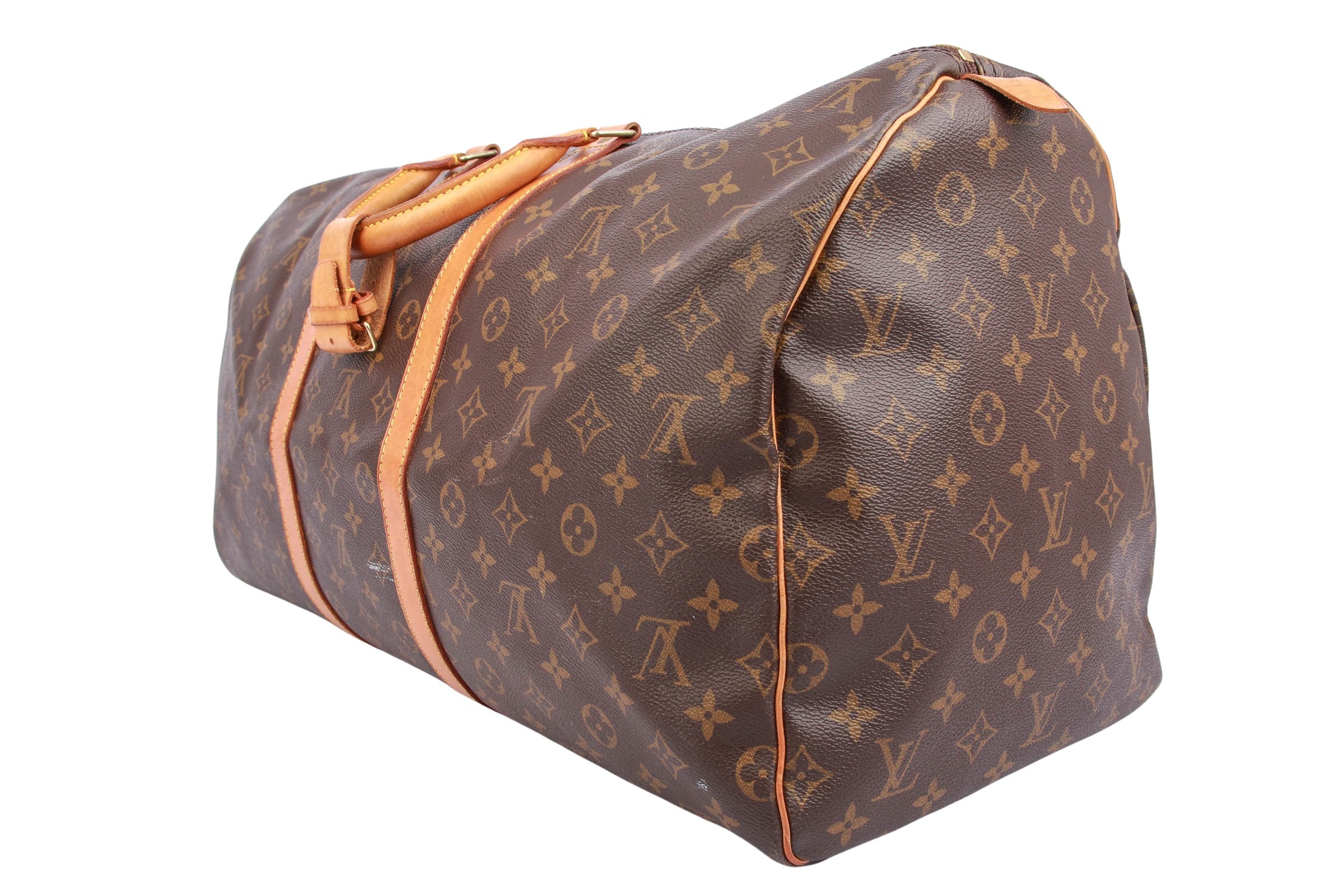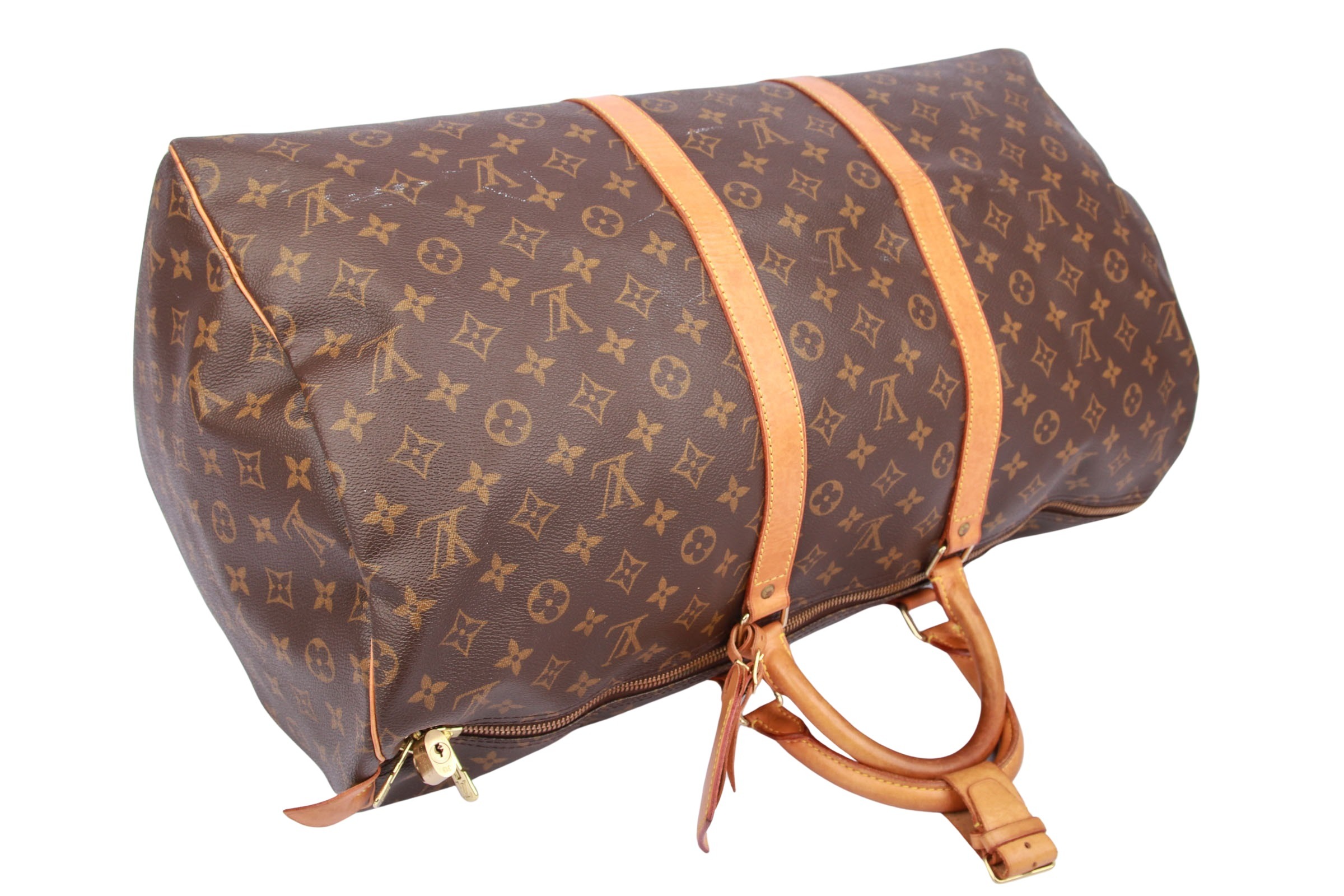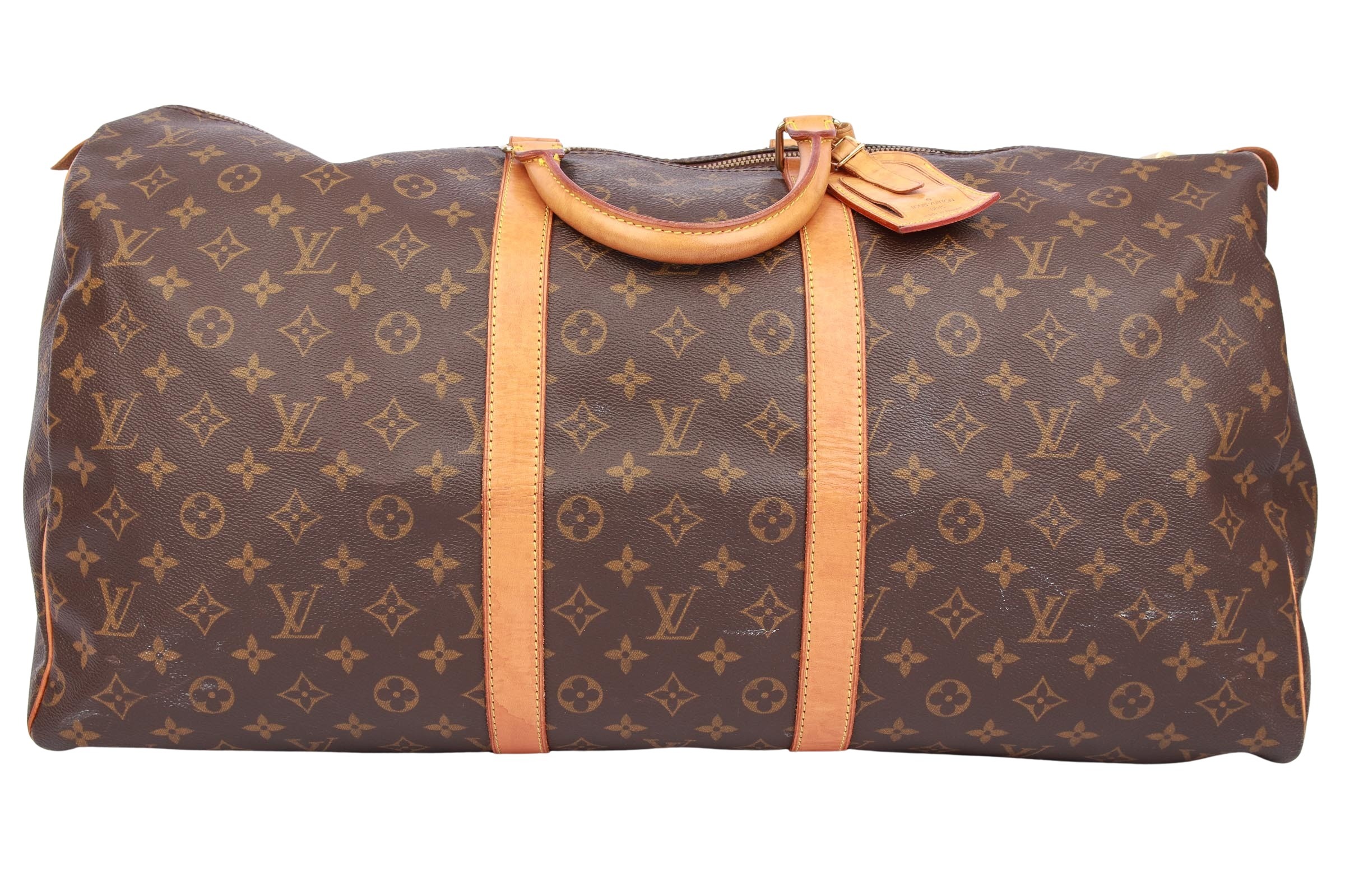 Die Louis Vuitton Keepall 55 in klassischem Monogram Canvas ist eine ikonische Reisetasche mit zeitlosem Design. Sie bietet großzügigen Stauraum und erfüllt die gängigen Handgepäckmaße, was sie zum perfekten Begleiter für Wochenendtrips oder Kurzreisen macht. Ausgestattet mit robusten Ledergriffen und einem flexiblen, leichten Aufbau, verbindet sie Stil, Funktionalität und Reisekomfort auf höchstem Niveau.