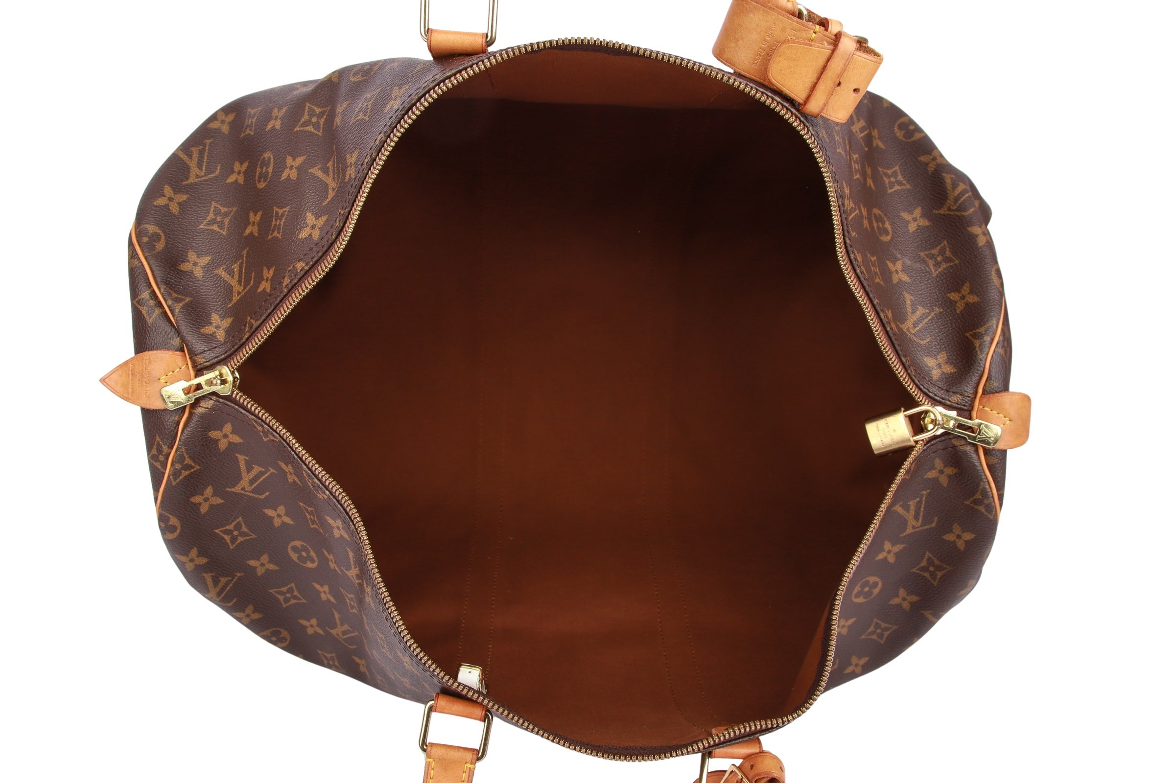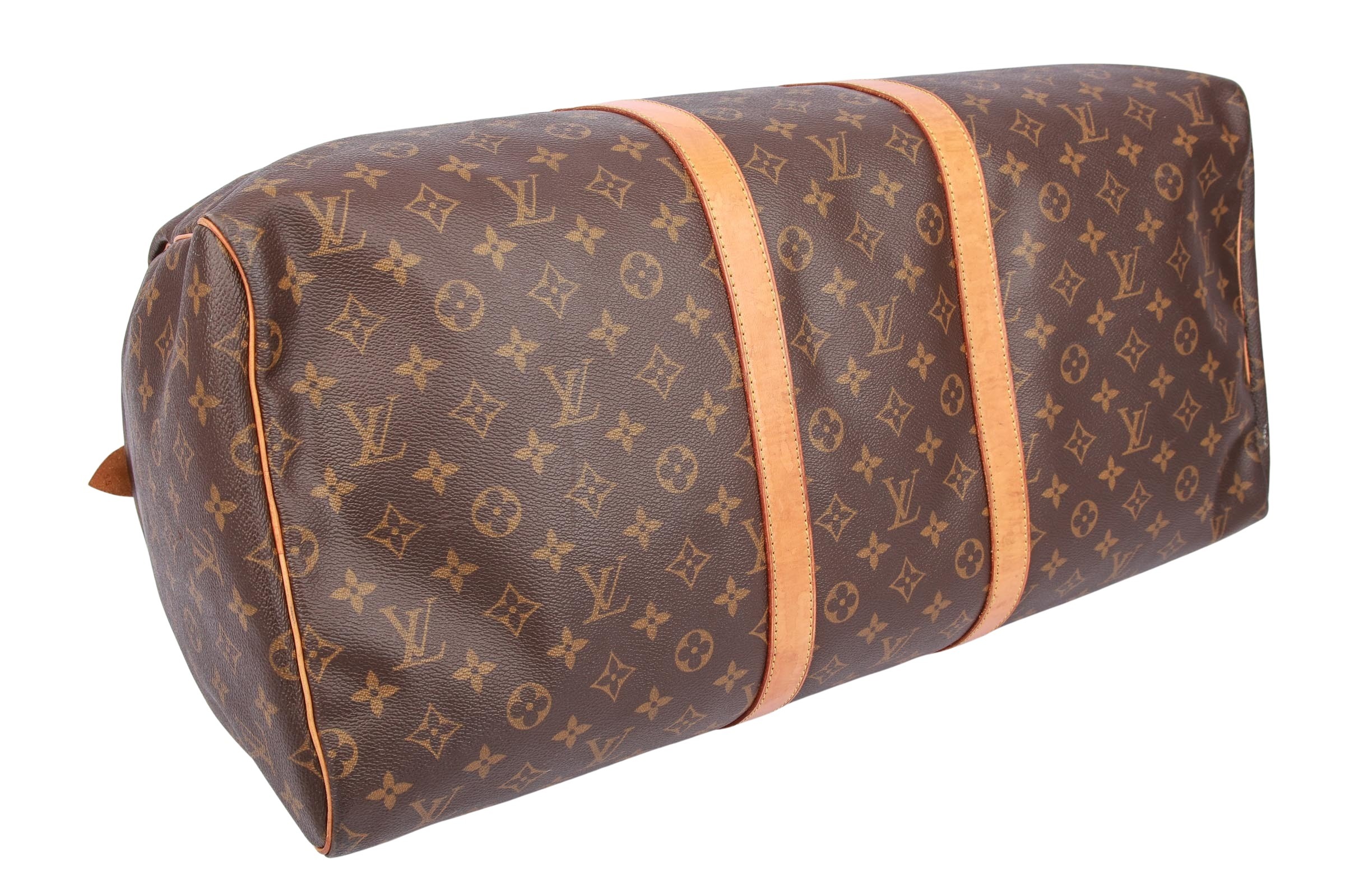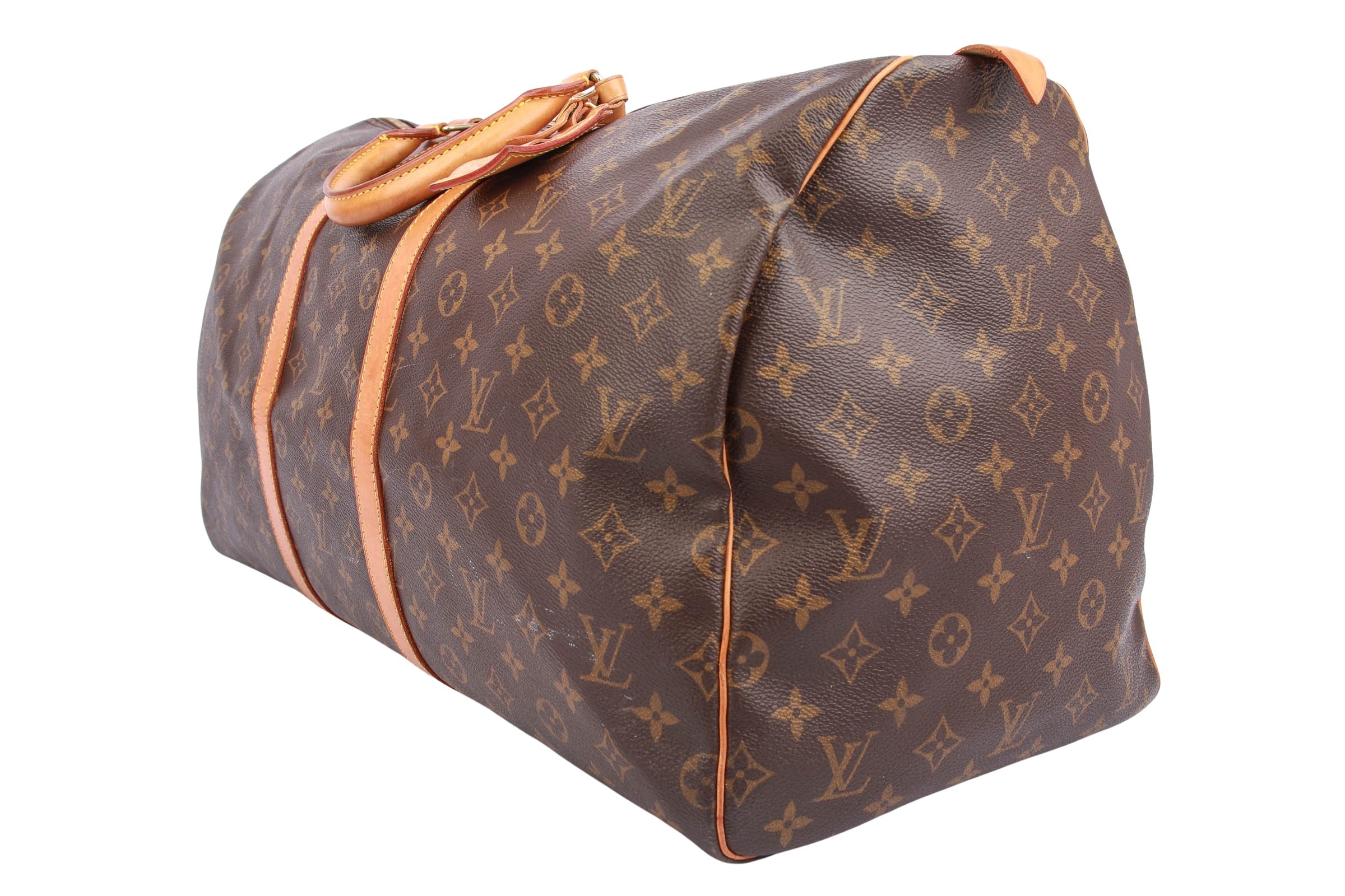 Die Louis Vuitton Keepall 55 in klassischem Monogram Canvas ist eine ikonische Reisetasche mit zeitlosem Design. Sie bietet großzügigen Stauraum und erfüllt die gängigen Handgepäckmaße, was sie zum perfekten Begleiter für Wochenendtrips oder Kurzreisen macht. Ausgestattet mit robusten Ledergriffen und einem flexiblen, leichten Aufbau, verbindet sie Stil, Funktionalität und Reisekomfort auf höchstem Niveau.