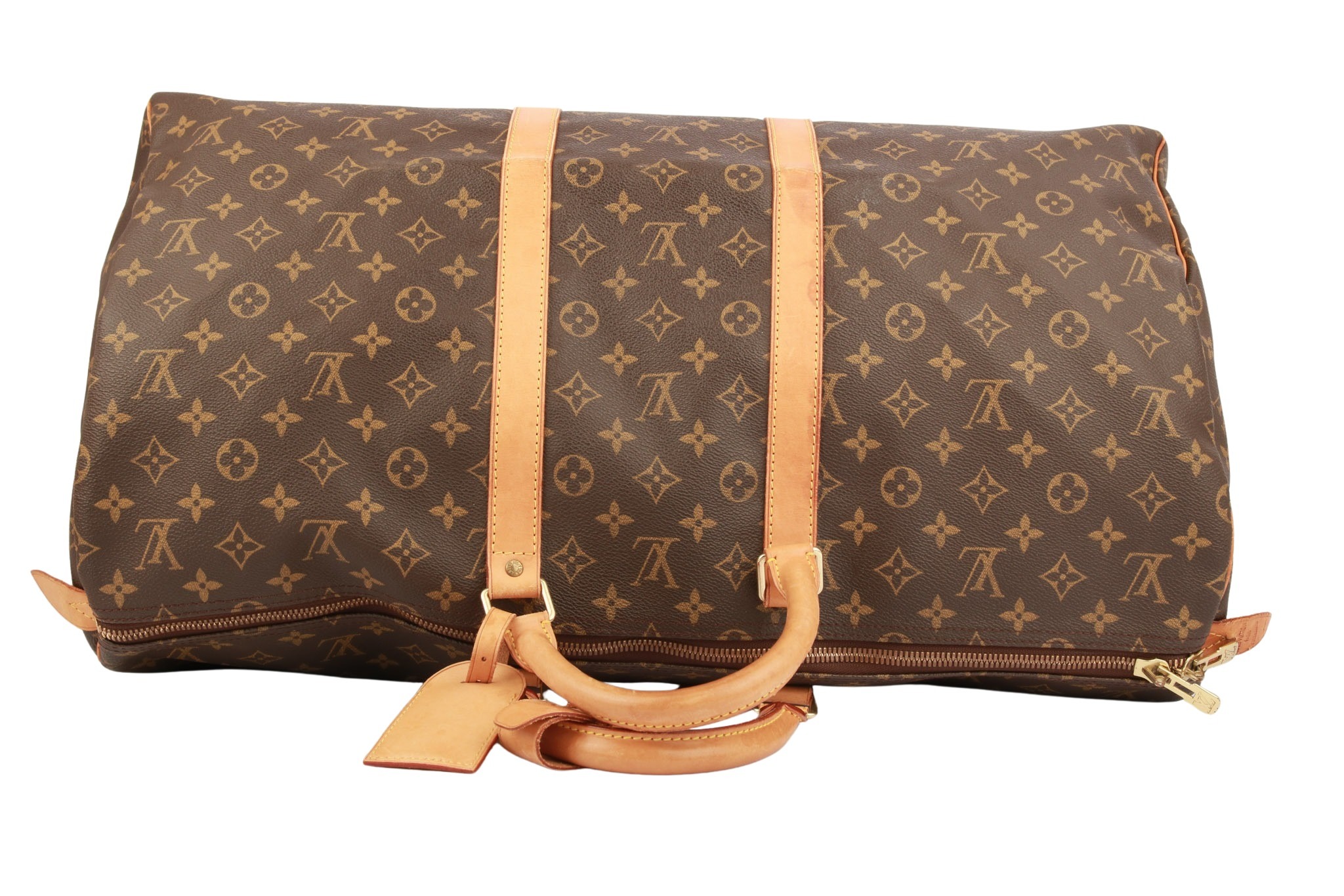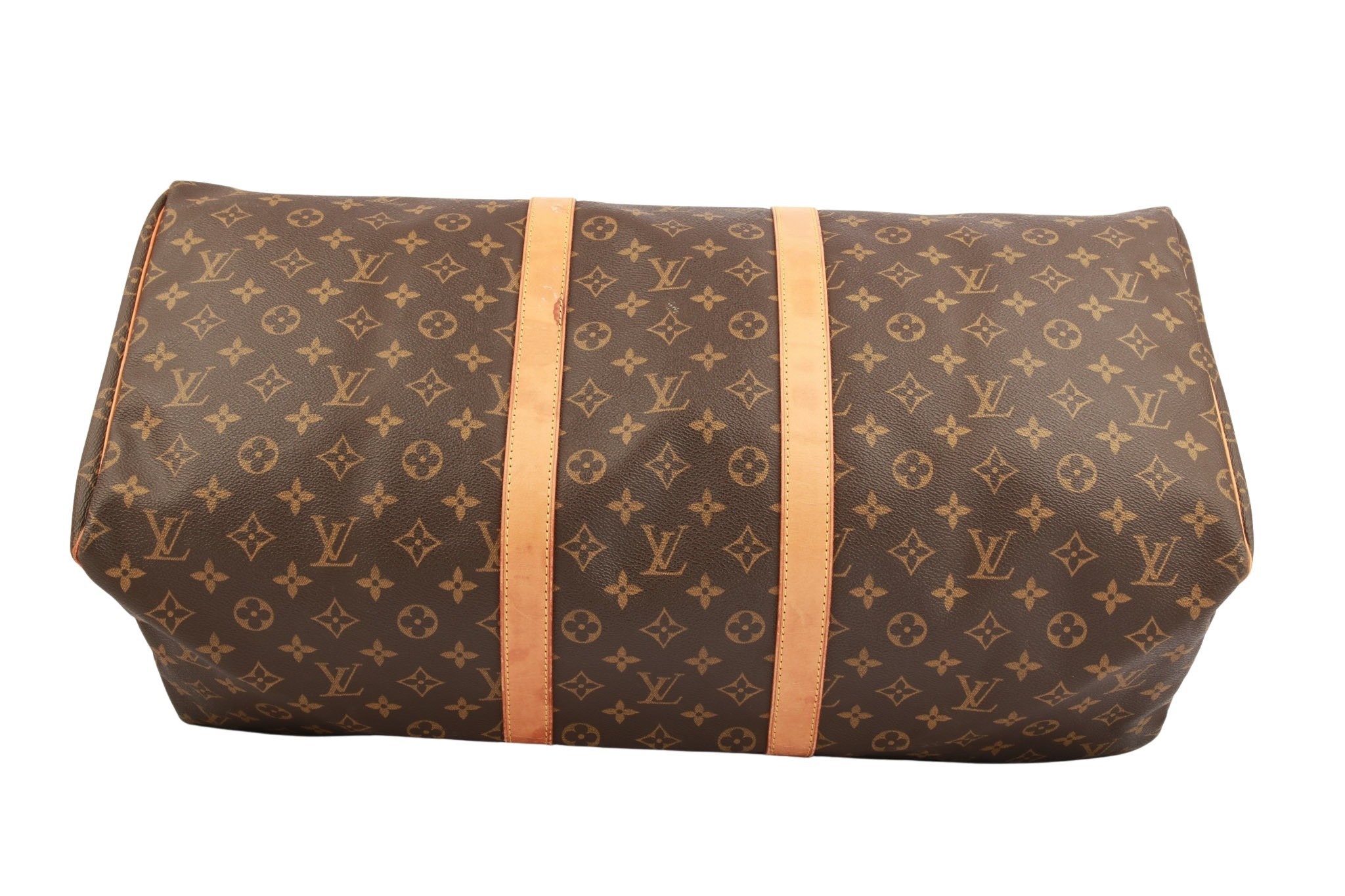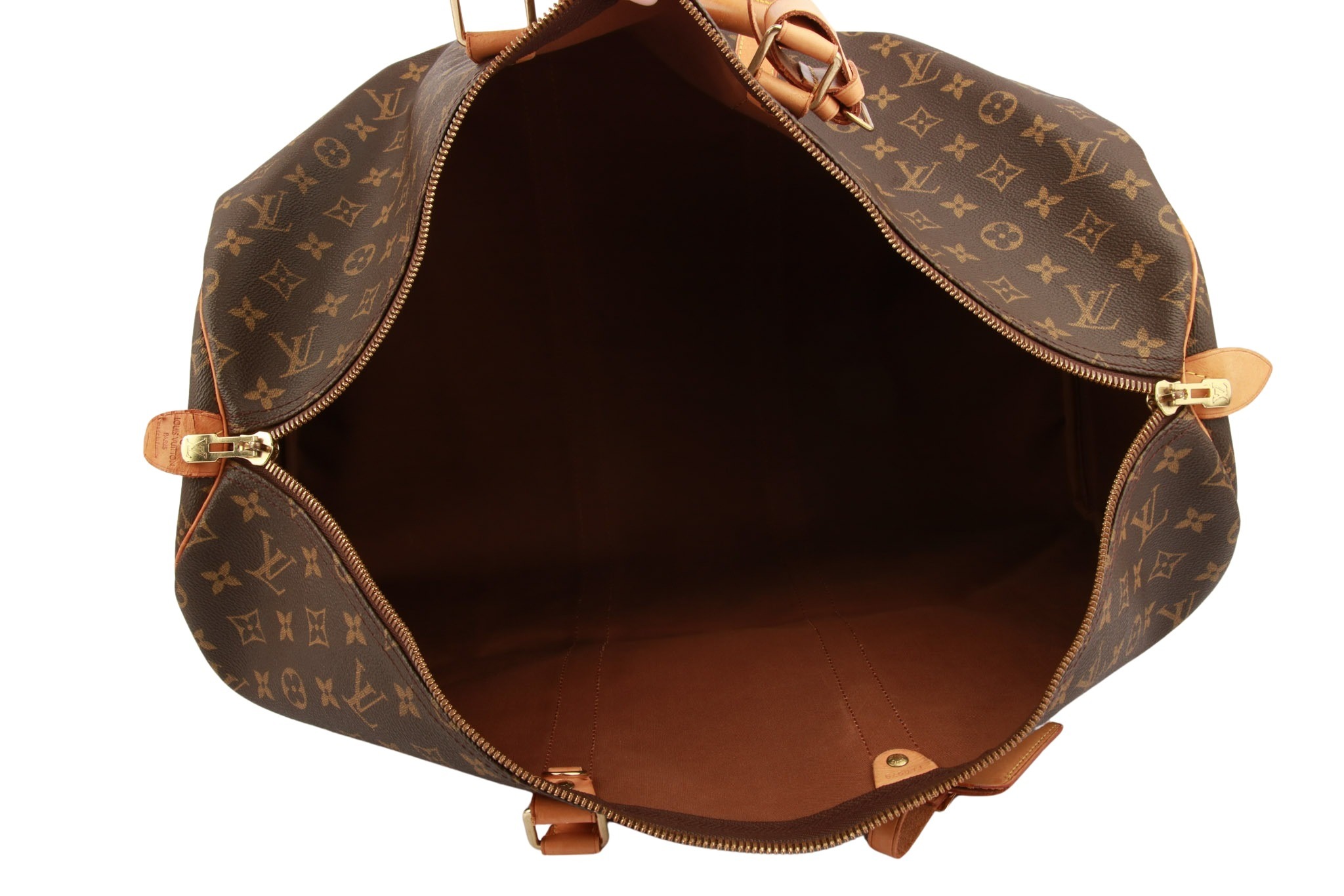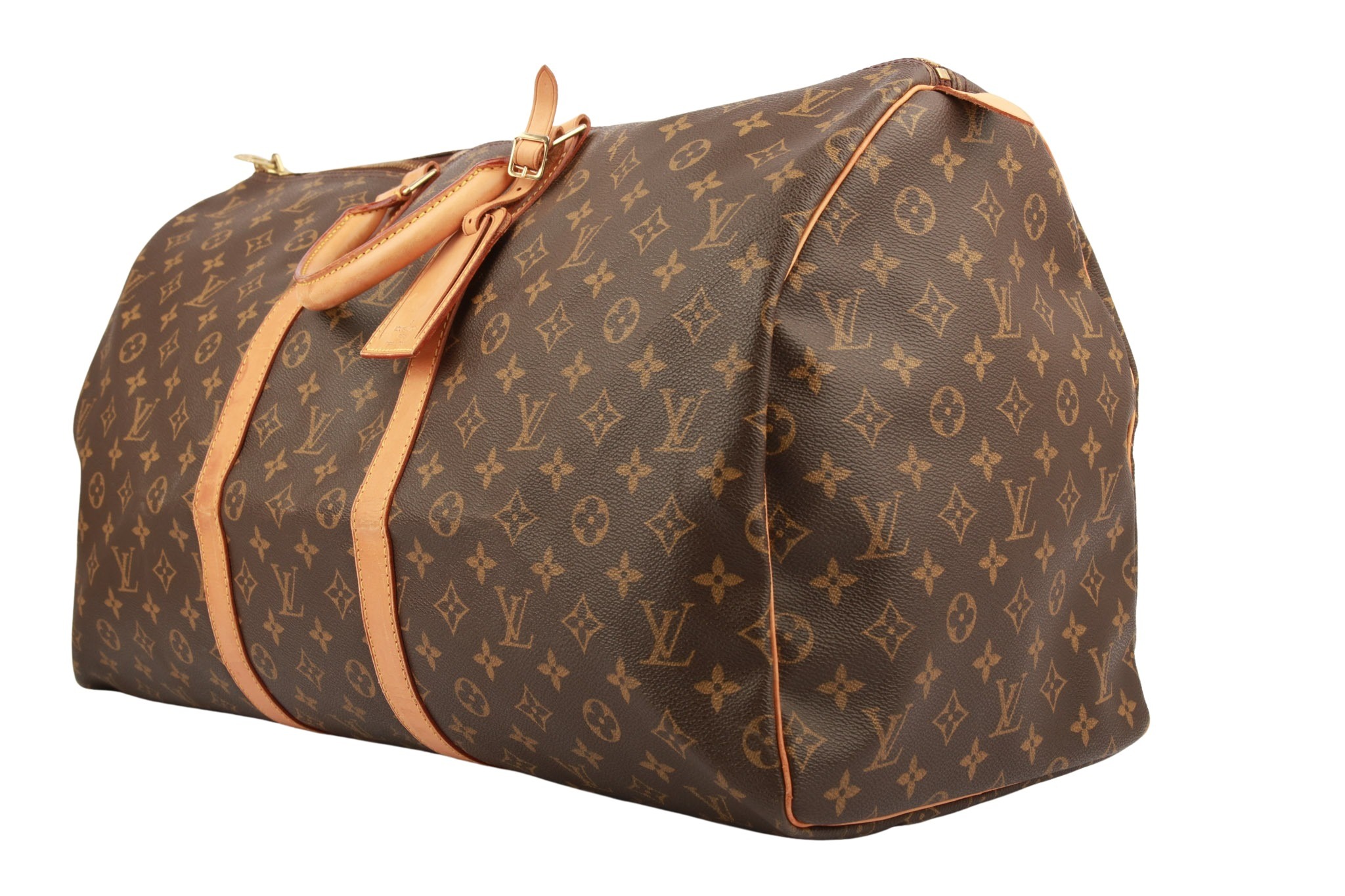 Die Louis Vuitton Keepall 55 in klassischem Monogram Canvas ist eine ikonische Reisetasche mit zeitlosem Design. Sie bietet großzügigen Stauraum und erfüllt die gängigen Handgepäckmaße, was sie zum perfekten Begleiter für Wochenendtrips oder Kurzreisen macht. Ausgestattet mit robusten Ledergriffen und einem flexiblen, leichten Aufbau, verbindet sie Stil, Funktionalität und Reisekomfort auf höchstem Niveau.
