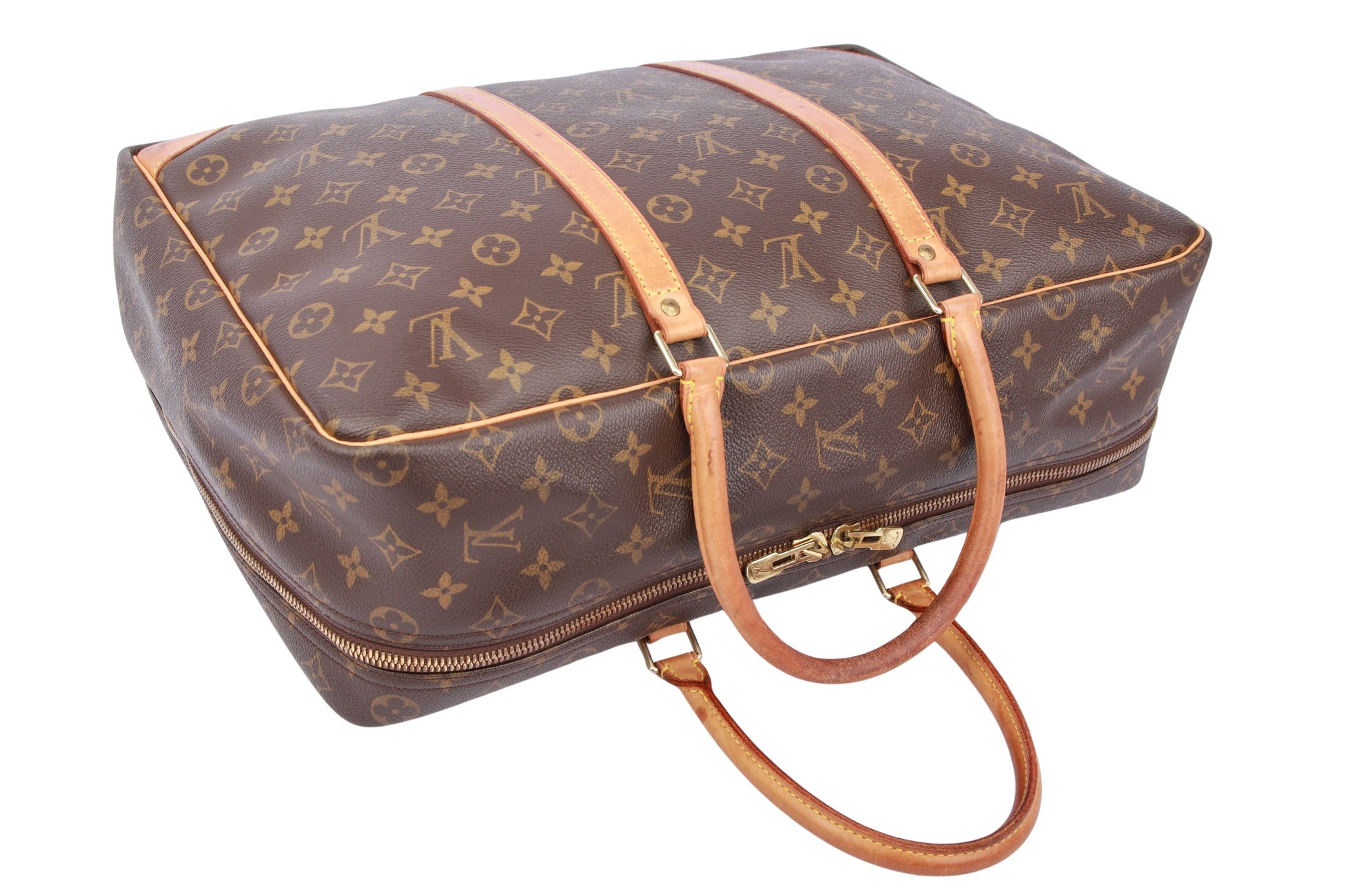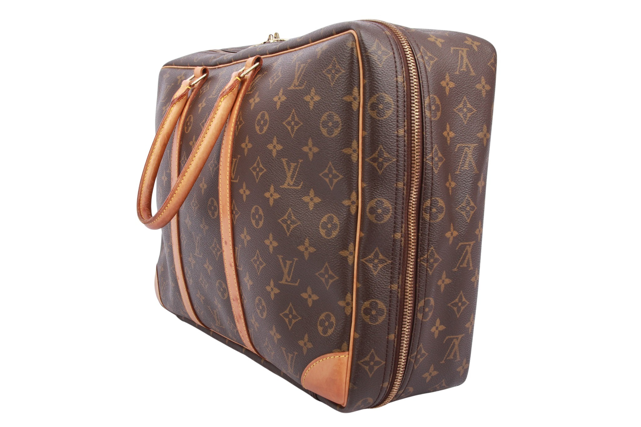 Die Louis Vuitton Sirius 45 aus klassischem Monogram Canvas ist ein eleganter und funktionaler Reisebegleiter für stilbewusste Vielreisende. Mit ihrer rechteckigen Form und dem strukturierten Aufbau bietet sie ausreichend Platz für Kleidung und persönliche Gegenstände – ideal für Wochenendtrips oder kurze Geschäftsreisen. Das ikonische Monogram Canvas ist nicht nur optisch ansprechend, sondern auch besonders strapazierfähig und leicht zu reinigen. Abgerundet wird das Design durch naturbelassene Lederdetails, goldfarbene Beschläge und einen robusten Doppelreißverschluss. Im Inneren sorgt ein Textilfutter mit Halteriemen für Ordnung und Schutz. Die Sirius 45 vereint zeitlose Eleganz mit praktischer Raffinesse – ein Klassiker unter den Luxus-Reisegepäckstücken.