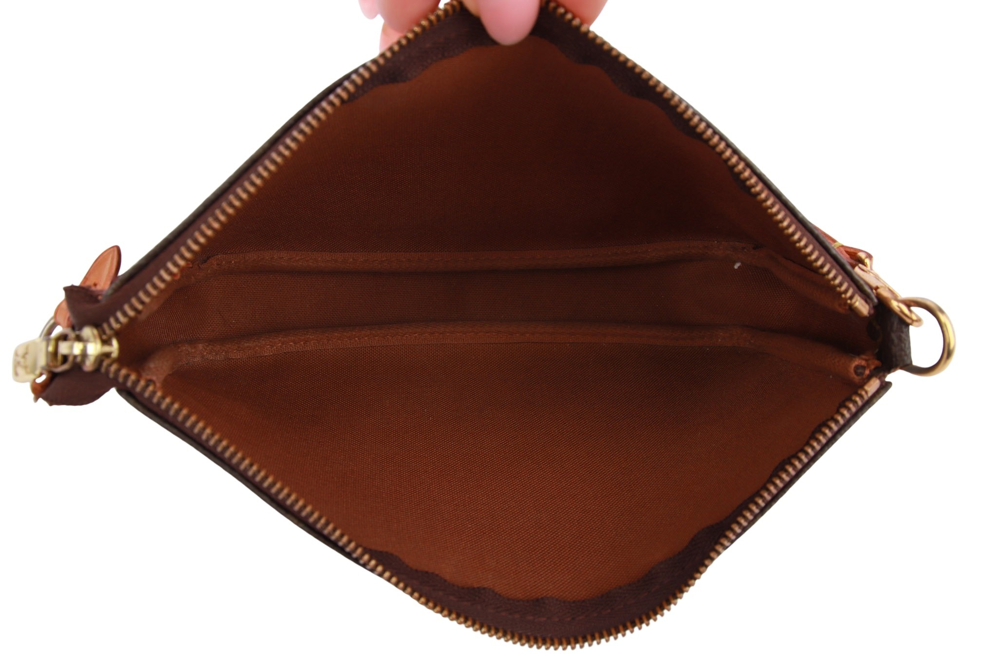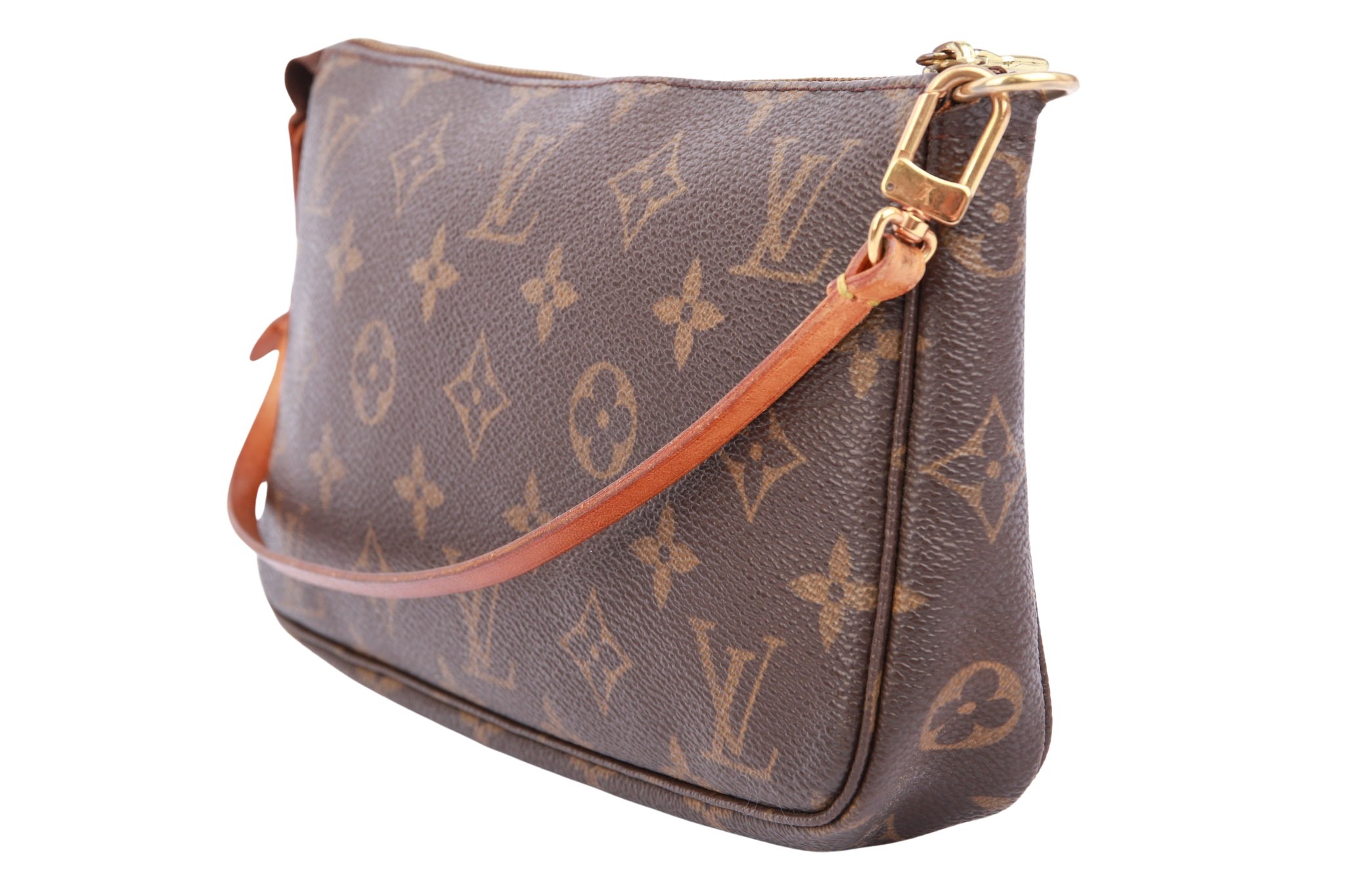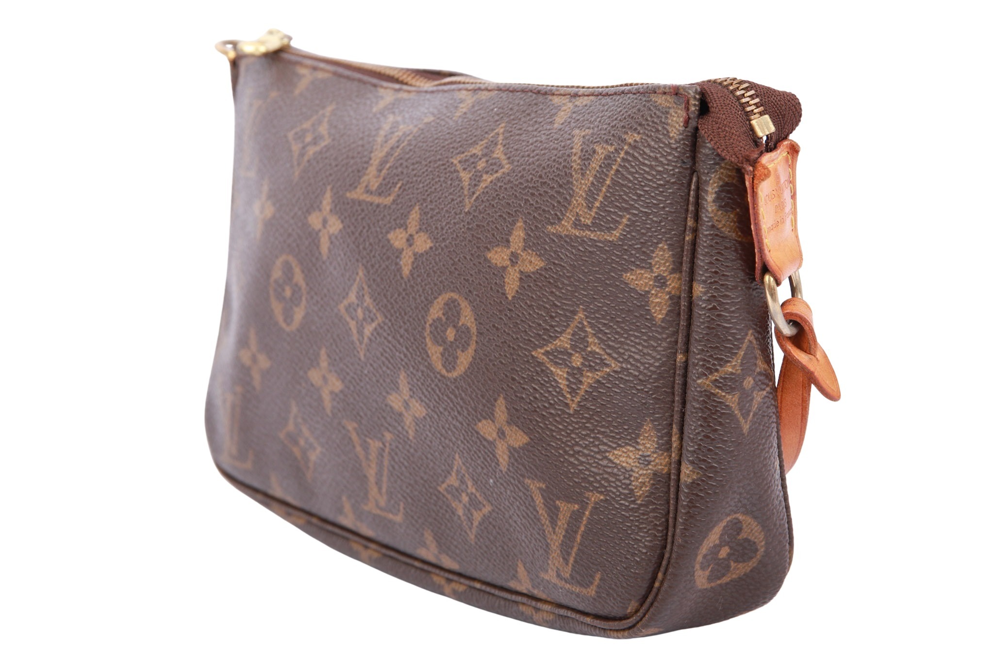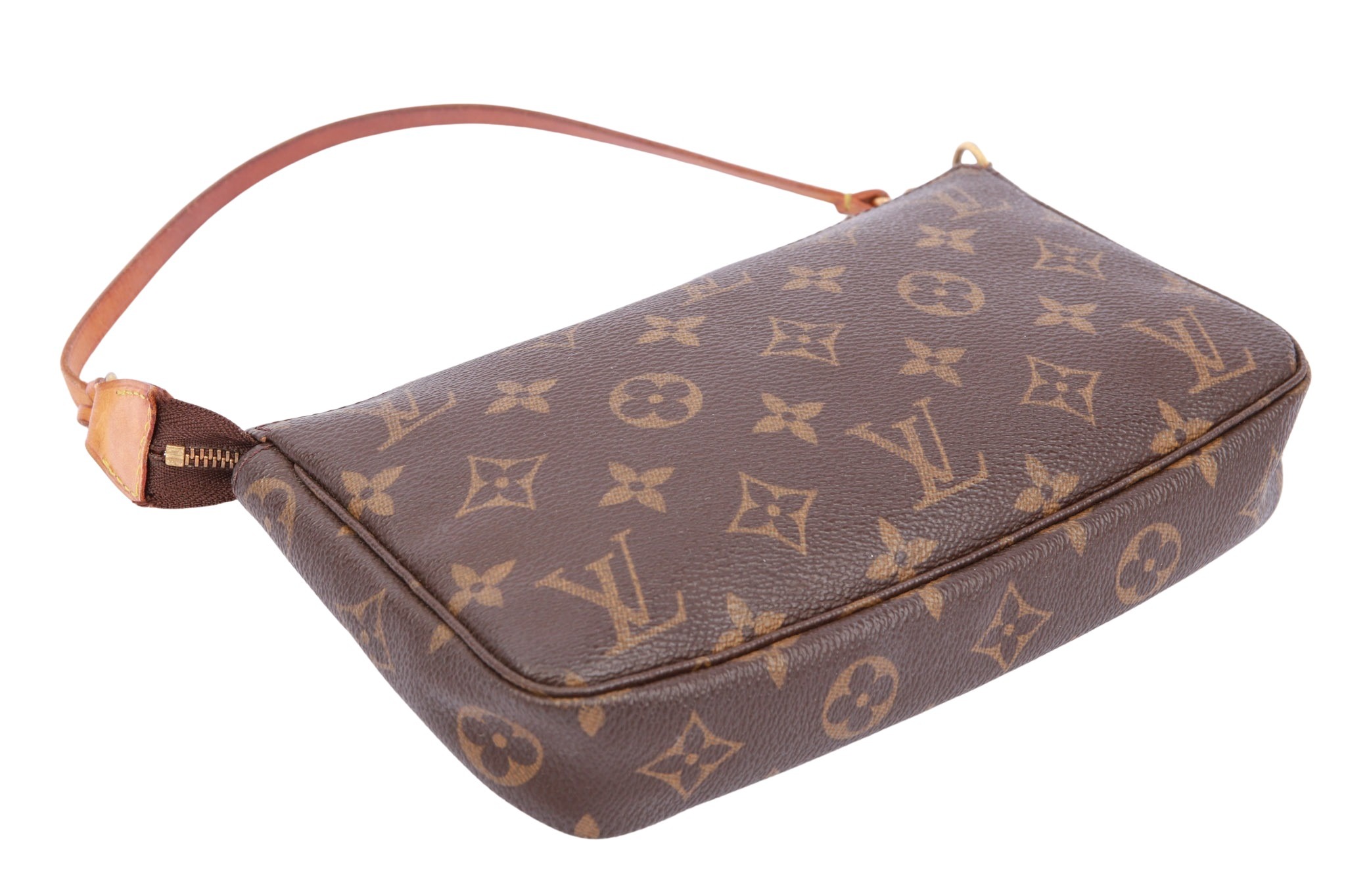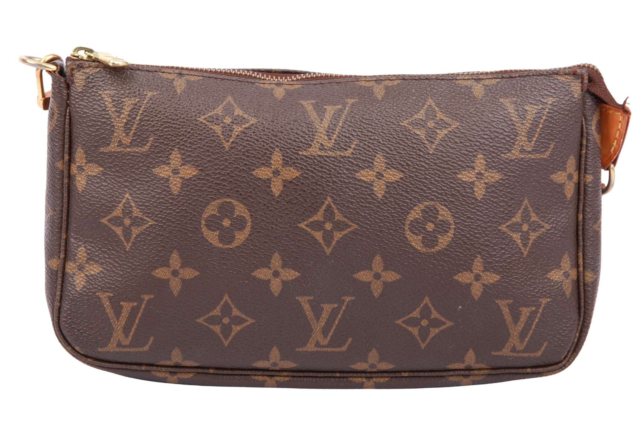Die Louis Vuitton Pochette Monogram Canvas ist eine kompakte und vielseitige Tasche, die sich ideal für den Alltag oder den Abend eignet. Gefertigt aus dem ikonischen Monogram Canvas mit natürlichen Lederdetails, kombiniert sie zeitlosen Stil mit praktischer Funktion. Trotz ihrer handlichen Größe bietet sie Platz für das Wesentliche – wie Handy, Schlüssel und Kosmetik. Die Pochette kann als Clutch getragen, am Handgelenk geführt oder dank des abnehmbaren Riemens auch an größeren Taschen befestigt werden. Ein echtes Must-have, das sowohl einzeln als auch als Ergänzung zu anderen Louis Vuitton Taschen überzeugt.