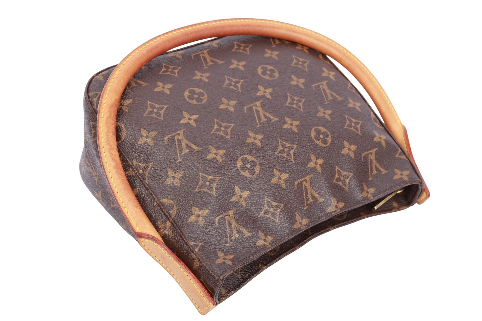 Die Louis Vuitton Looping MM in klassischem Monogram Canvas ist eine elegante Schultertasche mit markant geschwungenem Henkel aus natürlichem Vachetta-Leder. Ihre mittelgroße Größe bietet ausreichend Platz für den täglichen Gebrauch, während das stabile Canvas und das zeitlose Design für langlebige Qualität und stilvolle Vielseitigkeit sorgen. Ein echter Klassiker aus dem Louis Vuitton Sortiment.