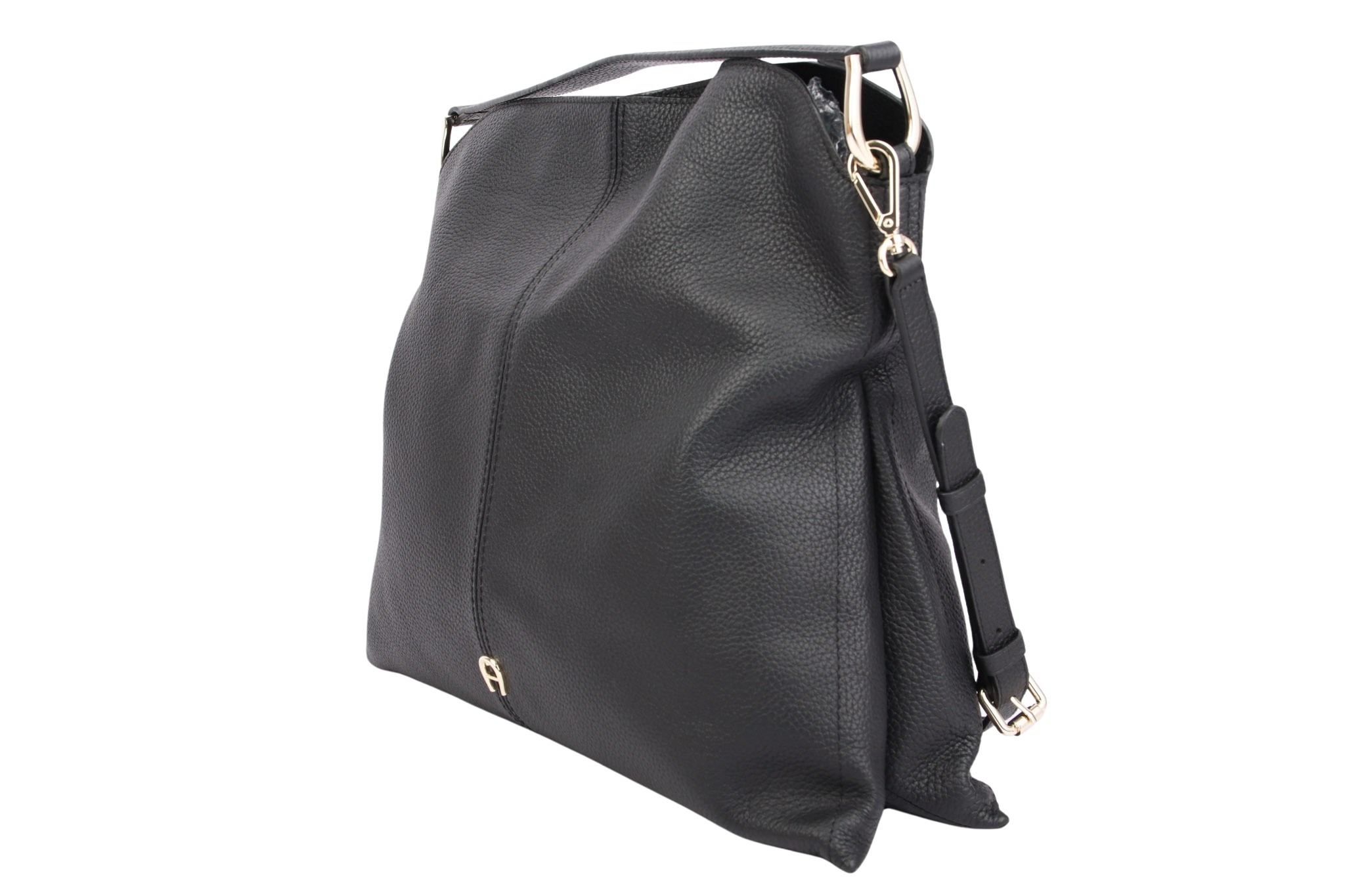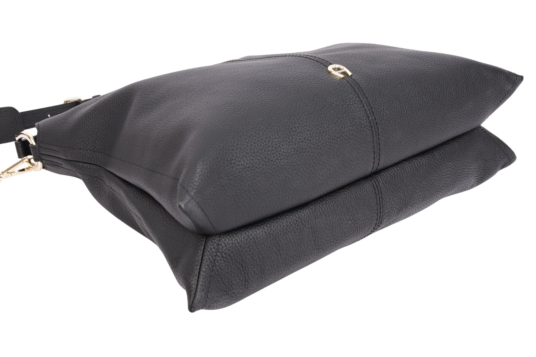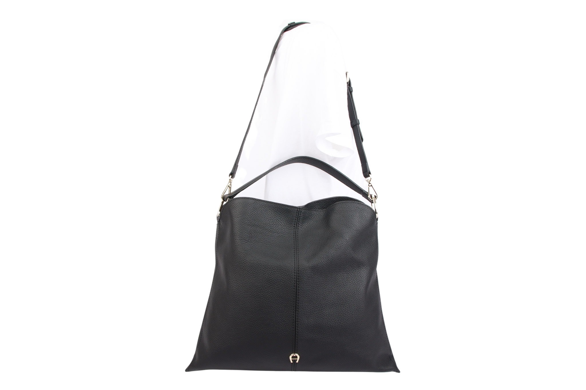Diese elegante Aigner Handtasche aus hochwertigem schwarzem Leder vereint zeitloses Design mit erstklassiger Verarbeitung. Das fein genarbte Leder verleiht der Tasche eine edle Optik und sorgt zugleich für Langlebigkeit. Klare Linien und dezente Details unterstreichen den klassischen Stil, der sich mühelos zu Business- wie auch Freizeitlooks kombinieren lässt.
