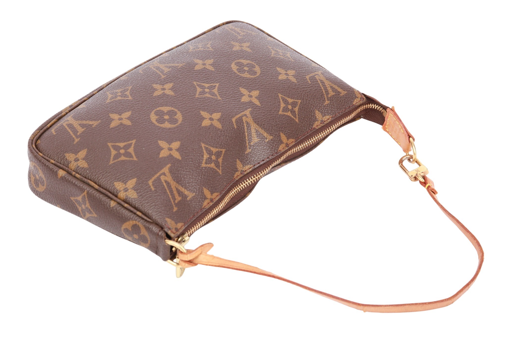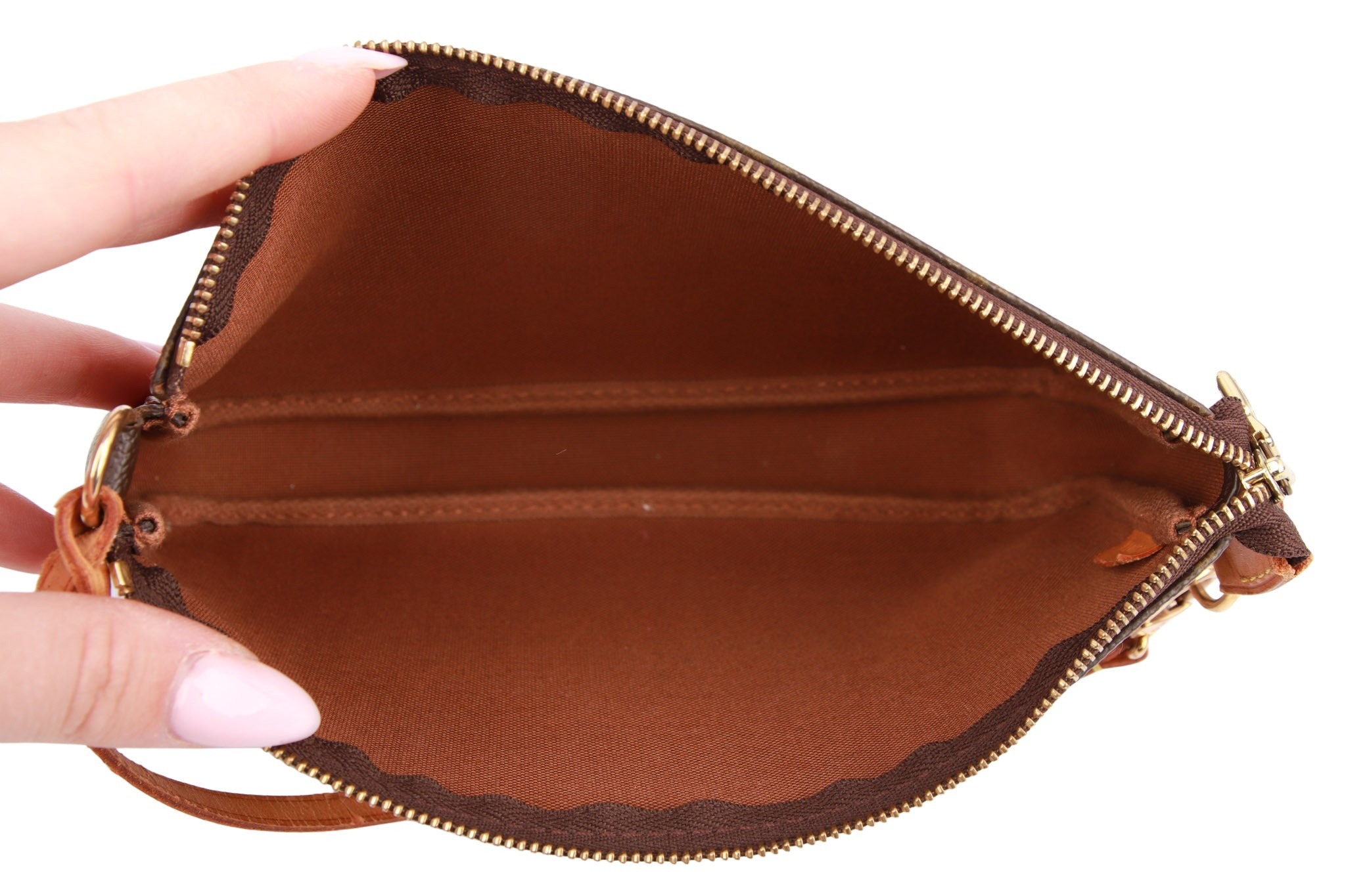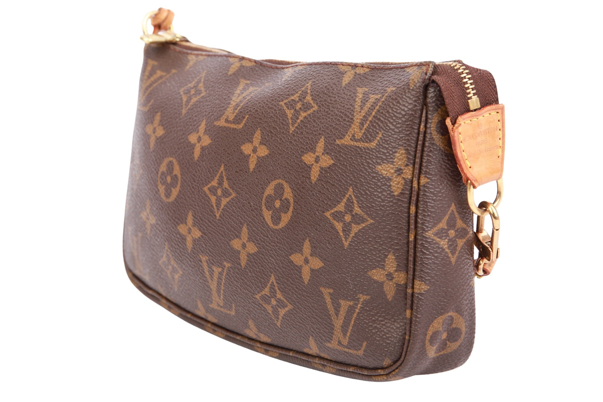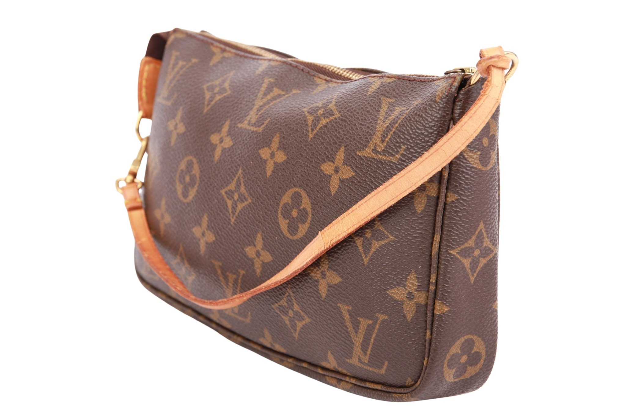 Die Louis Vuitton Pochette Monogram Canvas ist eine kompakte und vielseitige Tasche, die sich ideal für den Alltag oder den Abend eignet. Gefertigt aus dem ikonischen Monogram Canvas mit natürlichen Lederdetails, kombiniert sie zeitlosen Stil mit praktischer Funktion. Trotz ihrer handlichen Größe bietet sie Platz für das Wesentliche – wie Handy, Schlüssel und Kosmetik. Die Pochette kann als Clutch getragen, am Handgelenk geführt oder dank des abnehmbaren Riemens auch an größeren Taschen befestigt werden. Ein echtes Must-have, das sowohl einzeln als auch als Ergänzung zu anderen Louis Vuitton Taschen.