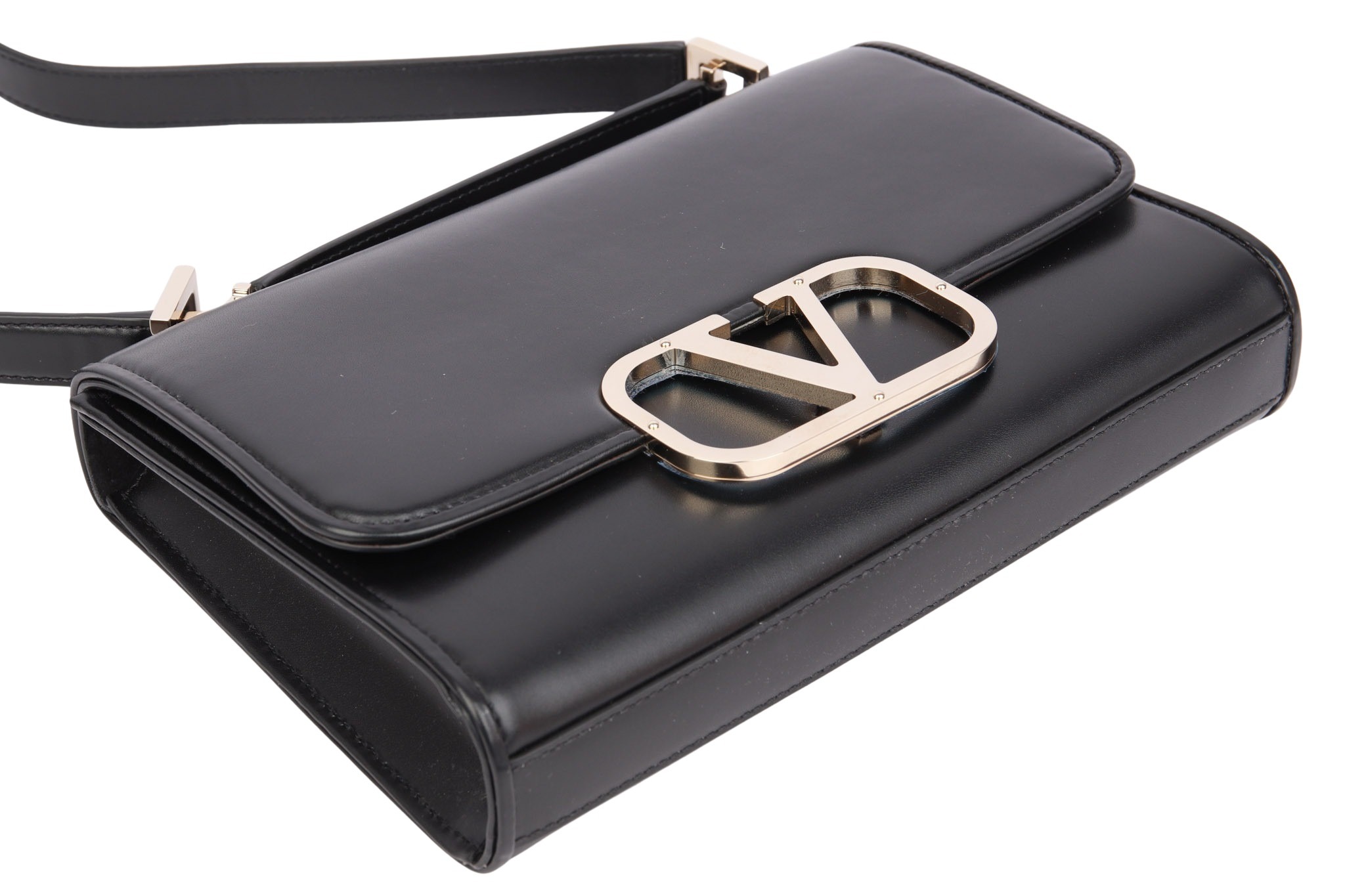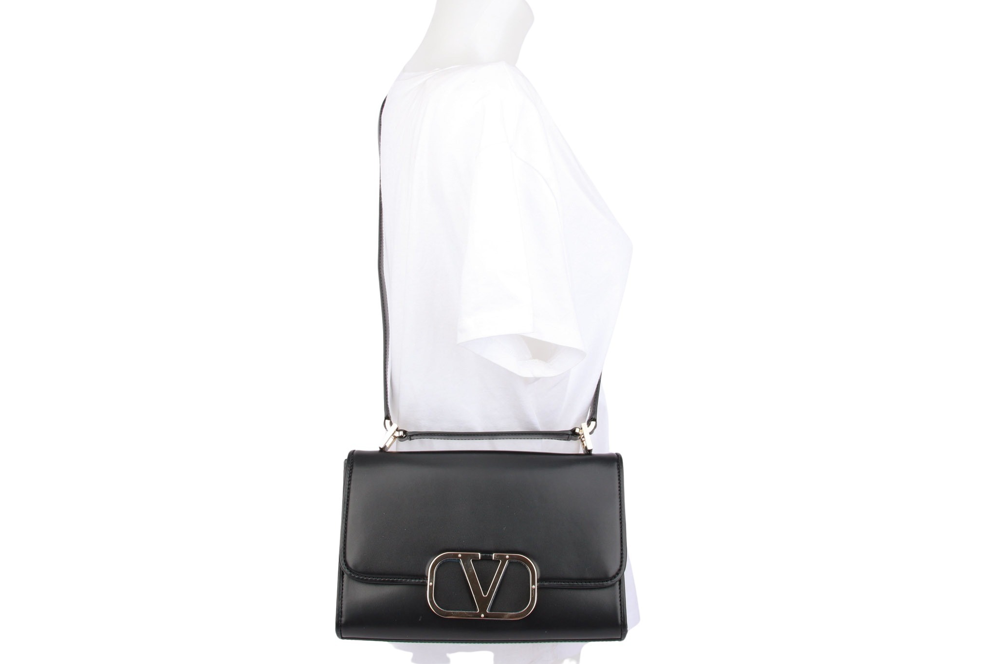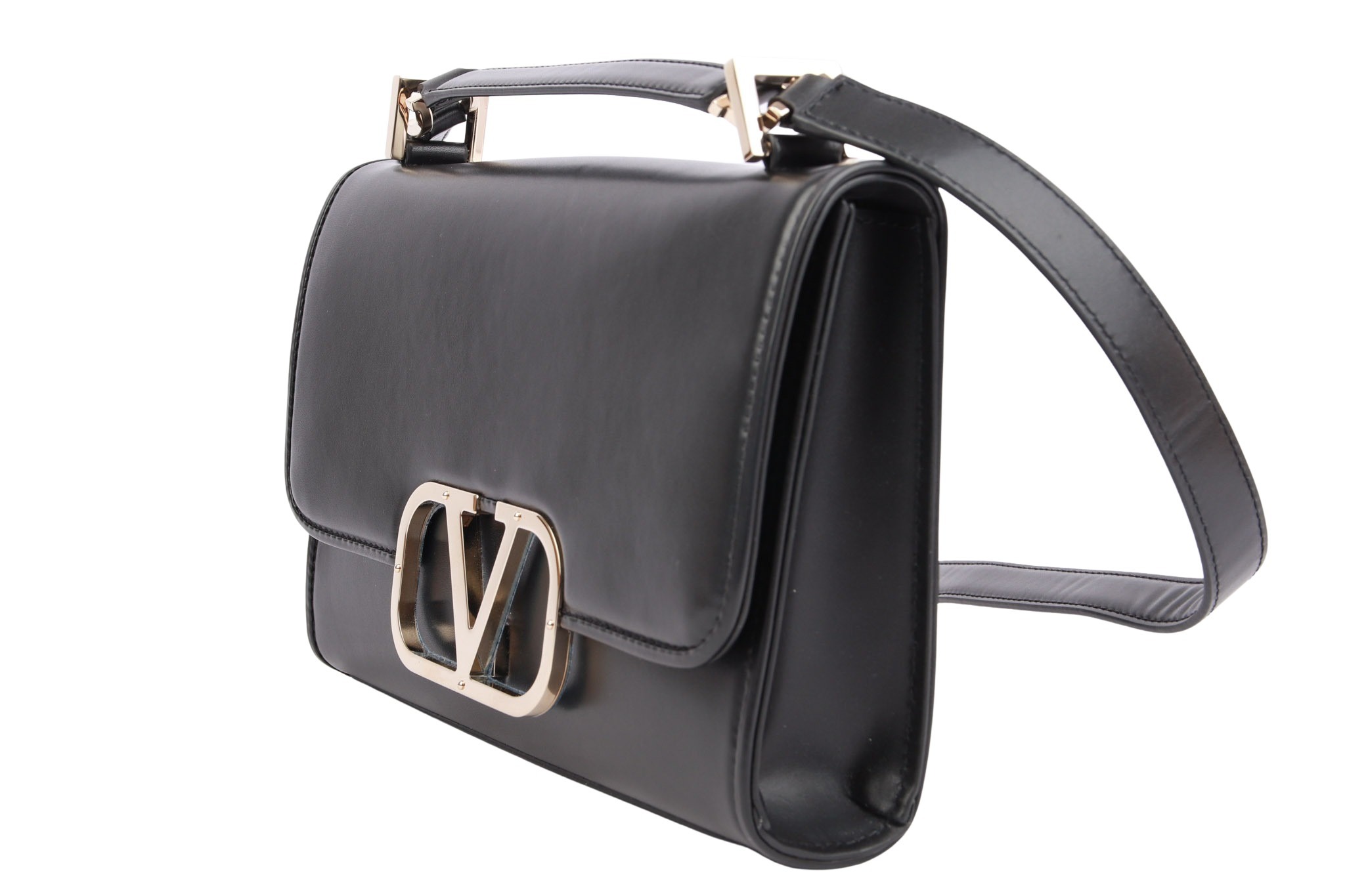 Elegante Leder-Schultertasche mit markantem V‑Logo und kompakter Form – luxuriös und zeitlos.
