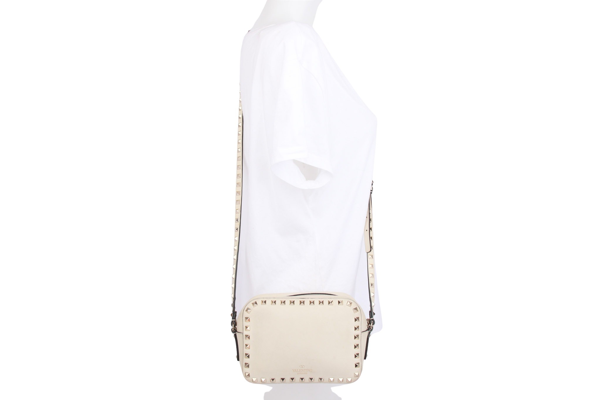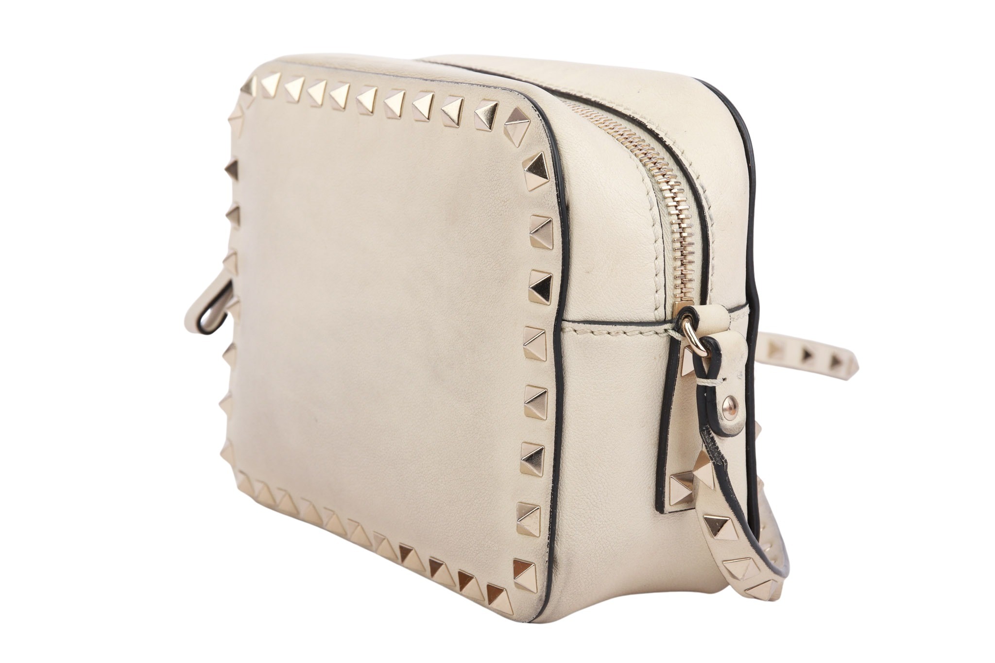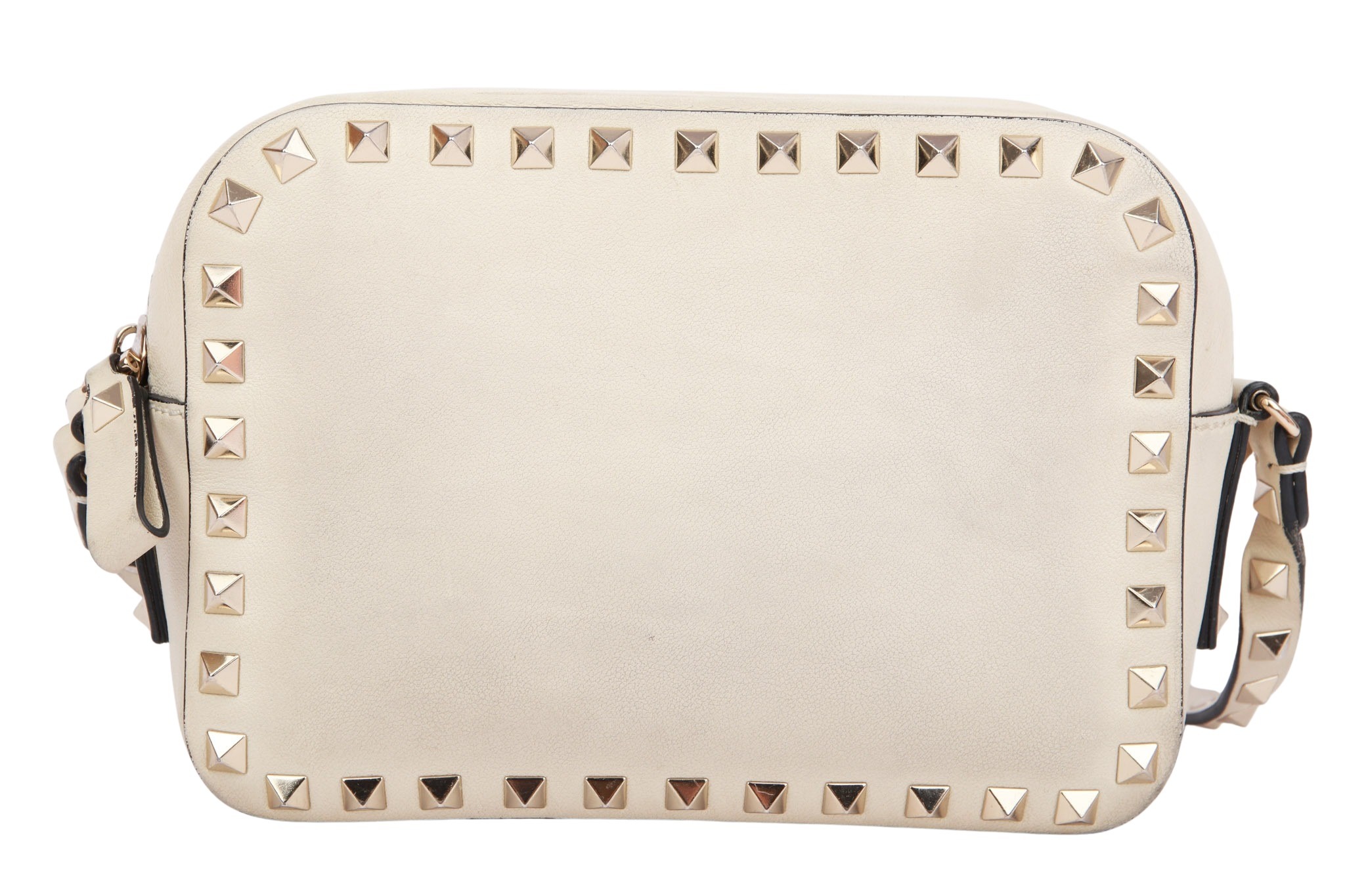 Die ikonische Rockstud Small von Valentino Garavani verkörpert zeitlose Eleganz mit rebellischem Akzent. Gefertigt aus hochwertigem, geschmeidigem Kalbsleder, besticht sie durch ihre klaren Linien und die charakteristischen, von Hand gesetzten pyramidalen Nieten in edlem Goldton. Mit ihrer kompakten Silhouette bietet die Tasche ausreichend Platz für Essentials wie Smartphone, Schlüssel und Make-up.