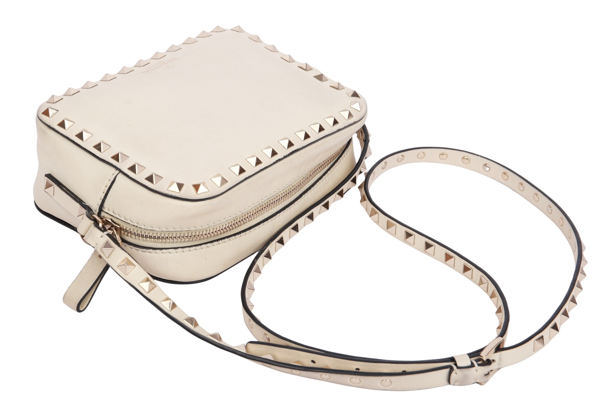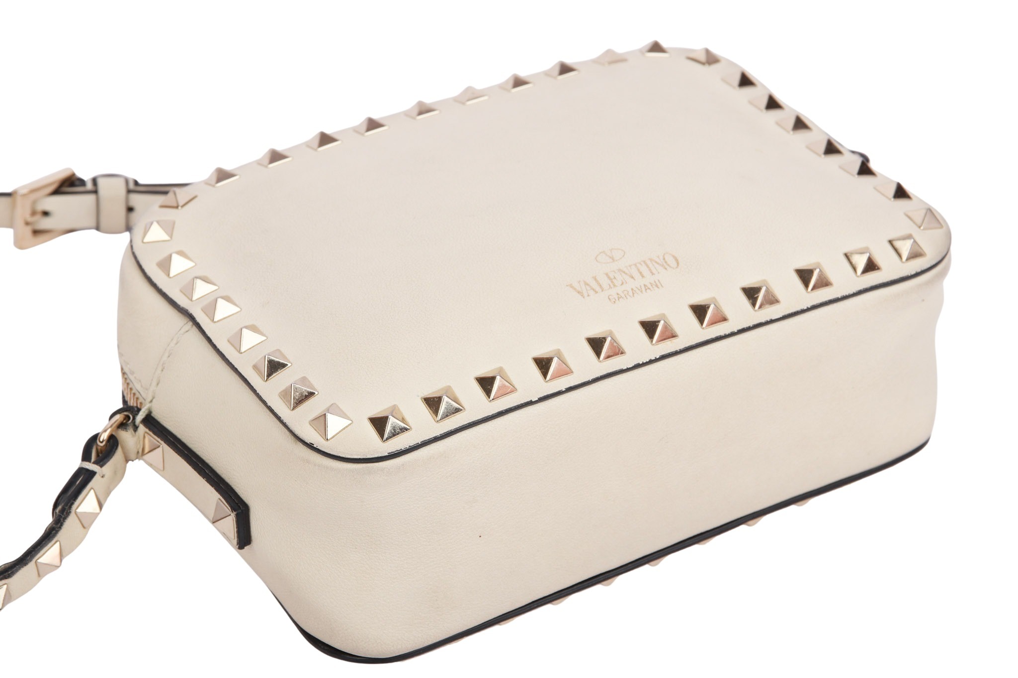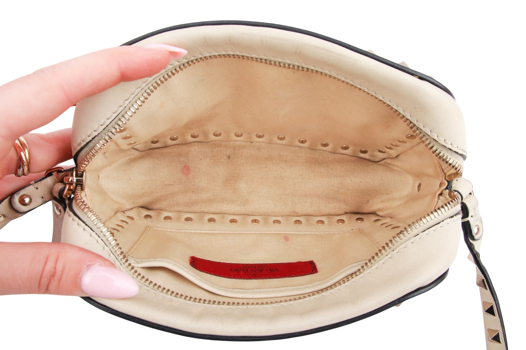 Die ikonische Rockstud Small von Valentino Garavani verkörpert zeitlose Eleganz mit rebellischem Akzent. Gefertigt aus hochwertigem, geschmeidigem Kalbsleder, besticht sie durch ihre klaren Linien und die charakteristischen, von Hand gesetzten pyramidalen Nieten in edlem Goldton. Mit ihrer kompakten Silhouette bietet die Tasche ausreichend Platz für Essentials wie Smartphone, Schlüssel und Make-up.