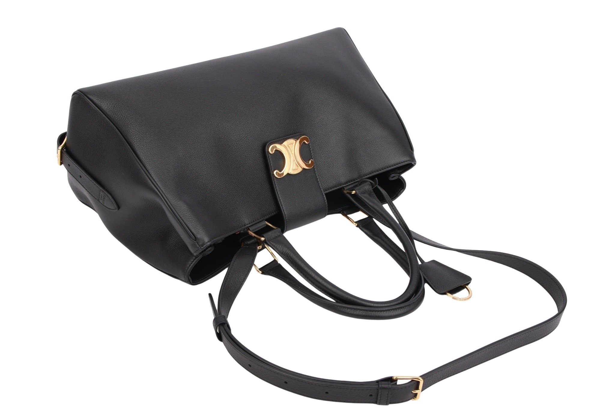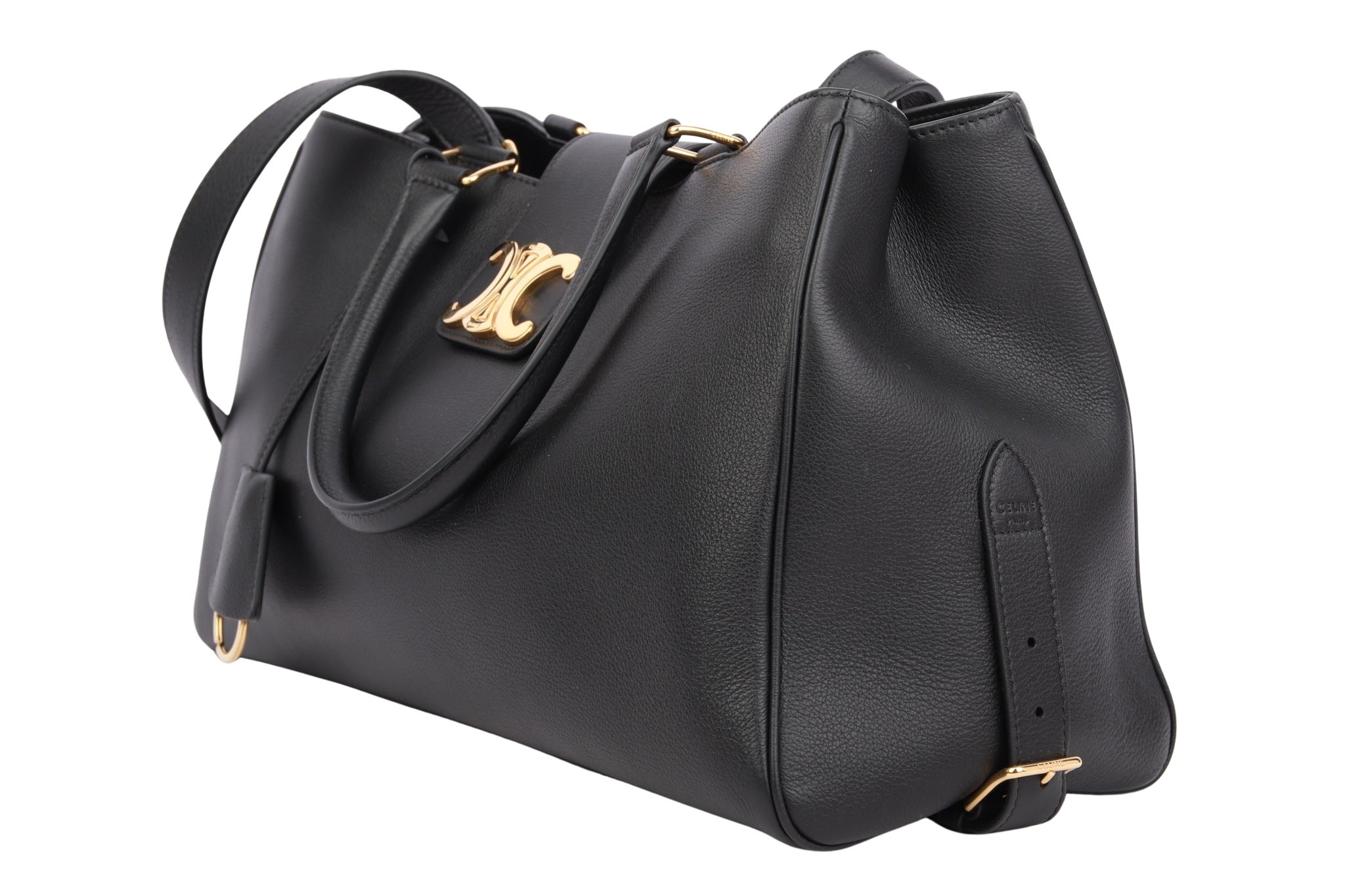 Céline Appoline Bag in schwarzem Leder – elegante Handtasche aus hochwertigem, glattem Leder in tiefem Schwarz. Zeitloses, minimalistisches Design mit klaren Linien, das klassische Eleganz mit moderner Funktionalität vereint. Die kompakte, aber geräumige Form bietet Platz für die täglichen Essentials – ideal für Büro, Alltag und besondere Anlässe. Ein luxuriöses Statement-Piece, das zu jedem Outfit passt.