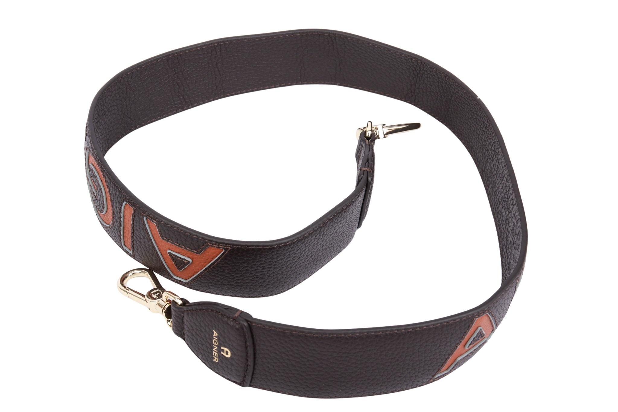 Ein klassischer Schulterriemen aus dem Hause Aigner mit goldfarbener Hardware. Ein schöne Ergänzung zu jeder Tasche.