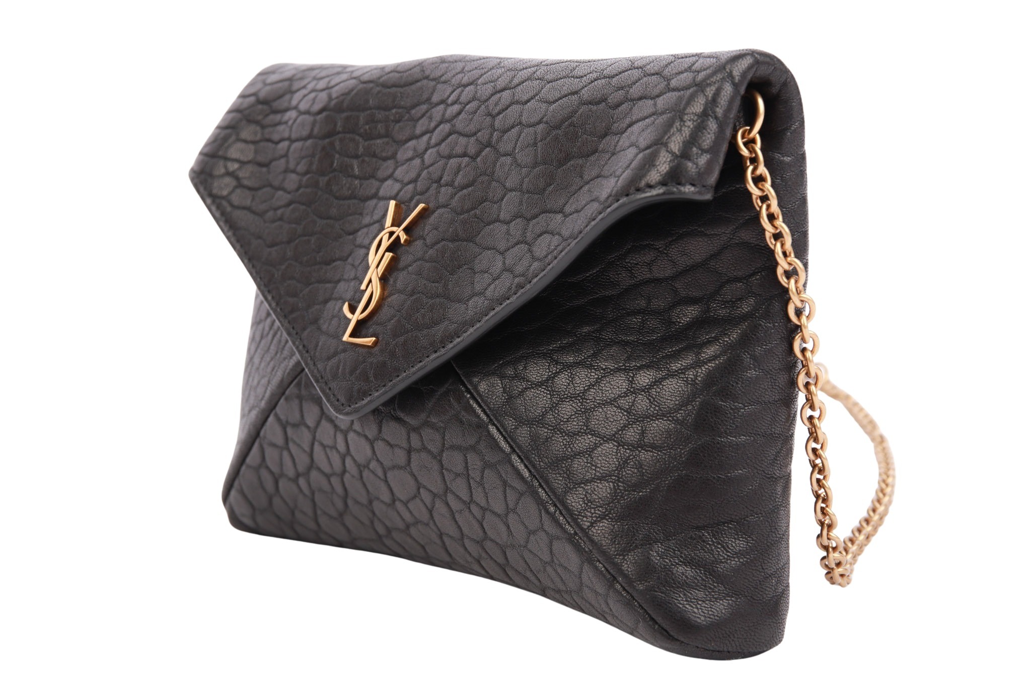Saint Laurent Kleine Cassandre Ketten-Pochette Leder Schwarz
