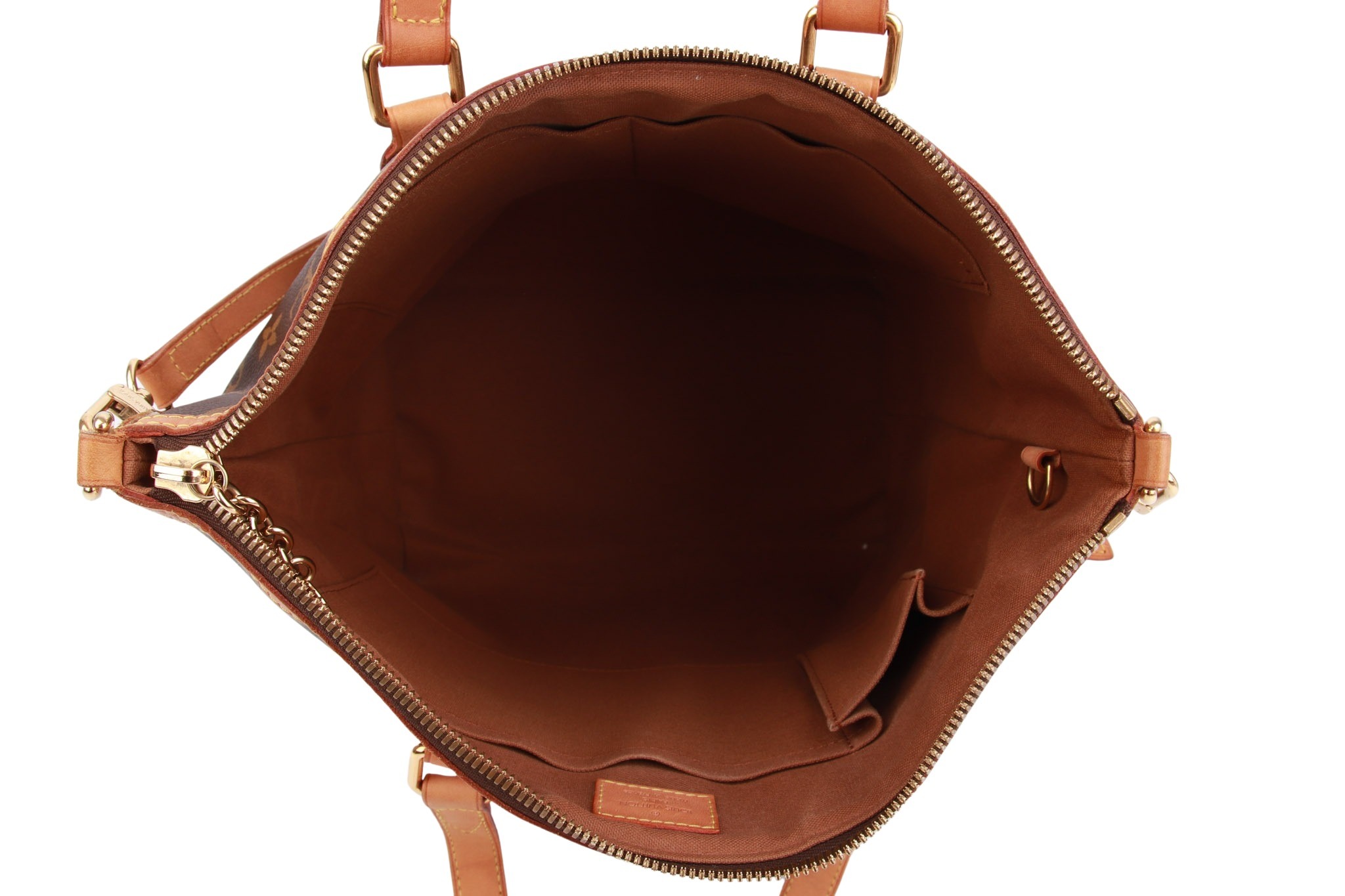Die Louis Vuitton Palermo PM ist eine elegante Handtasche aus Monogram Canvas mit naturbelassenen Lederbesätzen und goldfarbener Hardware. Sie verfügt über zwei Tragegriffe, einen abnehmbaren Schulterriemen und einen Reißverschluss oben. Das Innenfutter besteht aus Textil mit mehreren Steckfächern. Die Tasche ist geräumig, formstabil und eignet sich ideal für den täglichen Gebrauch.