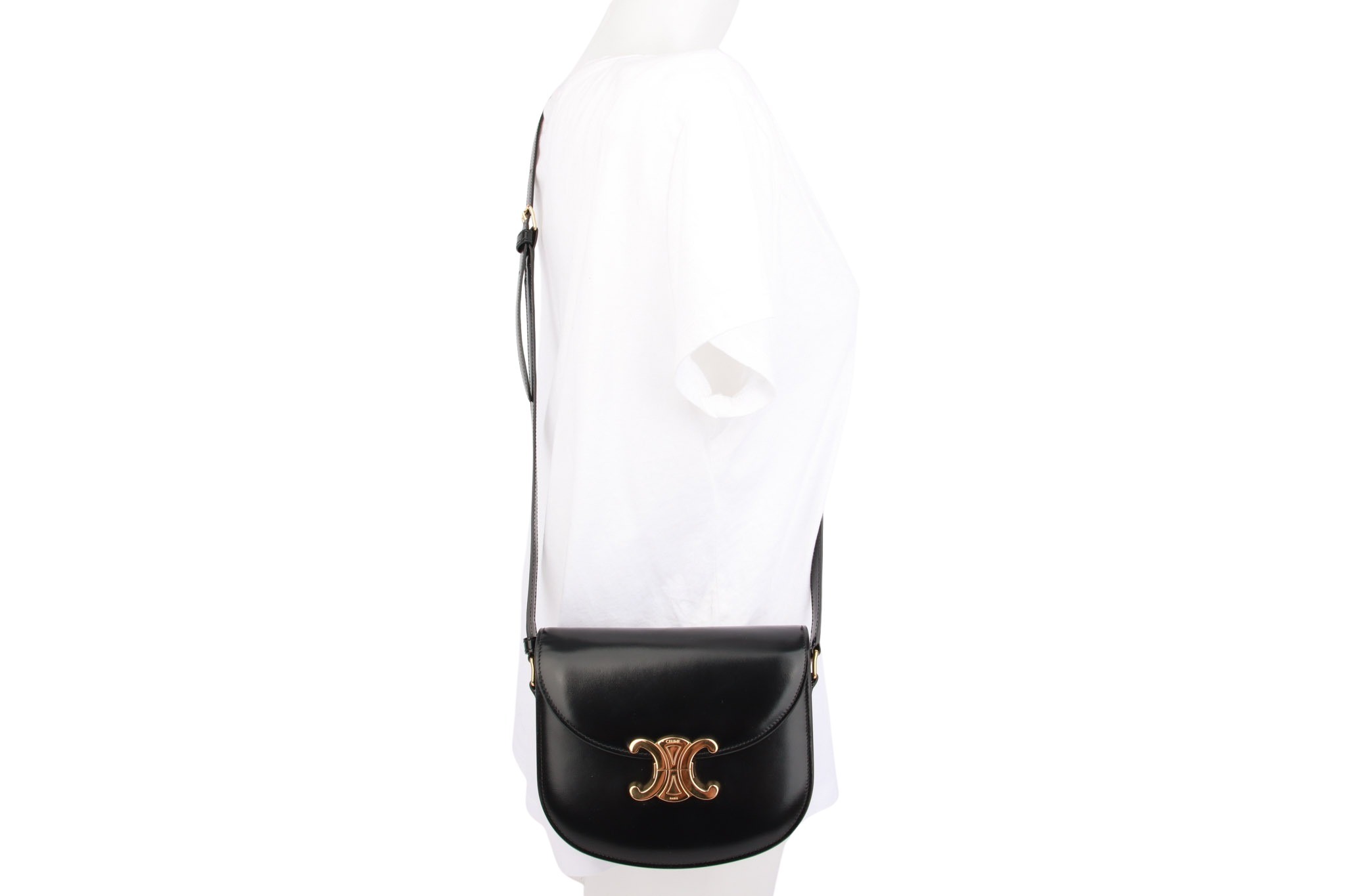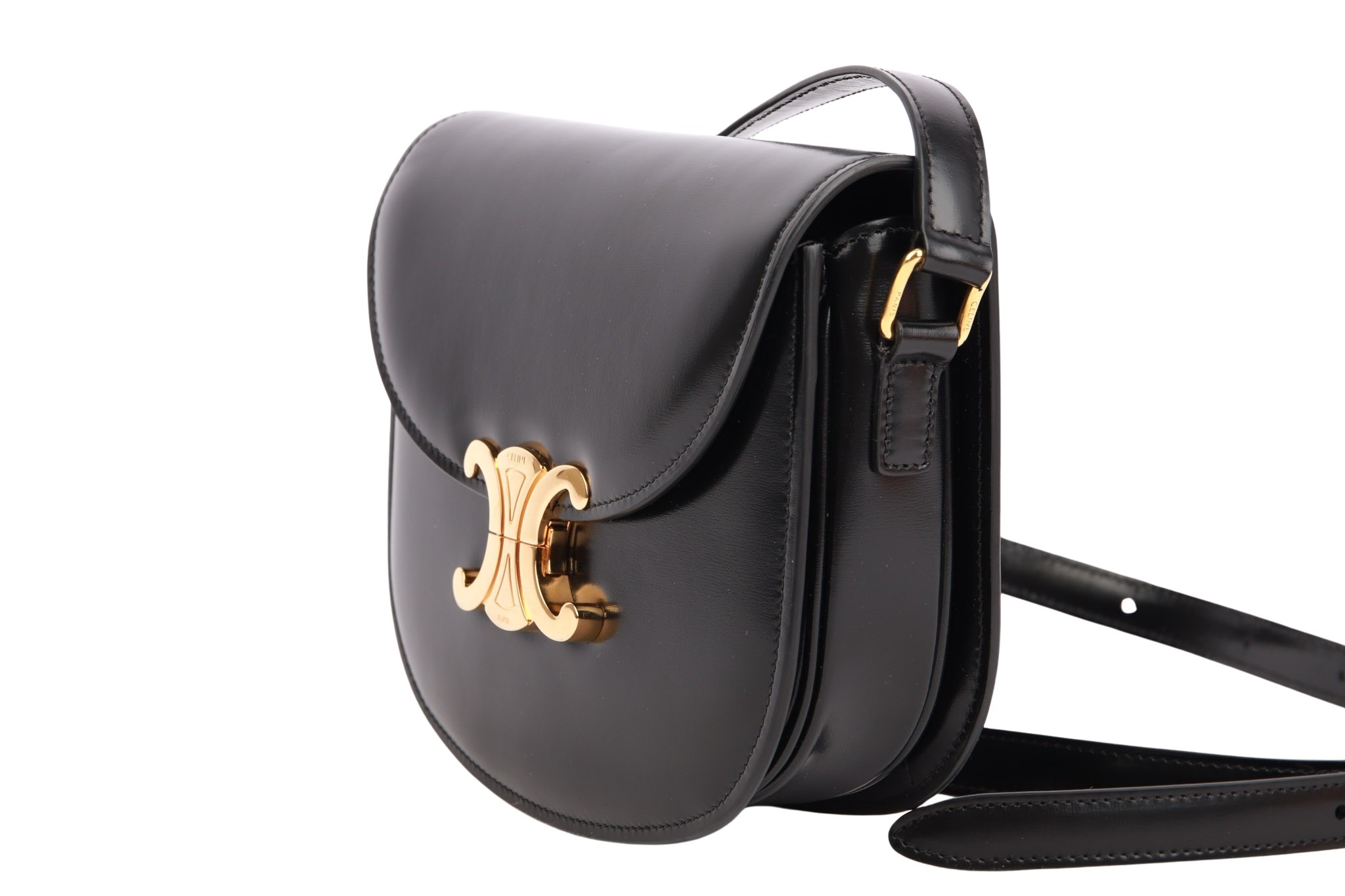 Die Céline Triomphe Bag ist eine elegante Handtasche aus hochwertigem Leder, gekennzeichnet durch das diskrete Triomphe-Logo von Céline. Mit einem geräumigen Hauptfach und einer Innentasche mit Reißverschluss bietet sie genug Platz für Ihre Essentials. Ihr zeitloses Design und die klassische Farbe machen sie zu einem vielseitigen Accessoire für jeden Anlass.