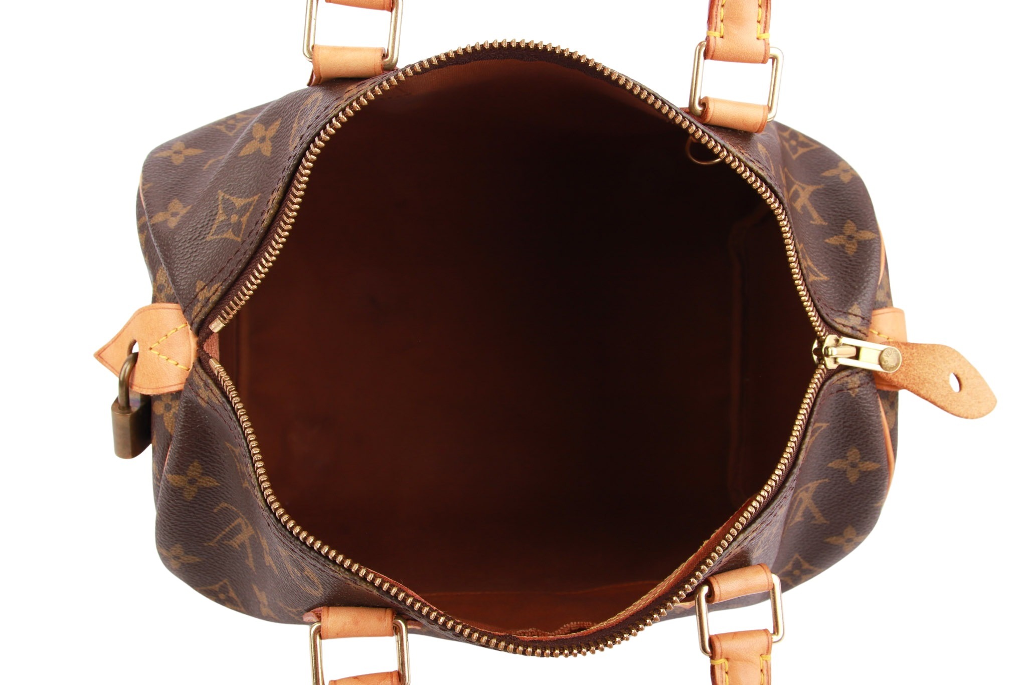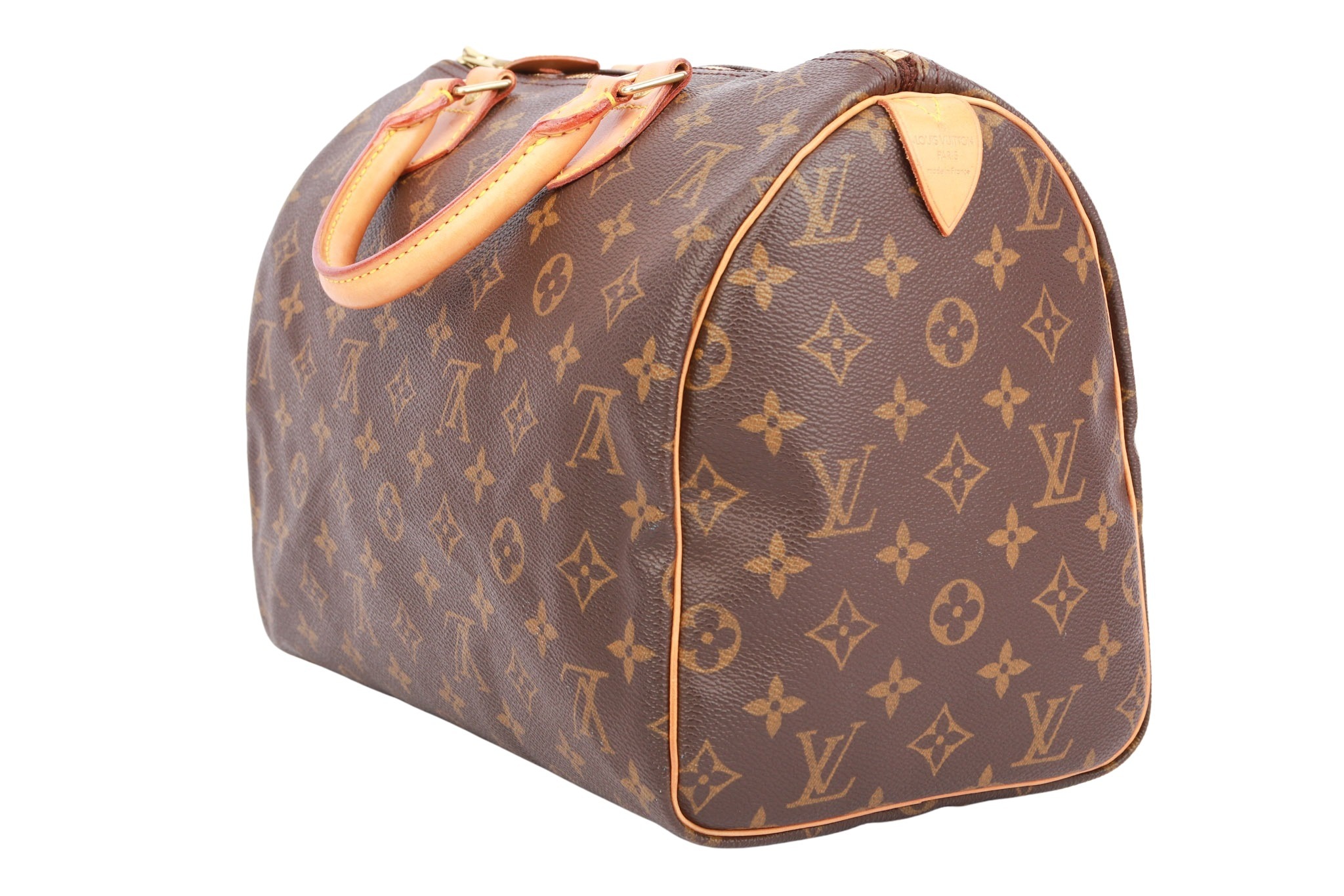 Die Louis Vuitton Speedy 30 ist eine Ikone unter den Handtaschen. Gefertigt aus dem klassischen Monogram Canvas, kombiniert sie zeitloses Design mit praktischer Größe. Die markante Silhouette, die goldfarbenen Details und die zwei runden Ledergriffe machen sie zum eleganten Begleiter für jeden Tag – stilvoll, kompakt und unverkennbar Louis Vuitton.