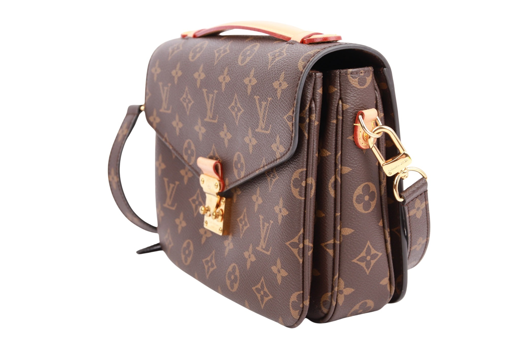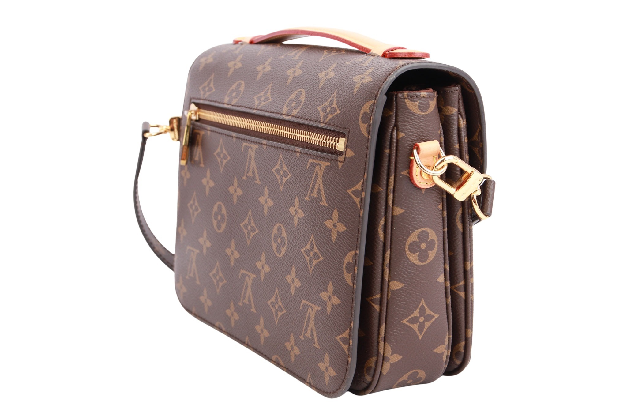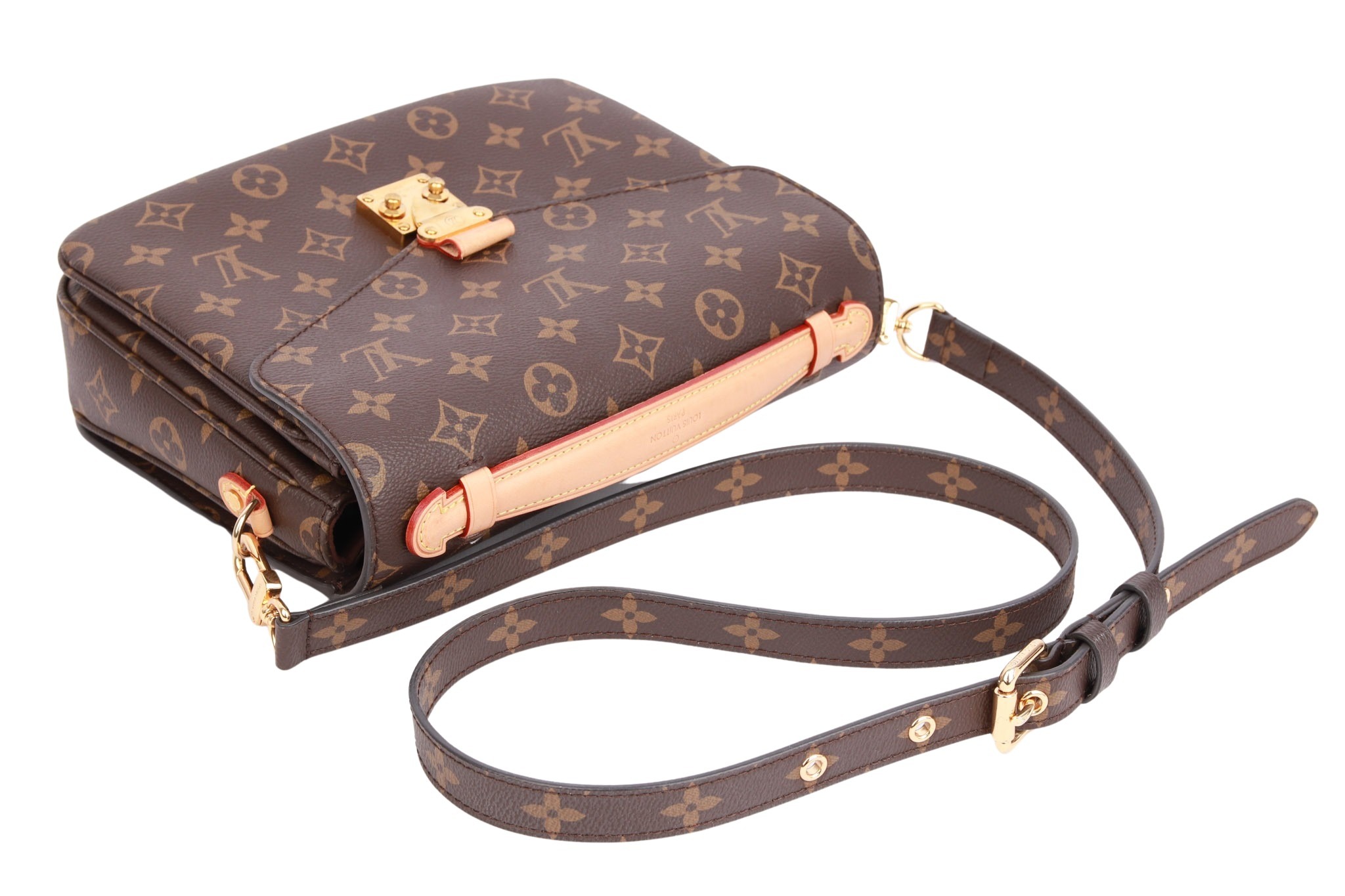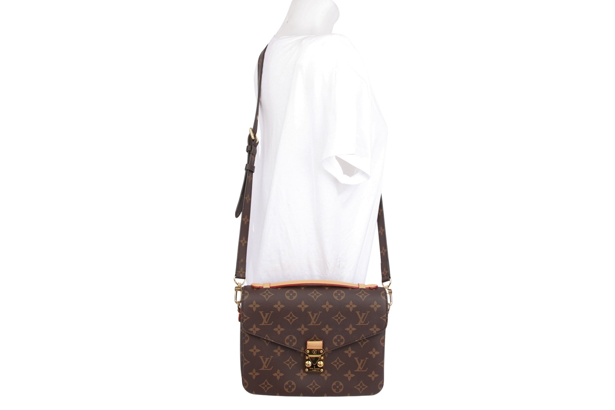 Die Louis Vuitton Pochette Métis MM aus Monogram Canvas ist eine elegante, kompakte Umhängetasche mit ikonischem Design. Sie bietet dank drei Innenfächern und einem Außenfach überraschend viel Stauraum. Der goldfarbene S-Verschluss und der abnehmbare Schulterriemen machen sie zum vielseitigen Begleiter – tragbar als Crossbody oder in der Hand. Zeitlos, stilvoll und praktisch zugleich.