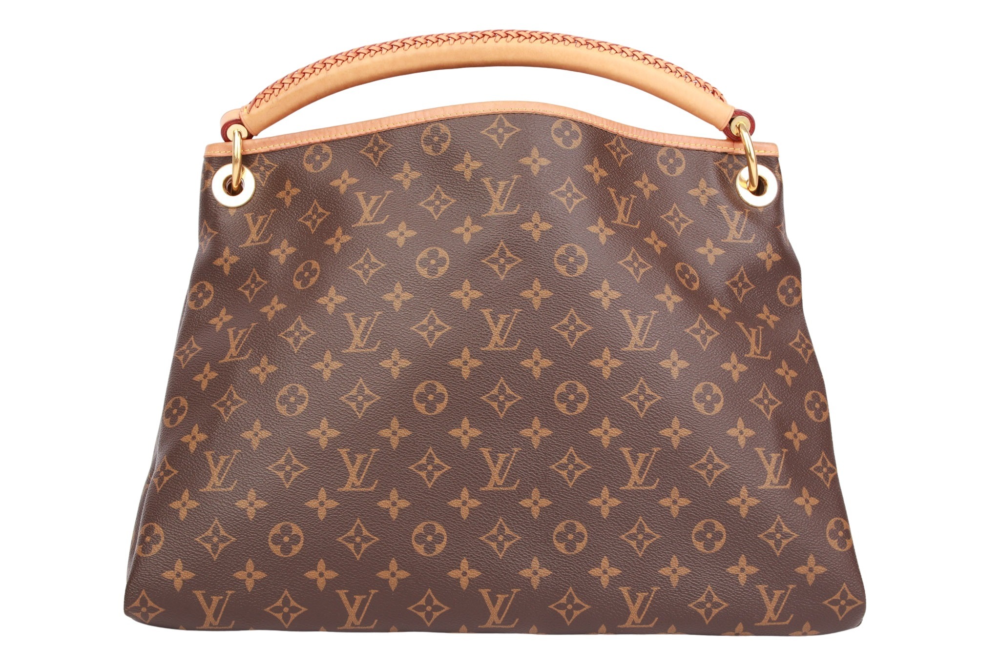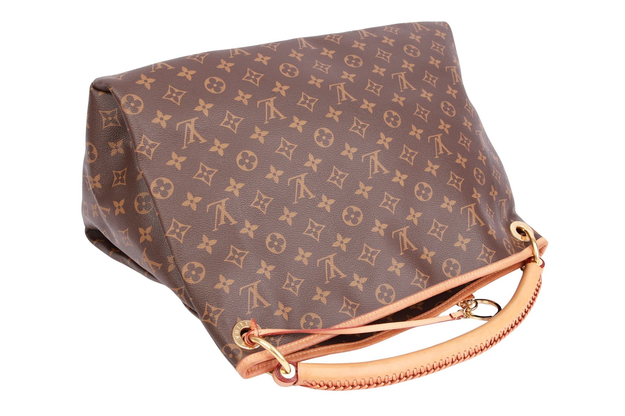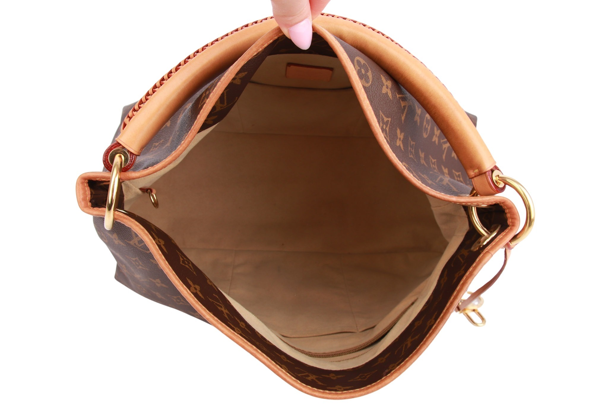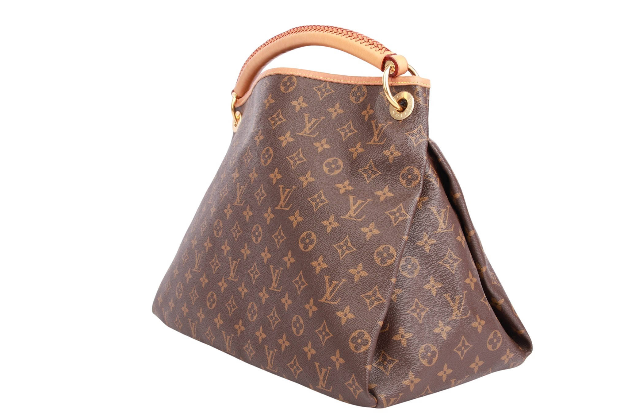 Die Louis Vuitton Artsy MM im Monogram Canvas verbindet ikonisches Design mit großzügigem Stauraum. Gefertigt aus dem klassischen Monogram‑beschichteten Canvas und veredelt mit naturbelassenem (vachetta) Rindsleder, prägt sie die markante, geschwungene Hobo‑Form und der geflochtene Tragegriff oben. Mit ca. 41 × 32 × 20‑22 cm bietet sie ein großes Hauptfach mit mehreren Einsteck‑ und einem Reißverschlussfach für Ordnung. Das weiche Innenfutter aus Mikrofaser oder Velours sorgt für Komfort beim Tragen. Goldfarbene Metallbeschläge und Details runden das Design stilvoll ab. Eine Tasche, die sowohl Alltagstauglichkeit als auch modische Ausstrahlung verbindet.