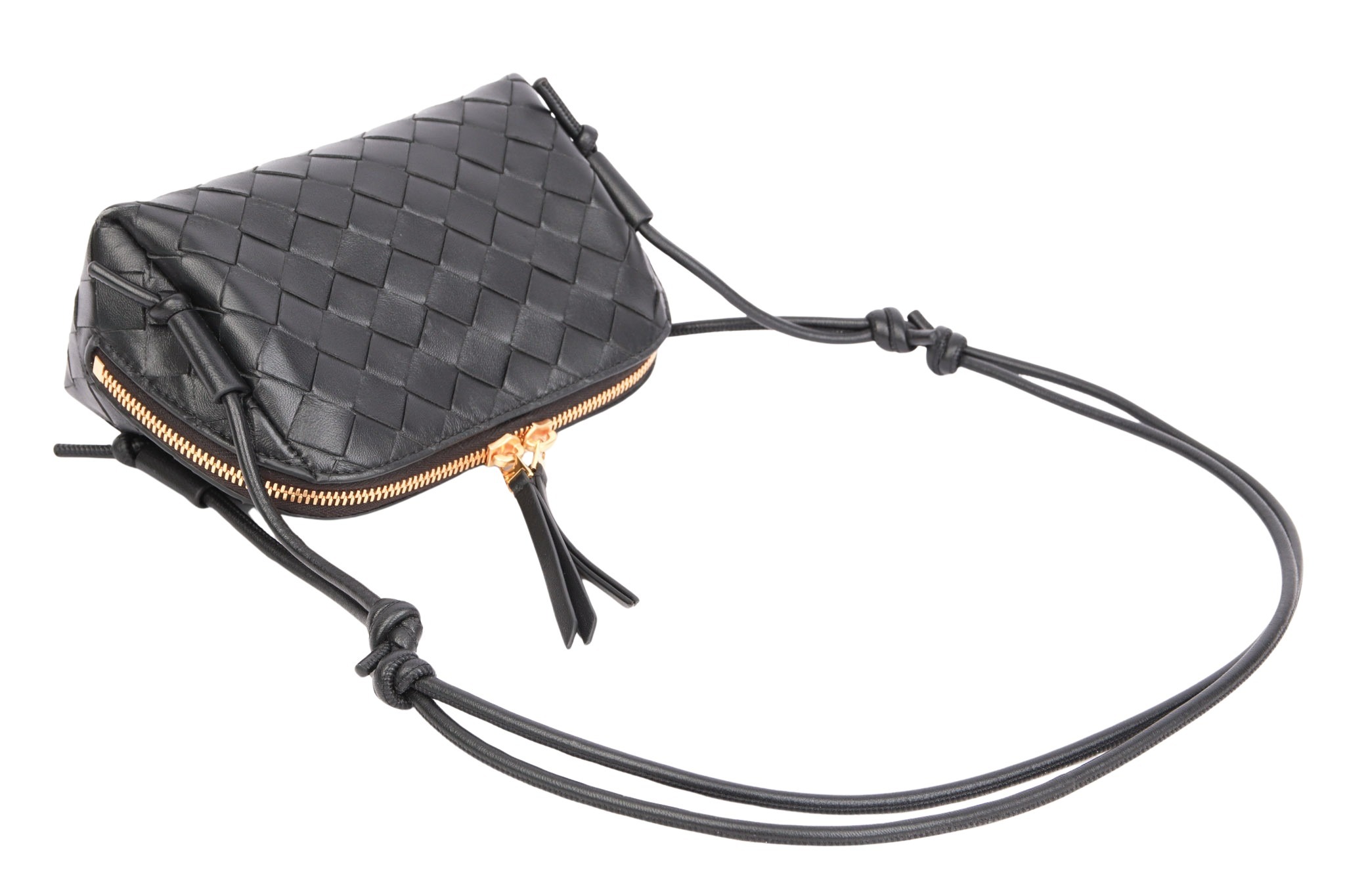 Die Concert Pouch aus Intrecciato Nappaleder mit verstellbaren, röhrenförmigen Riemen - ein absoluter Hingucker.