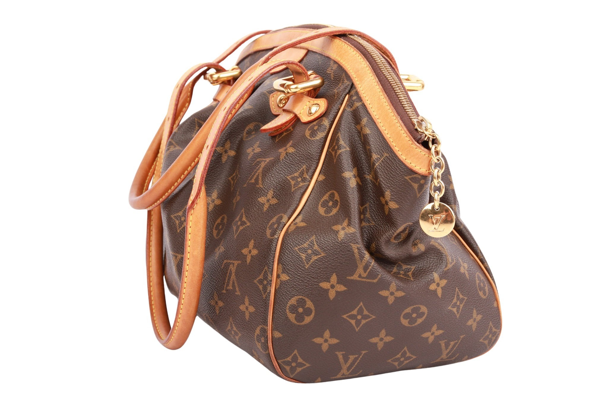 Die Louis Vuitton Tivoli GM ist eine geräumige Handtasche aus ikonischem Monogram Canvas mit Naturleder-Details und goldfarbener Hardware. Sie bietet ein großes Hauptfach mit Reißverschluss sowie Innenfächer und kann bequem in der Hand oder über der Schulter getragen werden. Das Modell wird nicht mehr produziert und gilt als zeitloser Klassiker von Louis Vuitton.