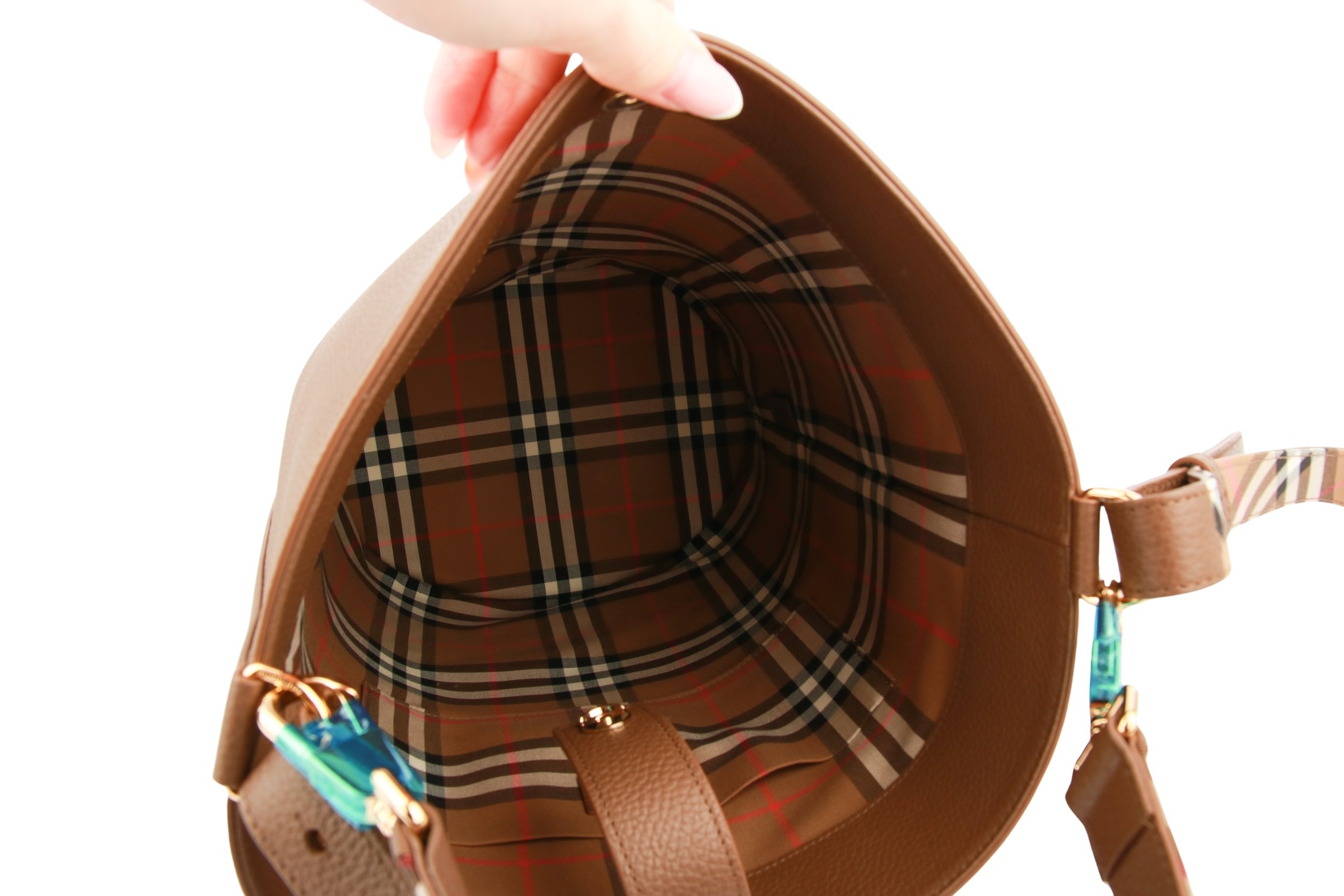 Die elegante Burberry Bucket Bag vereint Klassik mit moderner Funktionalität.