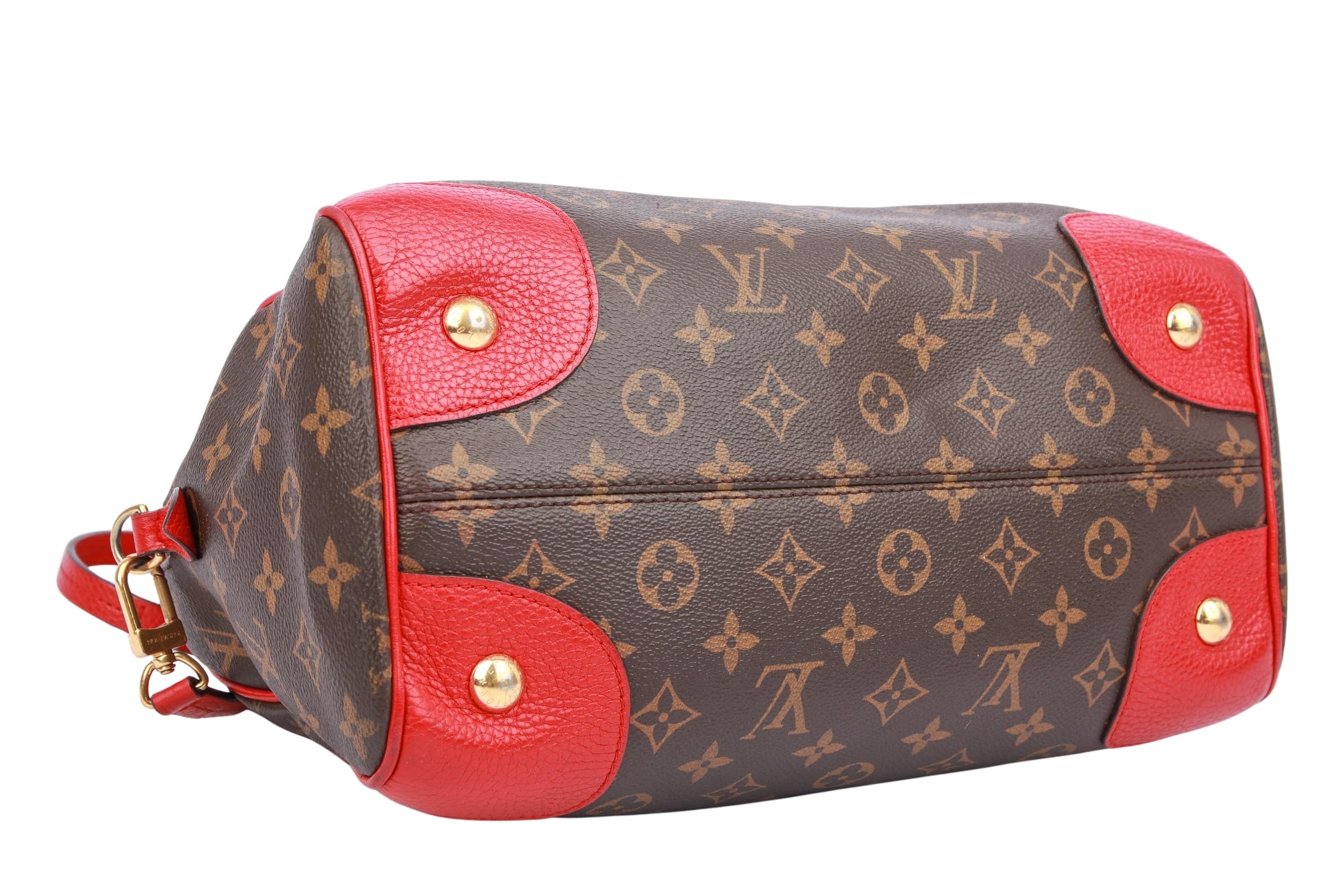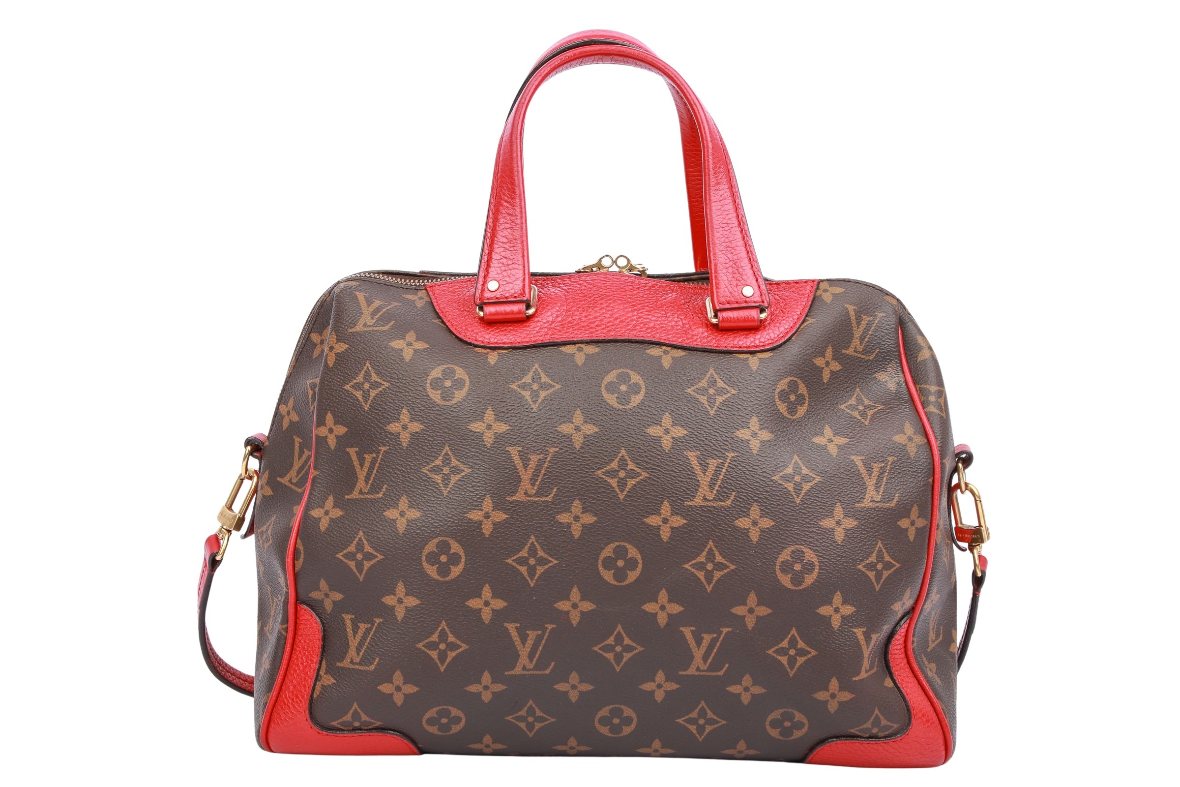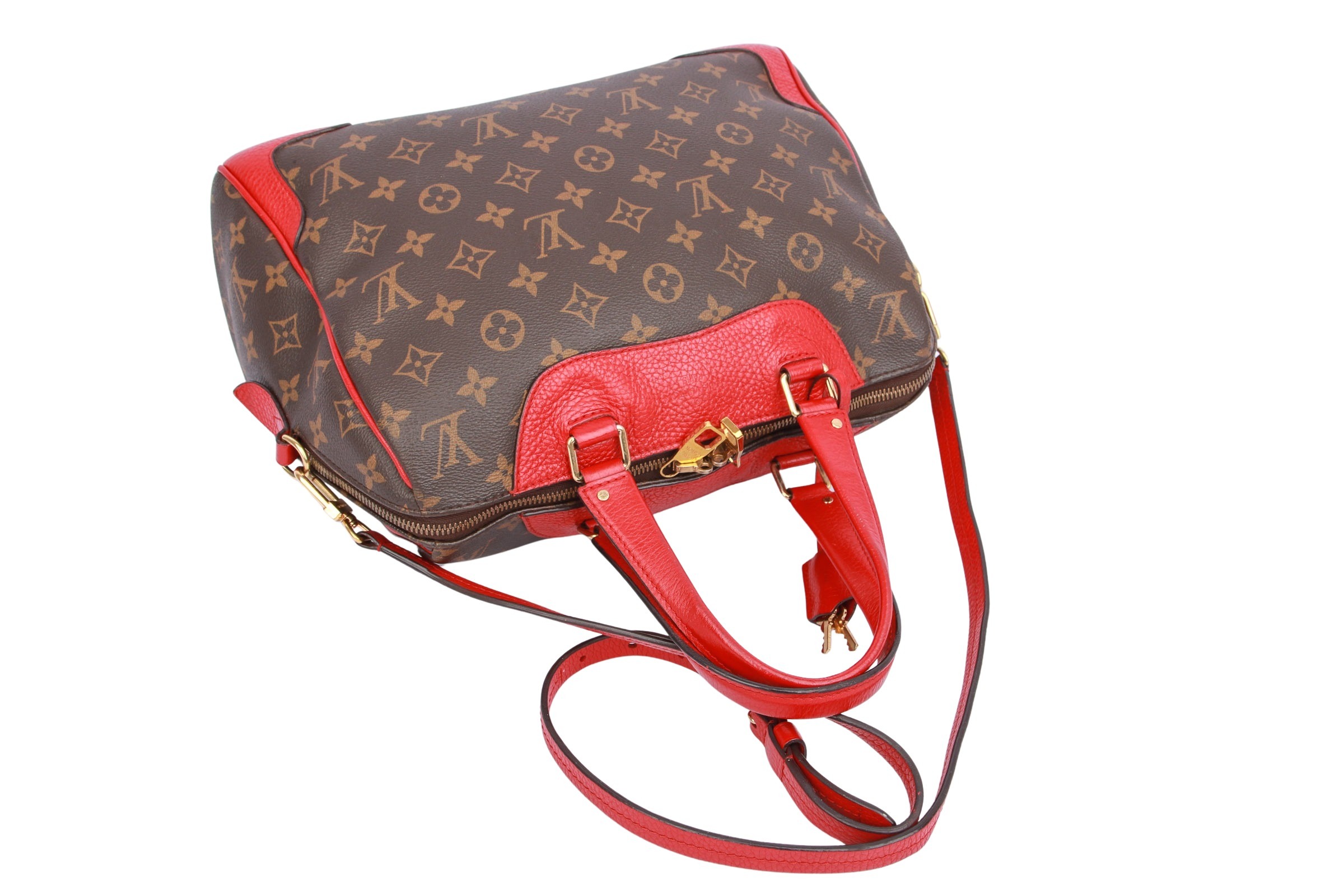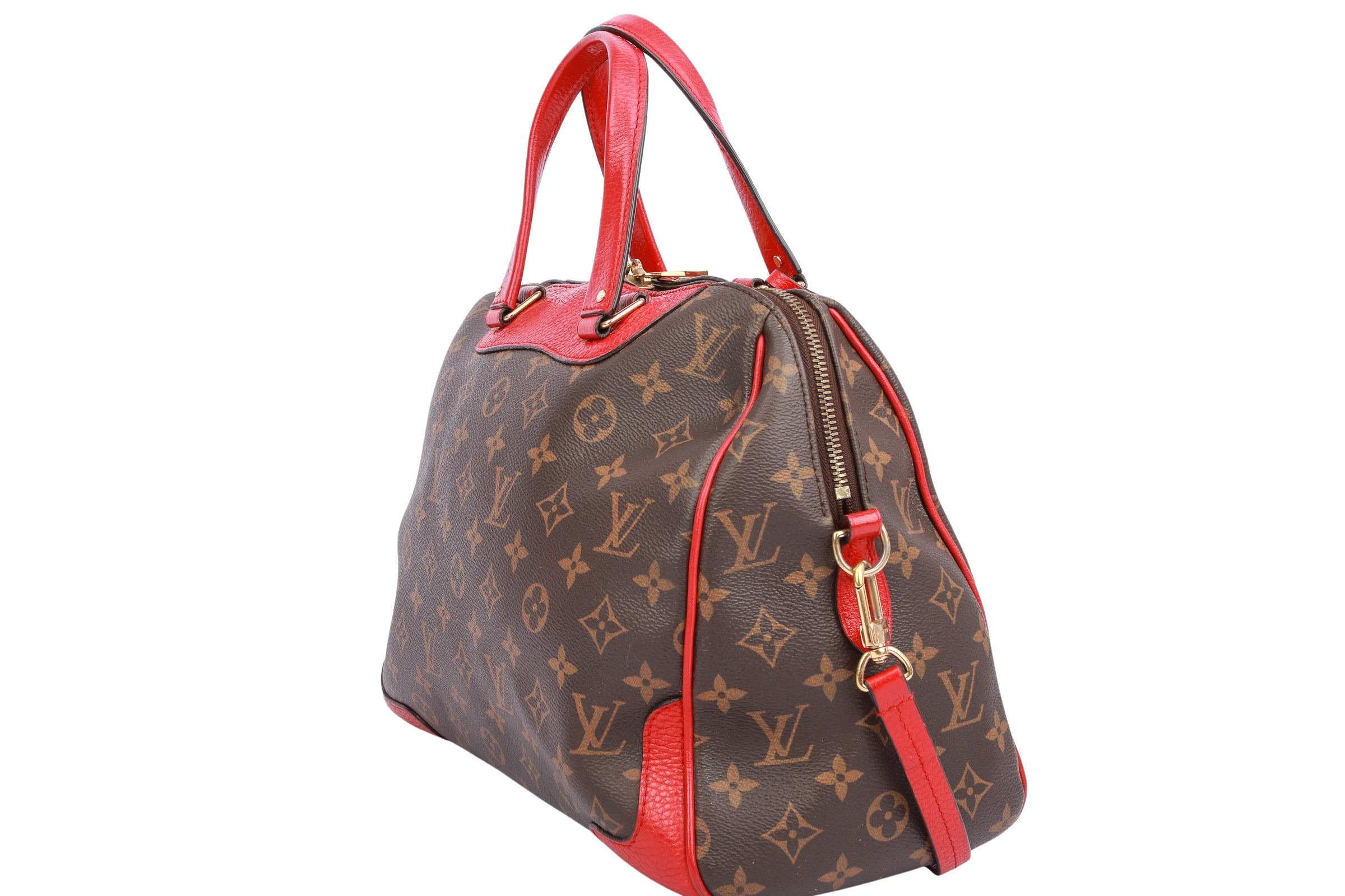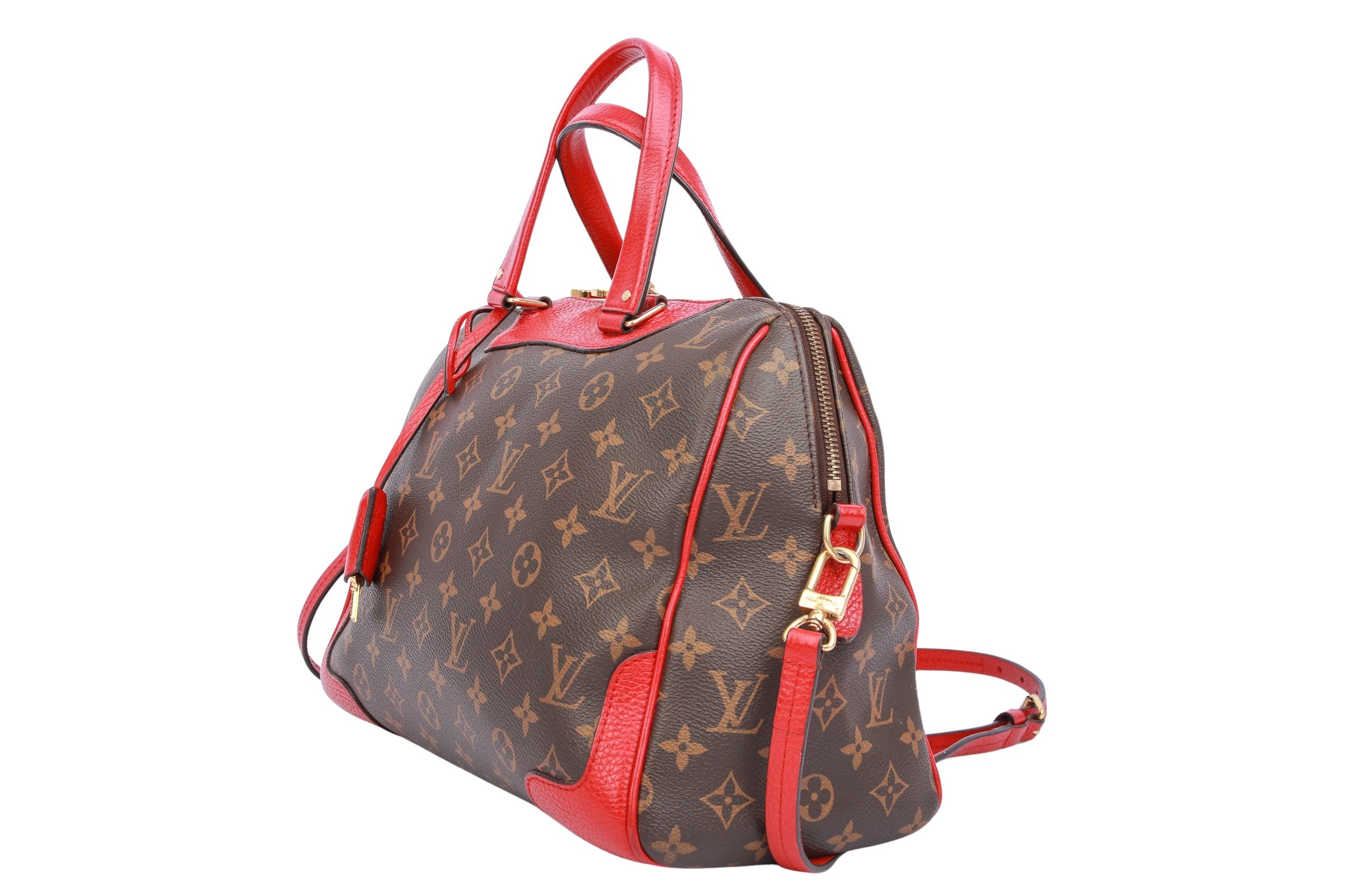 Die Louis Vuitton Retiro PM Monogram Canvas mit roten Akzenten ist eine elegante Interpretation des klassischen Retiro-Designs. Gefertigt aus dem ikonischen Monogram Canvas und veredelt mit roten Lederbesätzen, bietet sie einen modernen, edlen Kontrast. Goldfarbene Details und ein abnehmbarer Schulterriemen machen sie sowohl praktisch als auch stilvoll. Das mittelgroße Format bietet ausreichend Platz für den Alltag, während das Innenfutter und mehrere Fächer für eine durchdachte Organisation sorgen – eine perfekte Mischung aus Funktionalität und zeitloser Ästhetik.