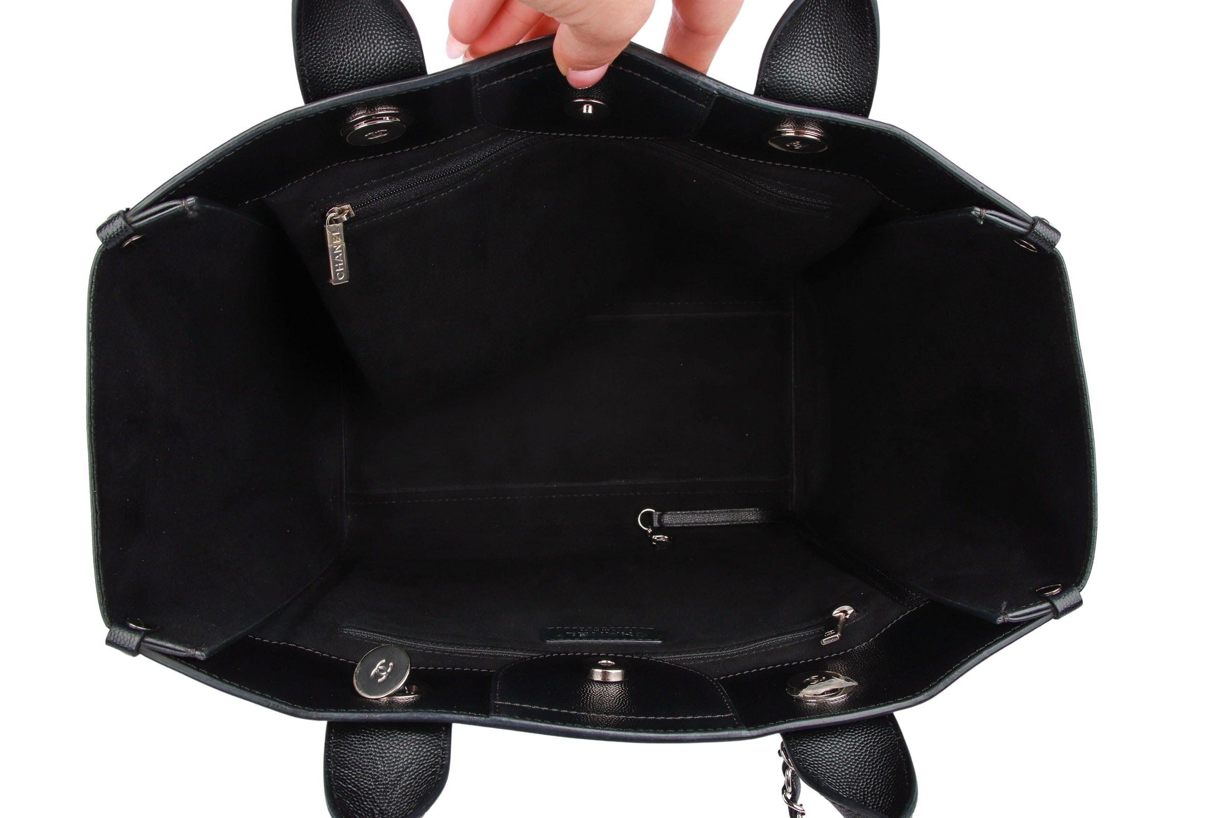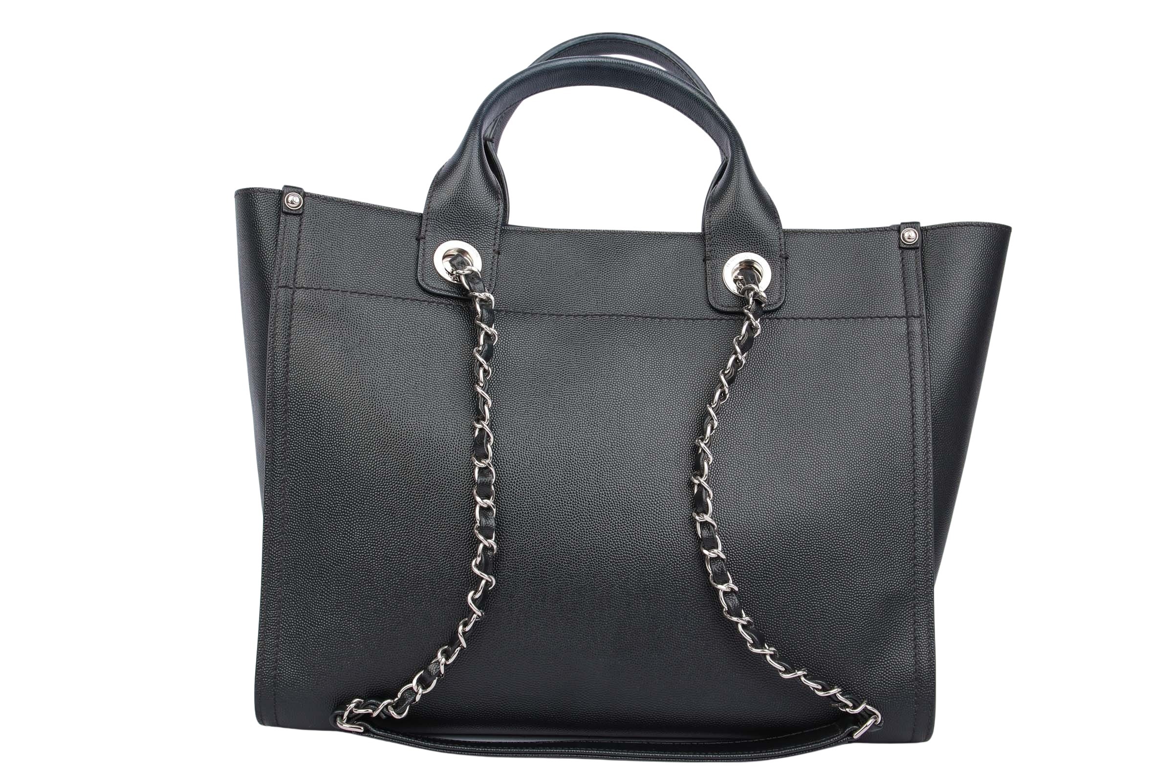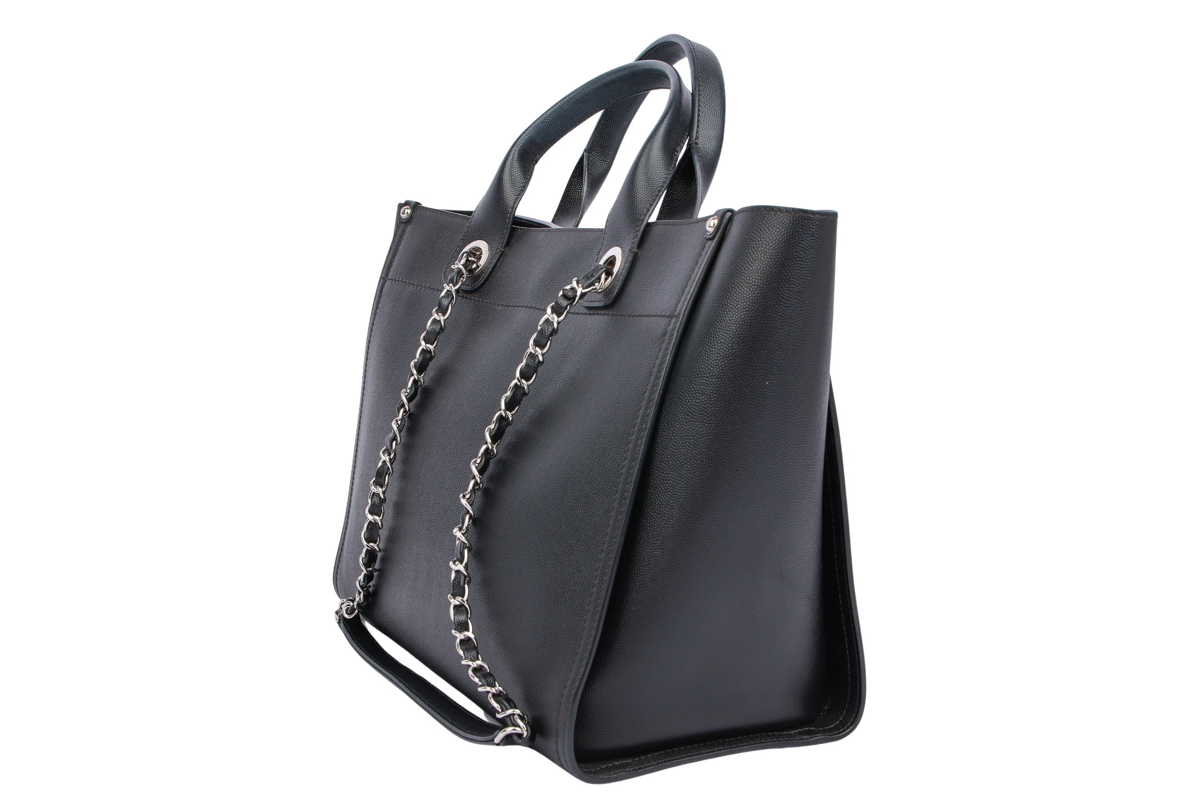Entdecken Sie den Inbegriff von Stil und Funktionalität mit dem Chanel Deauville Shopper mit Nieten in Schwarz! Dieses luxuriöse Accessoire kombiniert die klassische Eleganz von Chanel mit einem modernen, auffälligen Design. Die dekorativen Nieten verleihen der Tasche einen Hauch von Rock-Chic, während das geräumige Innenleben genügend Platz für Ihre Essentials bietet. Perfekt für den Alltag oder besondere Anlässe.
