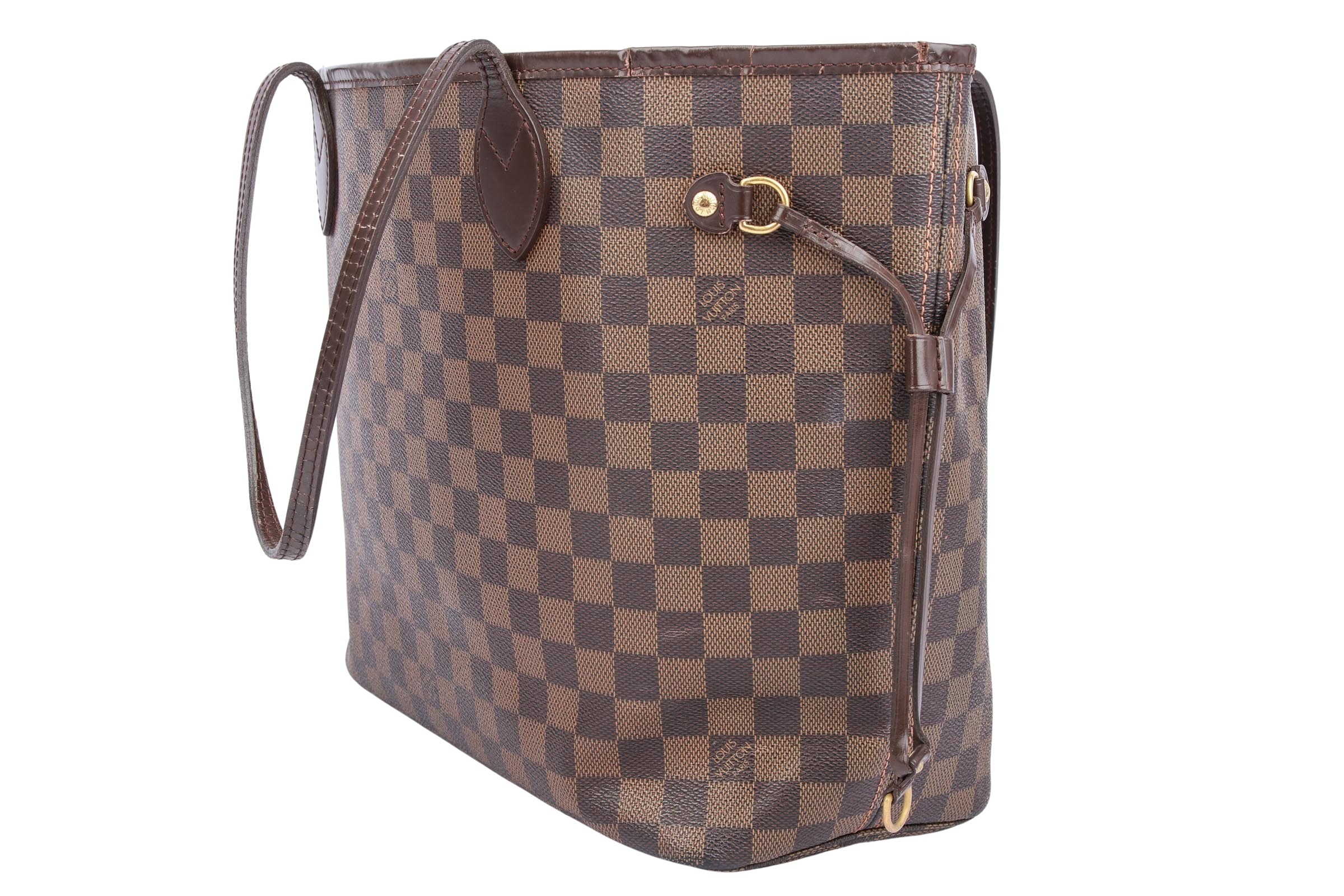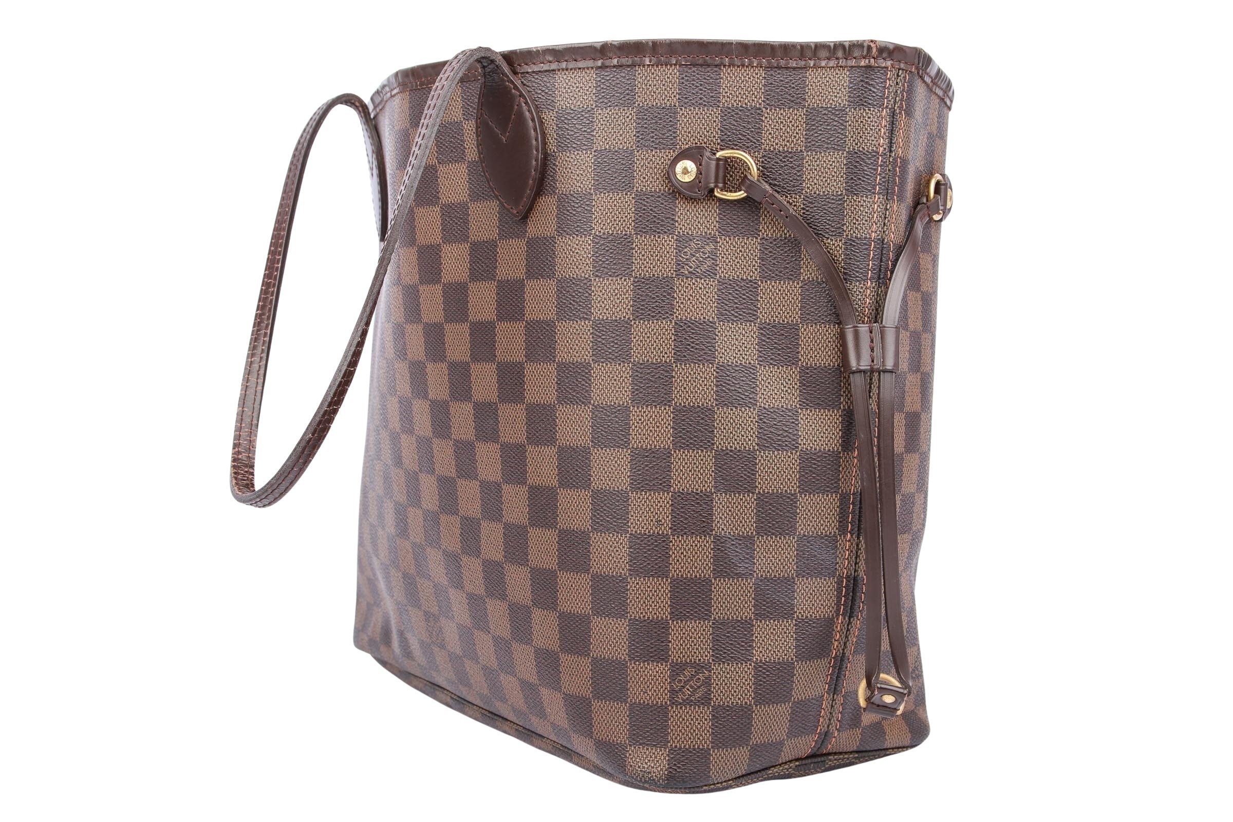 Die Louis Vuitton Neverfull MM in Damier Ebene Canvas ist eine elegante und zeitlose Handtasche, die Funktionalität und Luxus perfekt vereint. Mit ihrem ikonischen Karomuster, den Lederdetails in dunklem Braun und dem großzügigen Innenraum eignet sie sich ideal für den Alltag wie auch für besondere Anlässe. Die mittelgroße Größe (MM) bietet ausreichend Platz für alle Essentials, während die seitlichen Zugbänder individuell anpassbar sind und die Silhouette der Tasche variieren lassen. Ein echtes Must-have für stilbewusste Frauen.