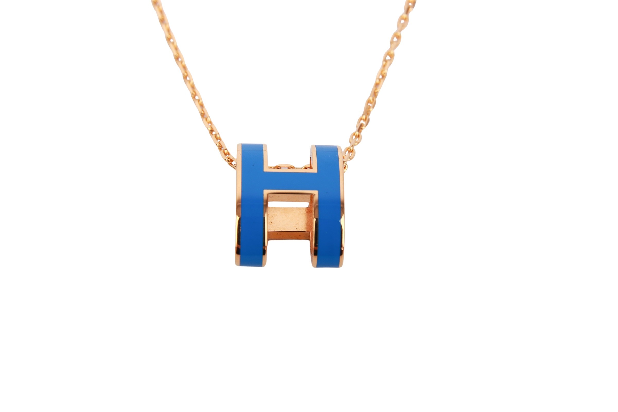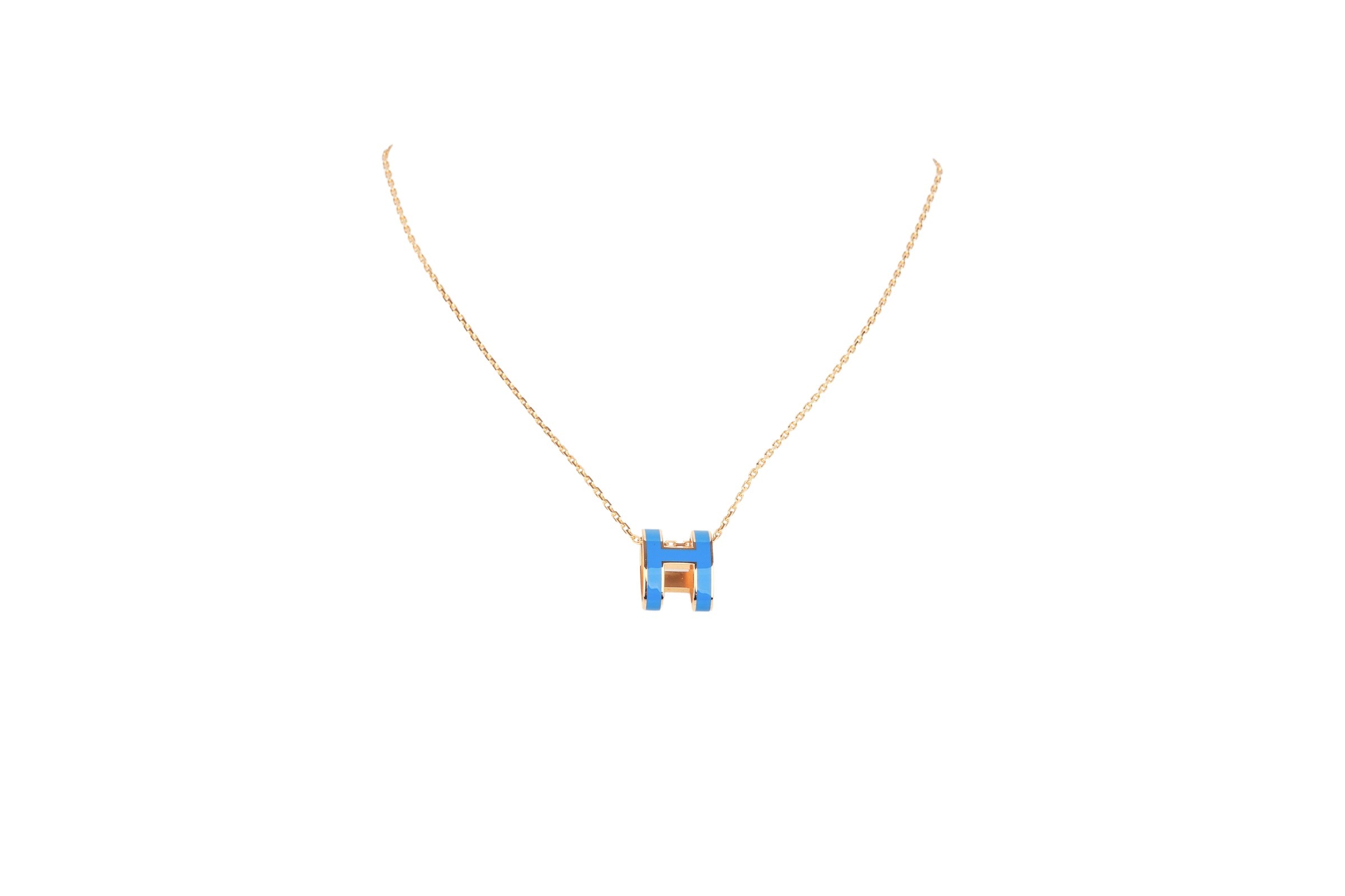 Die Hermès Halskette Pop H in Blau verkörpert zeitlose Eleganz und moderne Raffinesse. Das ikonische H-Motiv des Hauses Hermès wird hier in einem frischen, klaren Design interpretiert und mit einer glänzenden Lackierung in intensivem Blau veredelt.