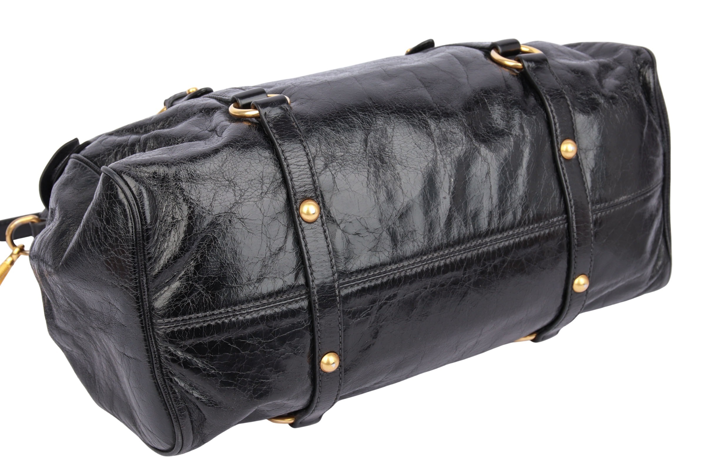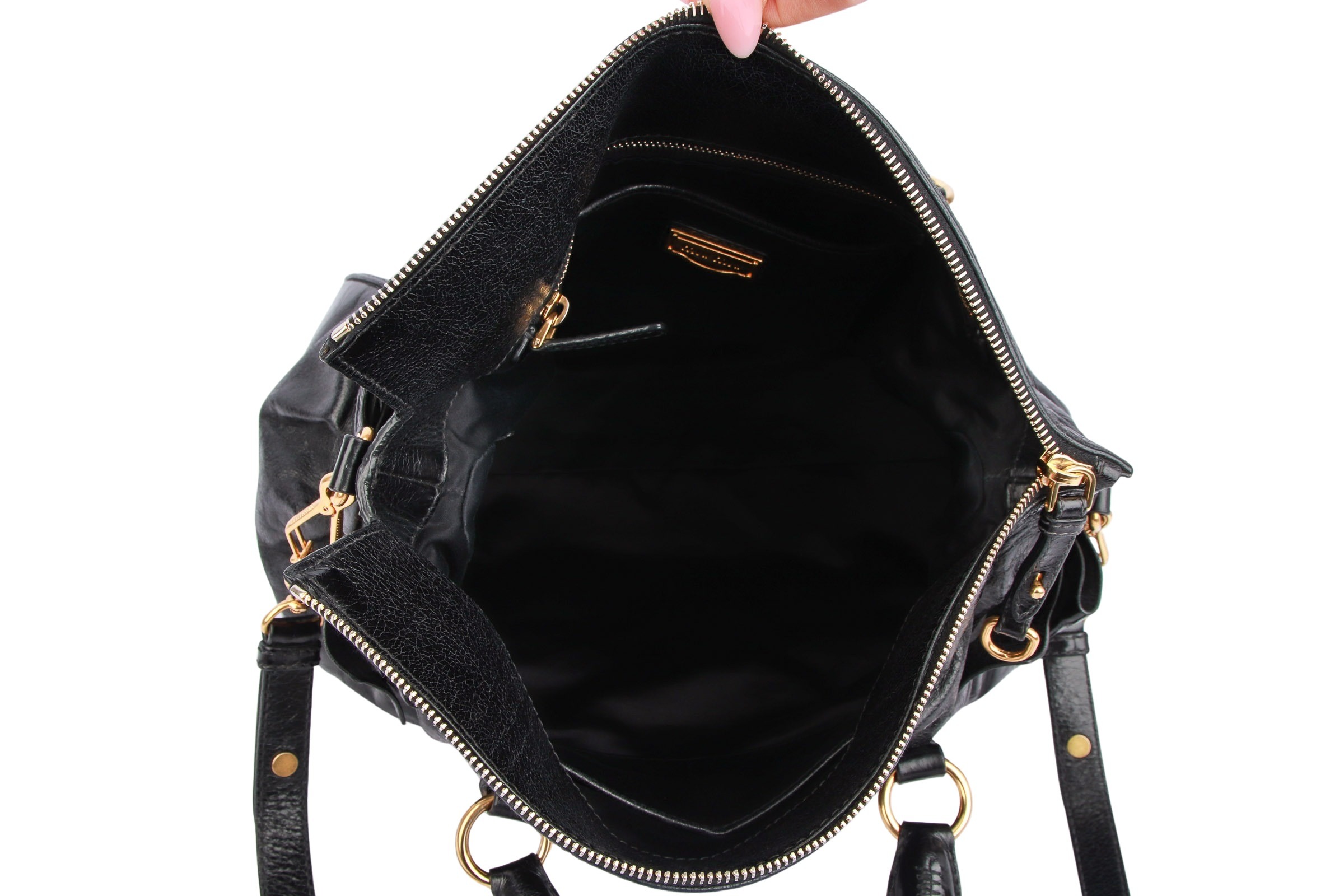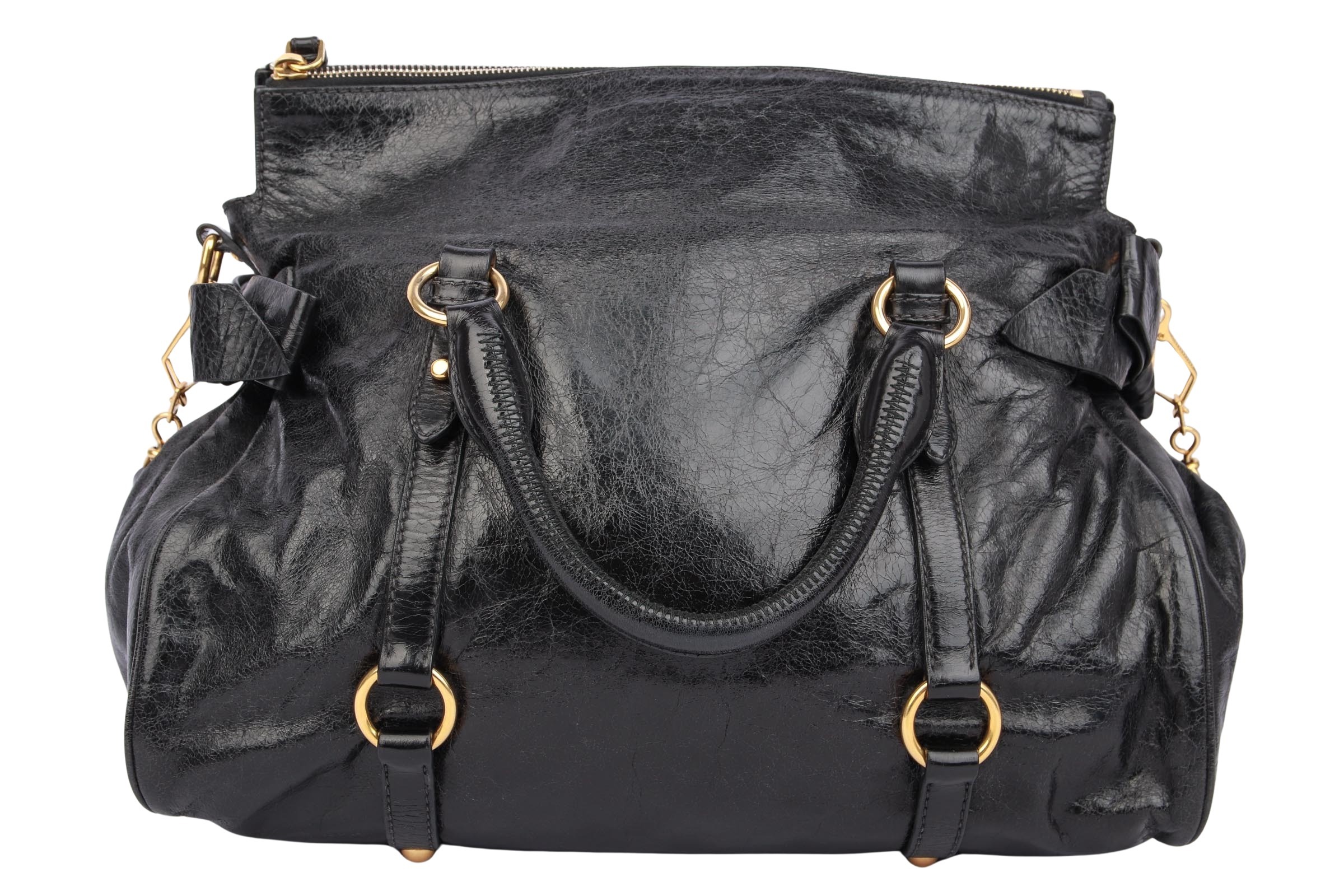 Die Miu Miu Bow Bag in klassischem Schwarz ist ein echter Blickfang mit verspieltem Twist. Gefertigt aus weichem, hochwertigem Leder, zeichnet sie sich durch ihre charakteristischen Schleifendetails an den Seiten und den dezenten Miu Miu-Schriftzug aus. Mit ihren praktischen Henkeln und einem abnehmbaren Schulterriemen vereint sie Stil und Funktionalität – perfekt für den femininen Alltagslook mit Raffinesse.