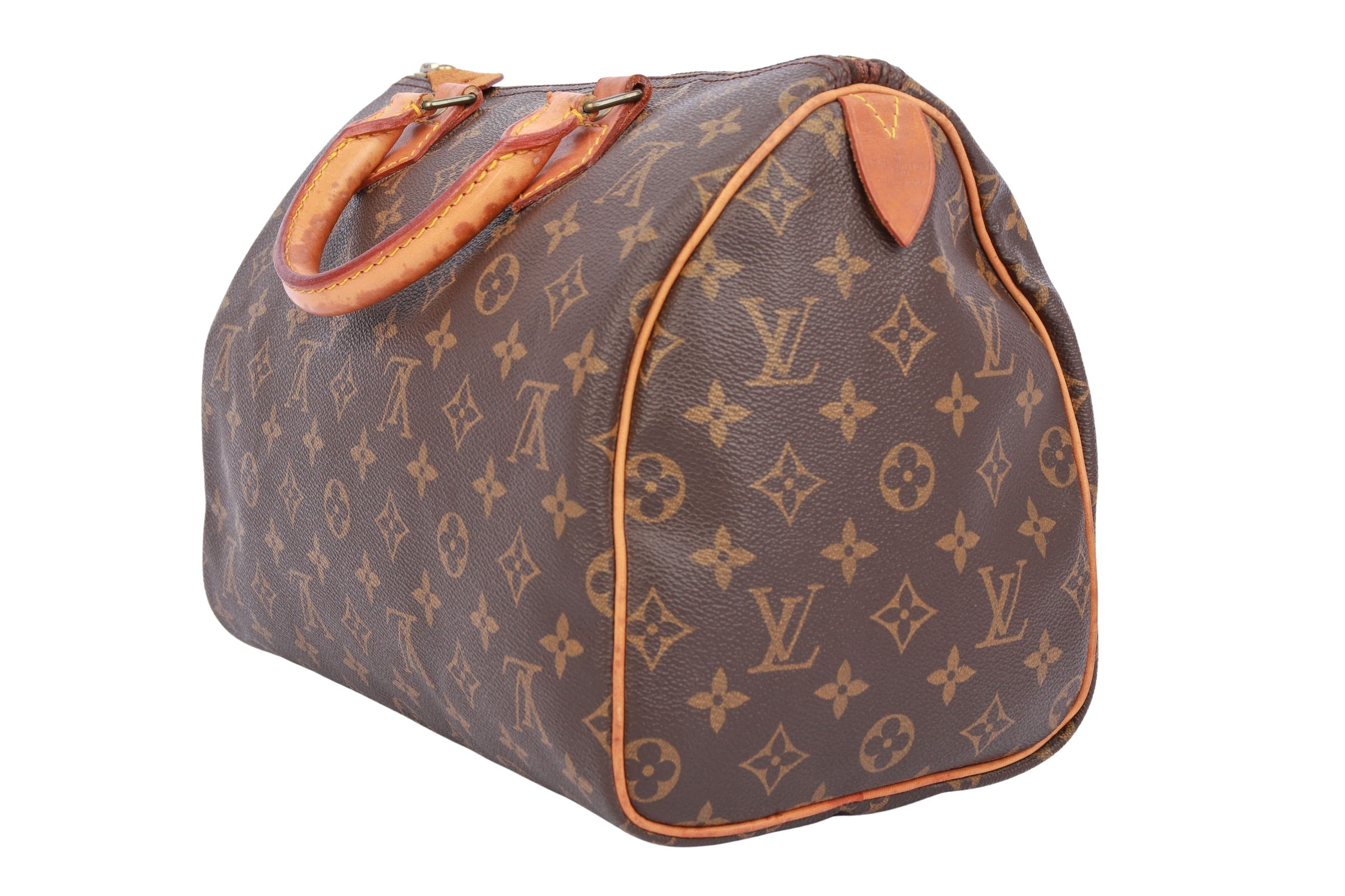 Die Louis Vuitton Speedy 30 ist eine Ikone unter den Handtaschen. Gefertigt aus dem klassischen Monogram Canvas, kombiniert sie zeitloses Design mit praktischer Größe. Die markante Silhouette, die goldfarbenen Details und die zwei runden Ledergriffe machen sie zum eleganten Begleiter für jeden Tag – stilvoll, kompakt und unverkennbar Louis Vuitton.