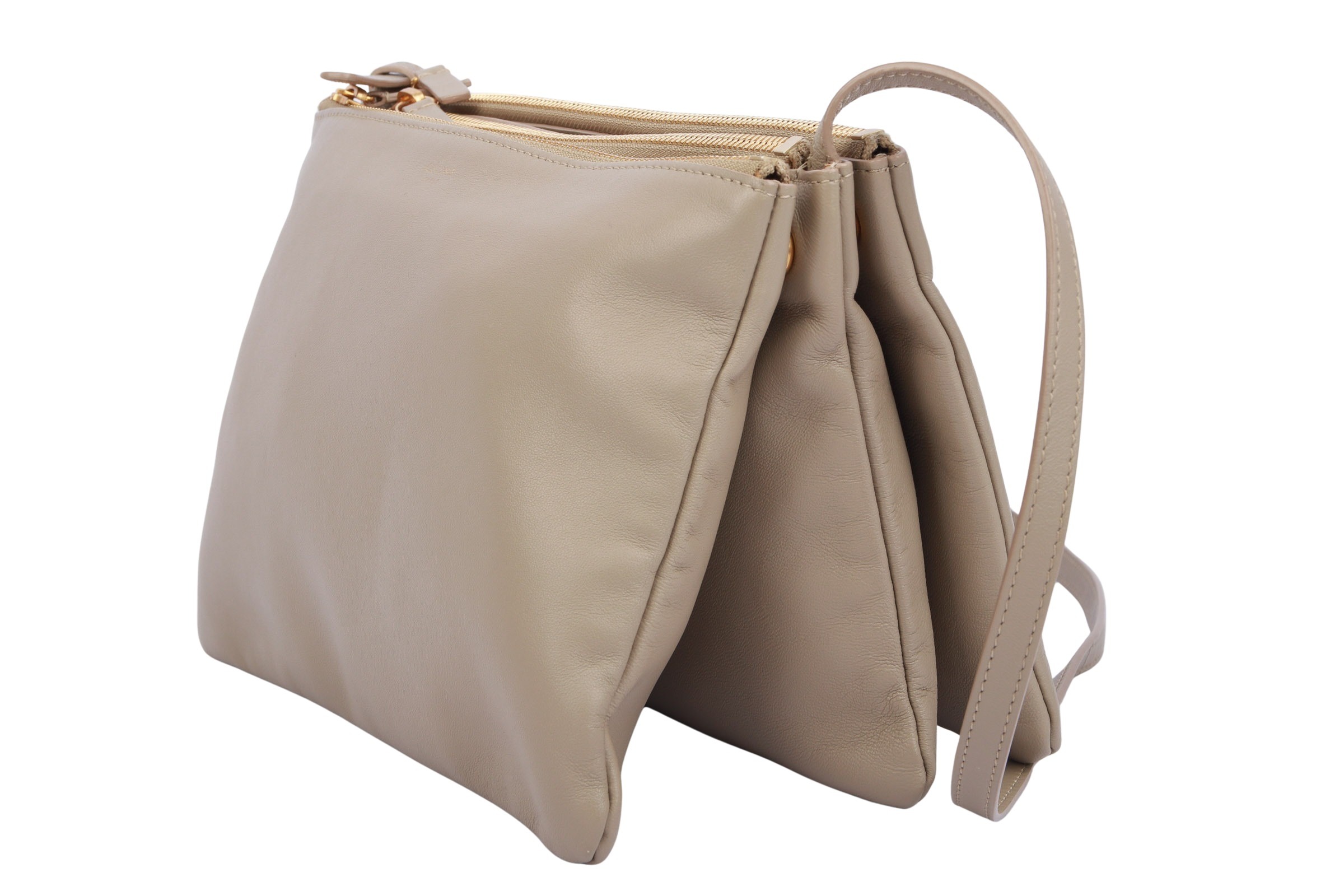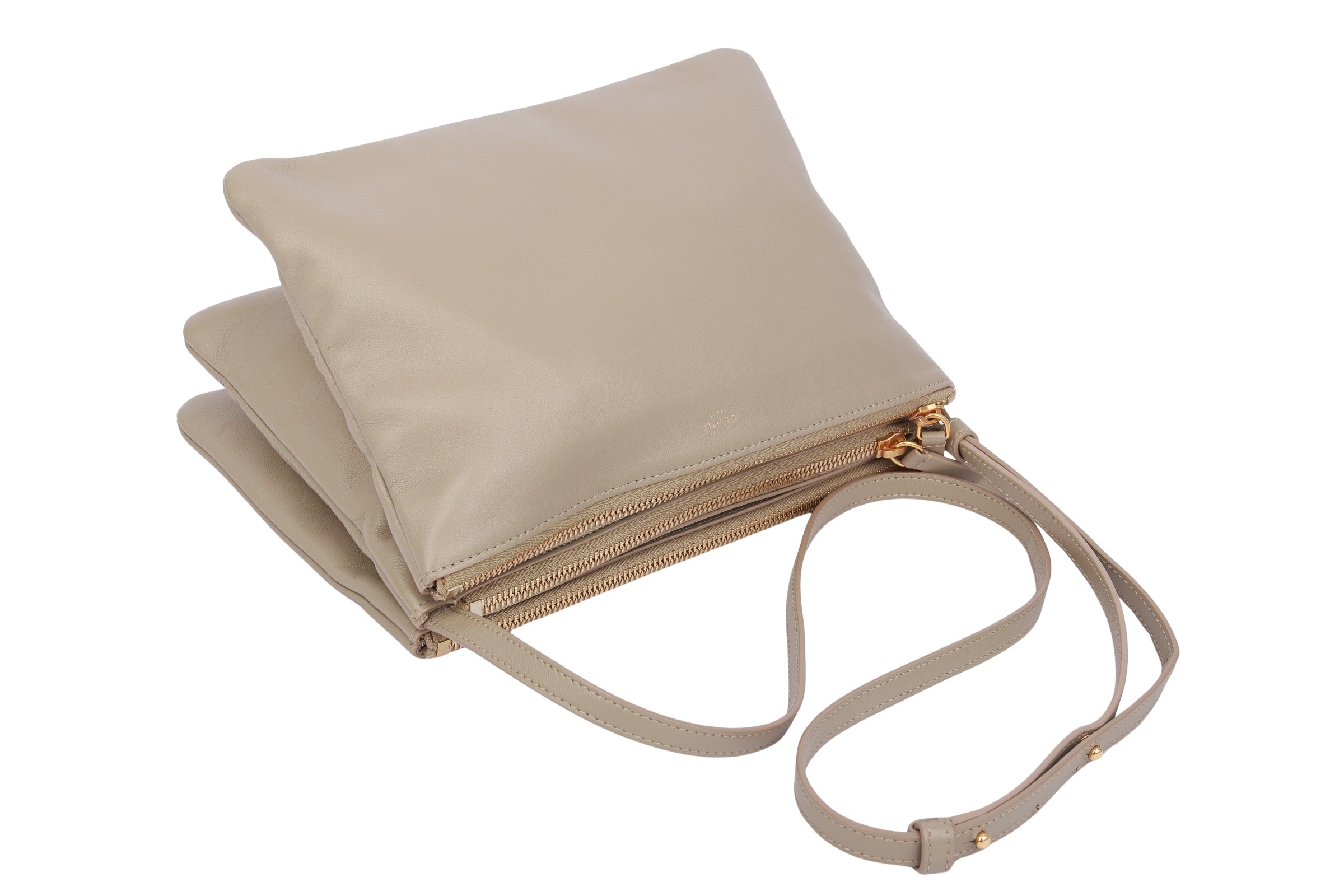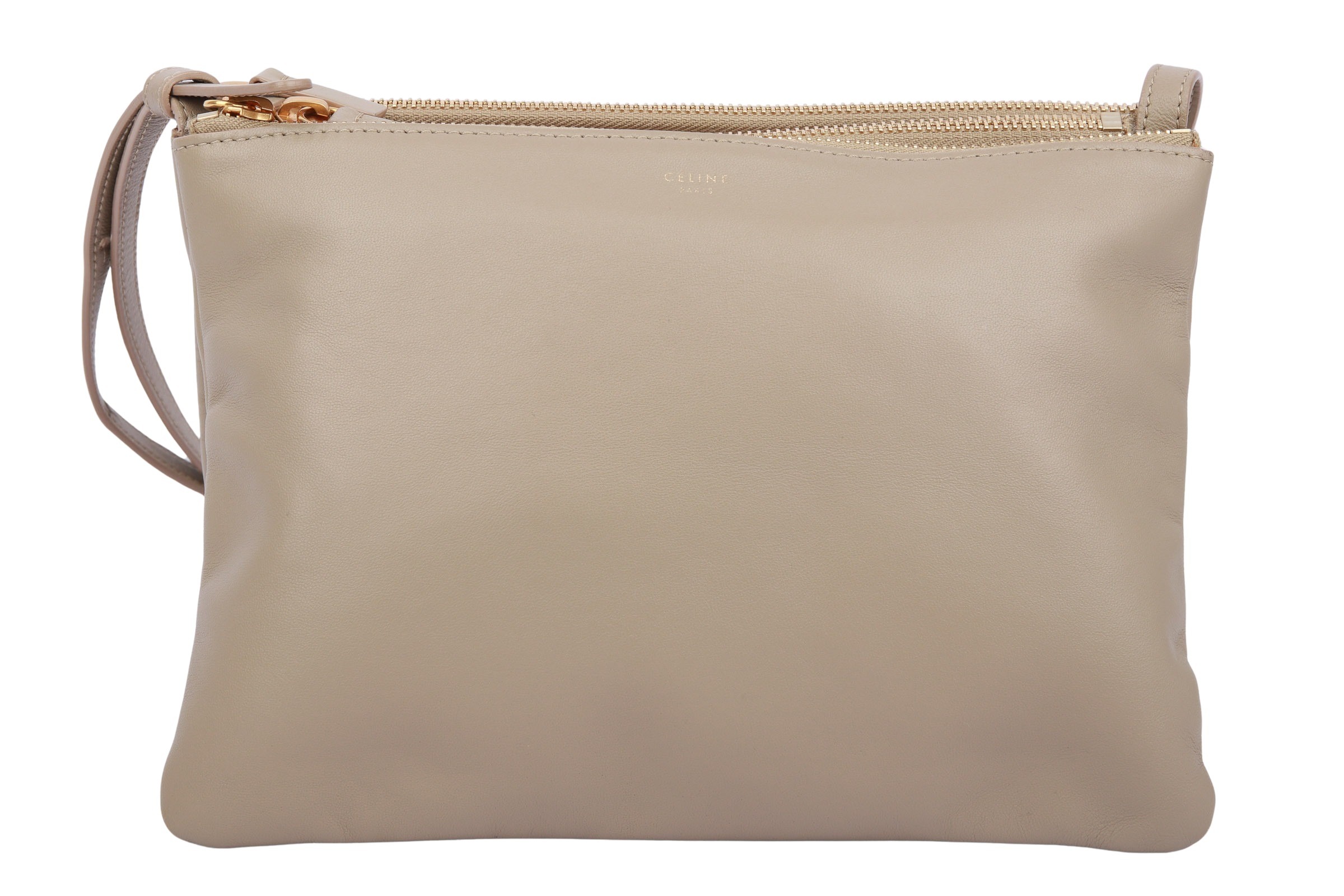 Die Céline Trio Large verkörpert schlichte Eleganz und zeitlose Raffinesse. Hergestellt aus hochwertigem Leder strahlt sie eine unaufdringliche Schönheit aus. Ihre minimalistische Silhouette wird durch die sauberen Linien und das diskrete Céline-Logo auf der Vorderseite betont. Mit ihren drei separaten Taschen bietet sie eine praktische und dennoch stilvolle Möglichkeit, Ihre persönlichen Gegenstände zu organisieren. Der verstellbare Riemen ermöglicht es Ihnen, die Tasche bequem über der Schulter oder Crossbody zu tragen. Die Céline Trio Large ist eine zeitlose Ergänzung für jede Garderobe und verleiht jedem Outfit eine subtile Eleganz.