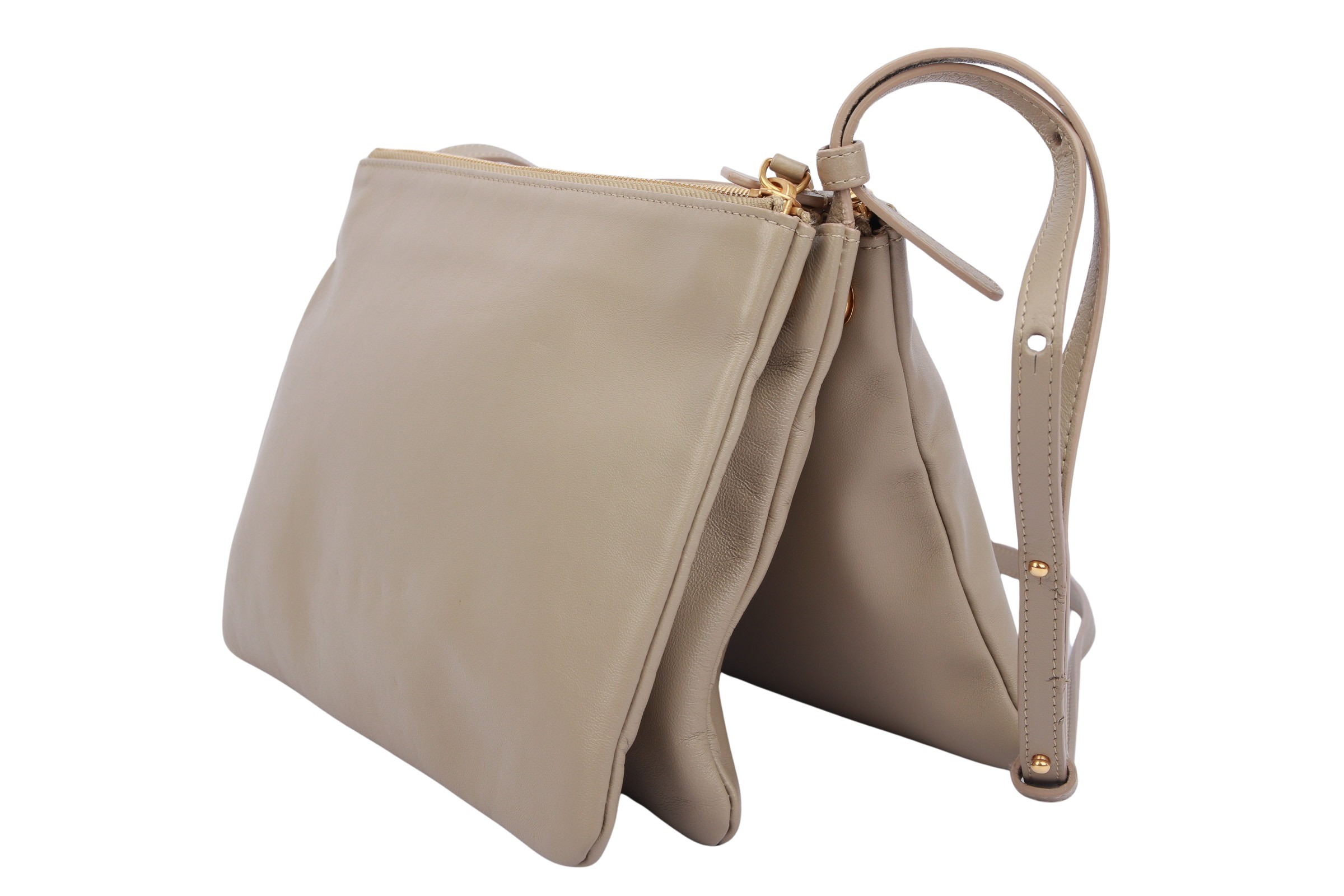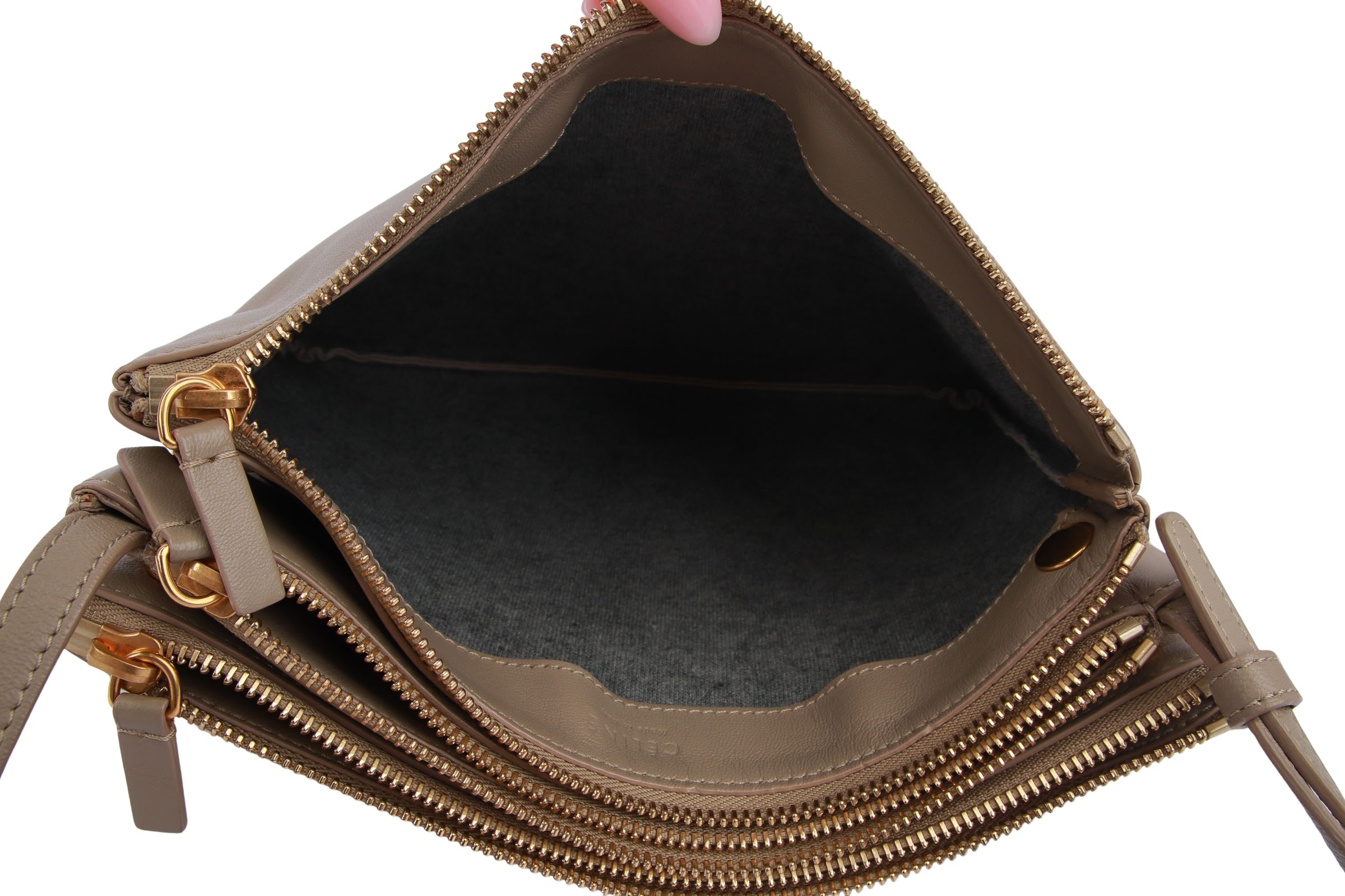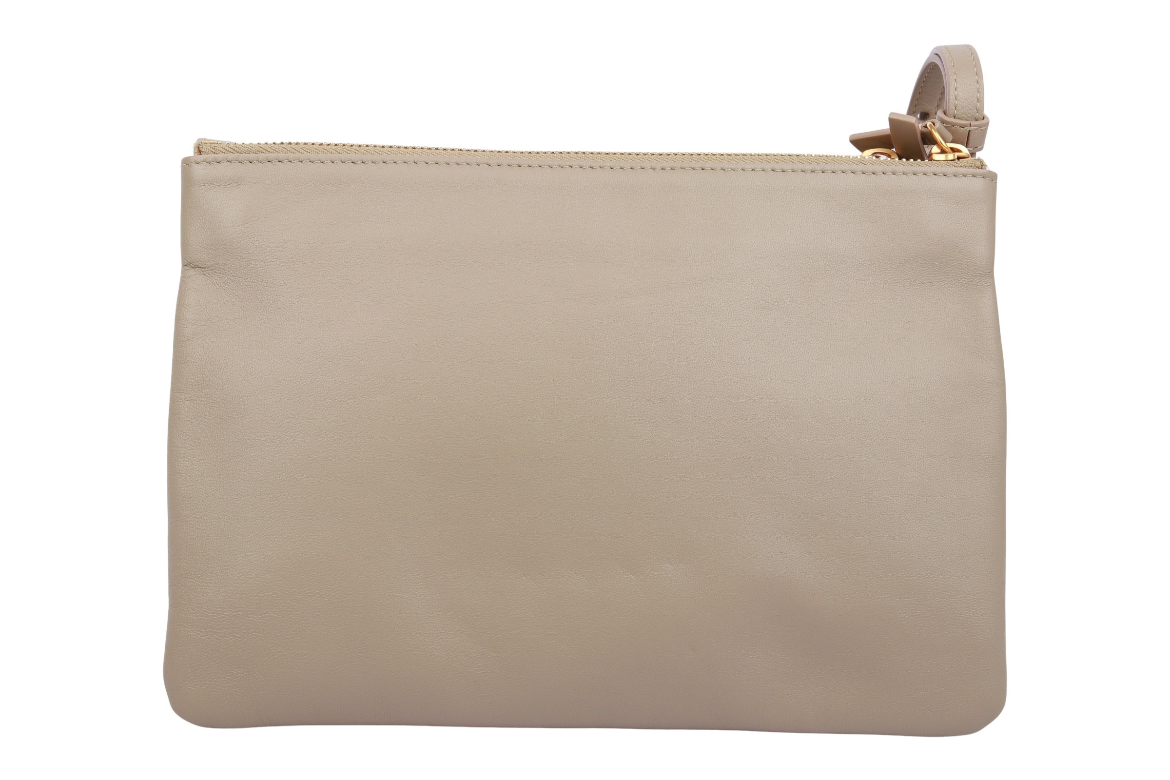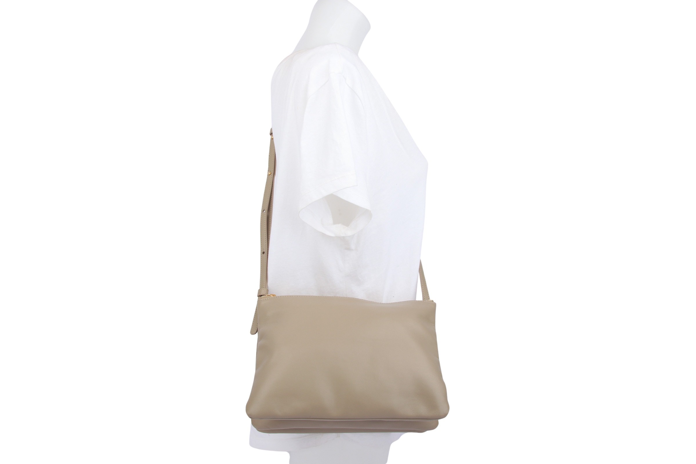 Die Céline Trio Large verkörpert schlichte Eleganz und zeitlose Raffinesse. Hergestellt aus hochwertigem Leder strahlt sie eine unaufdringliche Schönheit aus. Ihre minimalistische Silhouette wird durch die sauberen Linien und das diskrete Céline-Logo auf der Vorderseite betont. Mit ihren drei separaten Taschen bietet sie eine praktische und dennoch stilvolle Möglichkeit, Ihre persönlichen Gegenstände zu organisieren. Der verstellbare Riemen ermöglicht es Ihnen, die Tasche bequem über der Schulter oder Crossbody zu tragen. Die Céline Trio Large ist eine zeitlose Ergänzung für jede Garderobe und verleiht jedem Outfit eine subtile Eleganz.