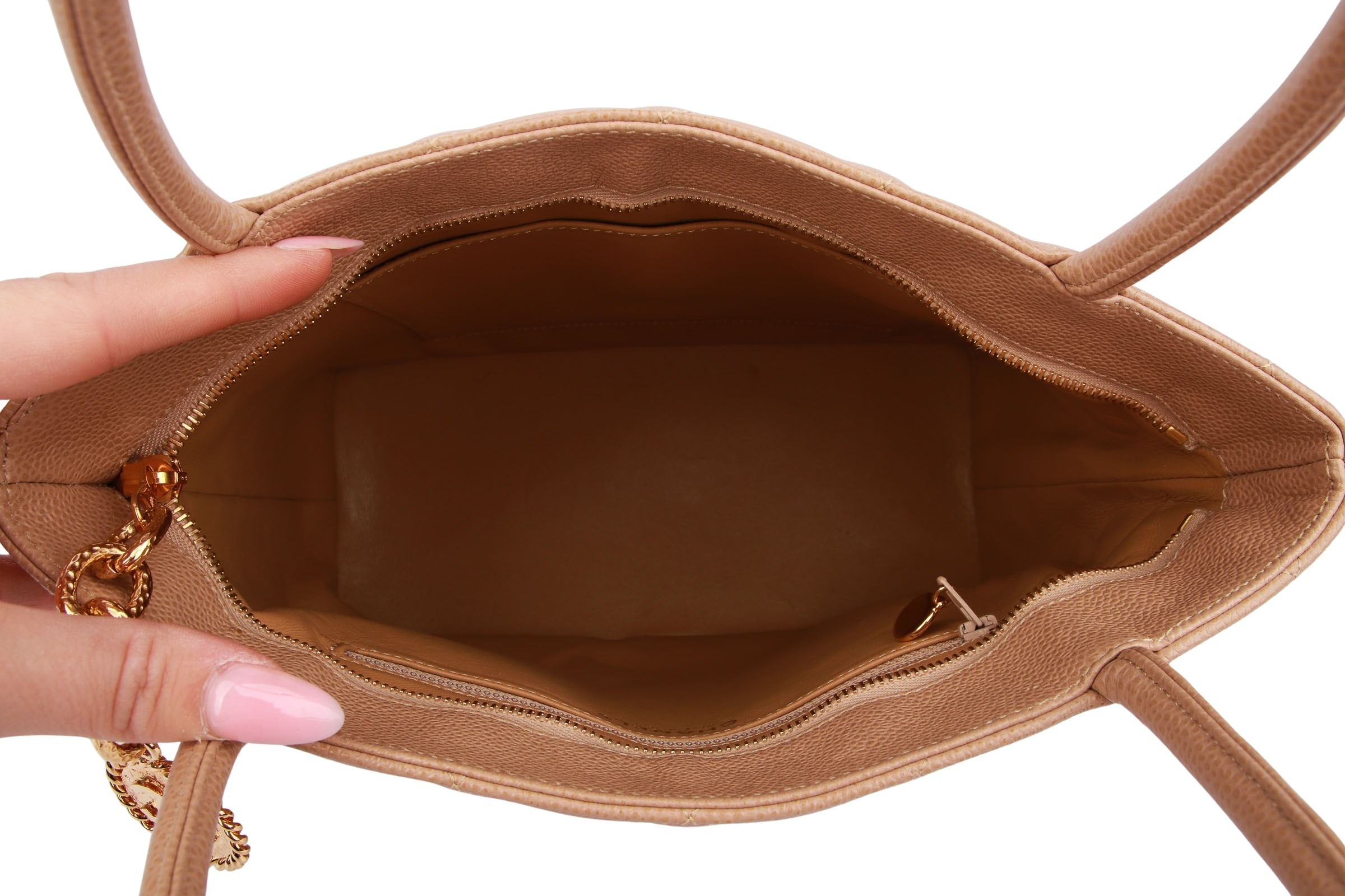 Diese wunderschöne Handtasche begeistert durch ihre schlichte Eleganz und die klassischen Chanel-Steppnähte.