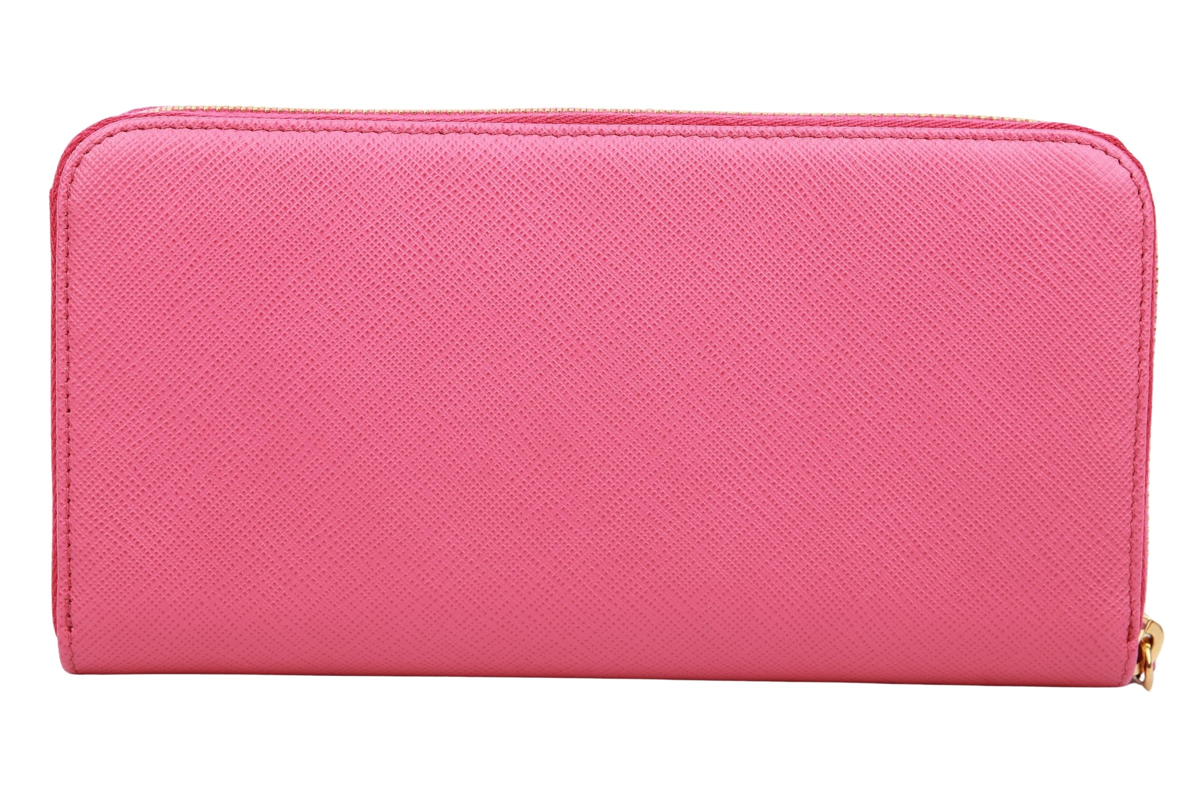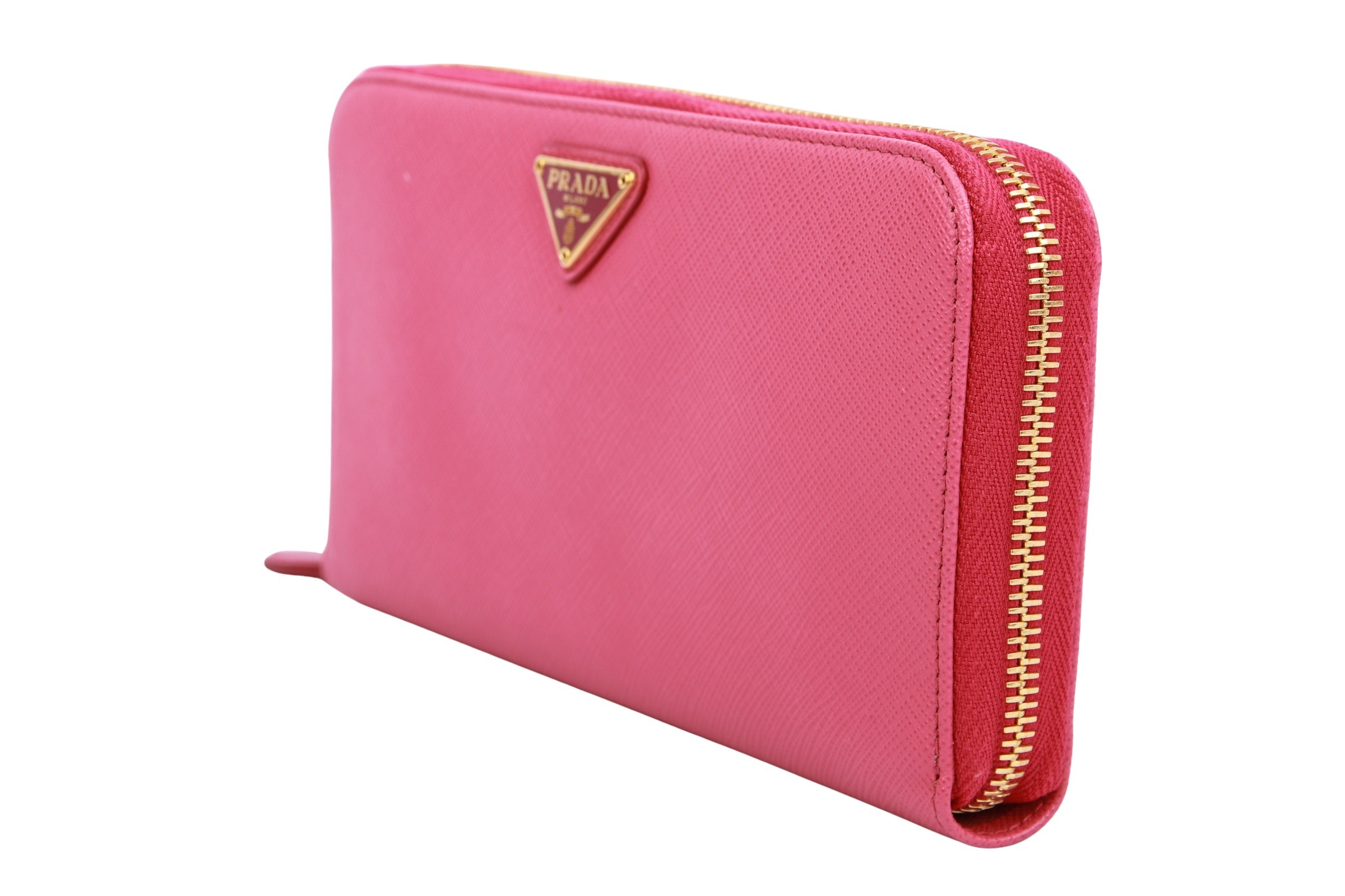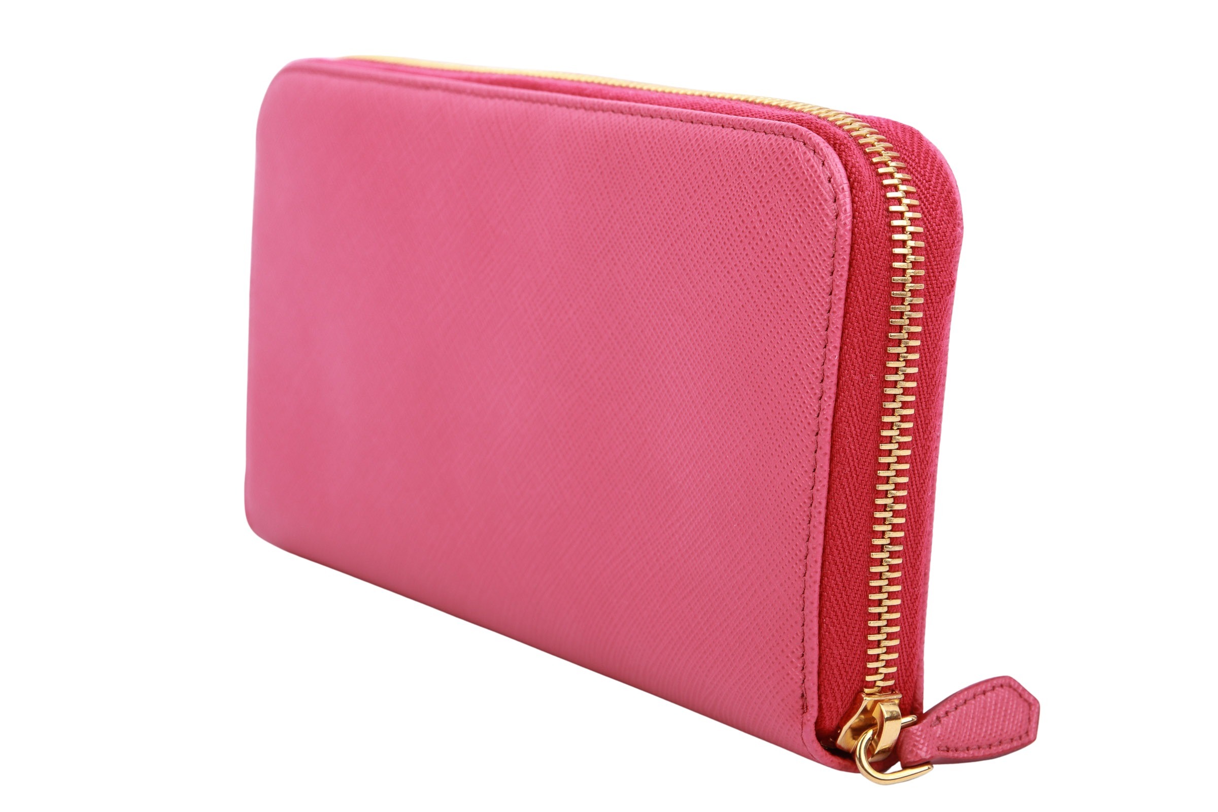 Dieses luxuriöse Portemonnaie von Prada vereint klassische Handwerkskunst mit modernem Stil. Gefertigt aus dem ikonischen Saffiano-Leder, besticht es durch seine charakteristische, feine Struktur, hohe Strapazierfähigkeit und edlen Glanz.