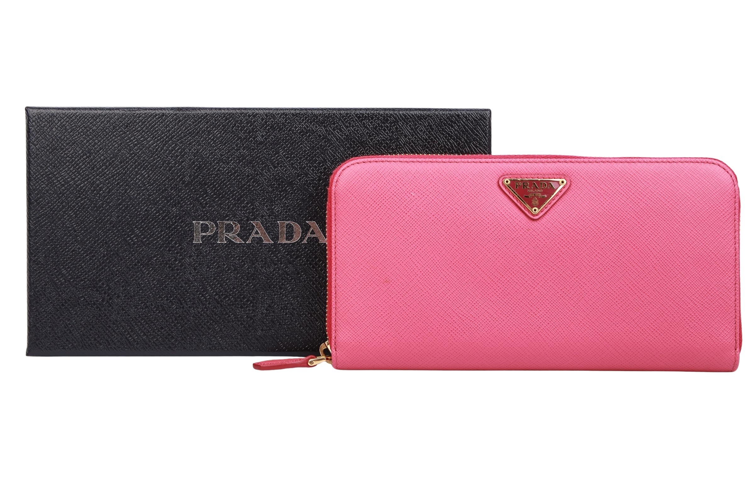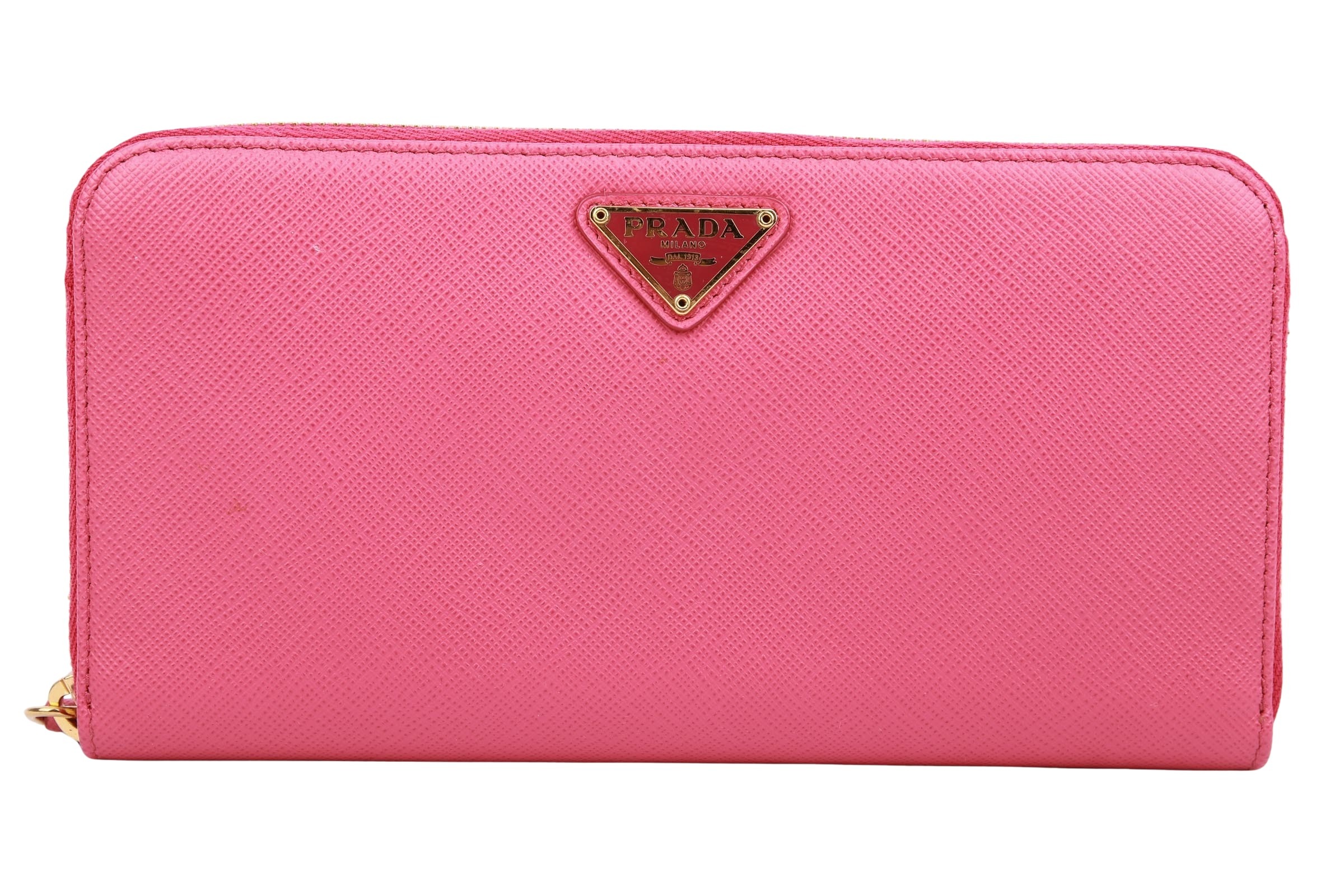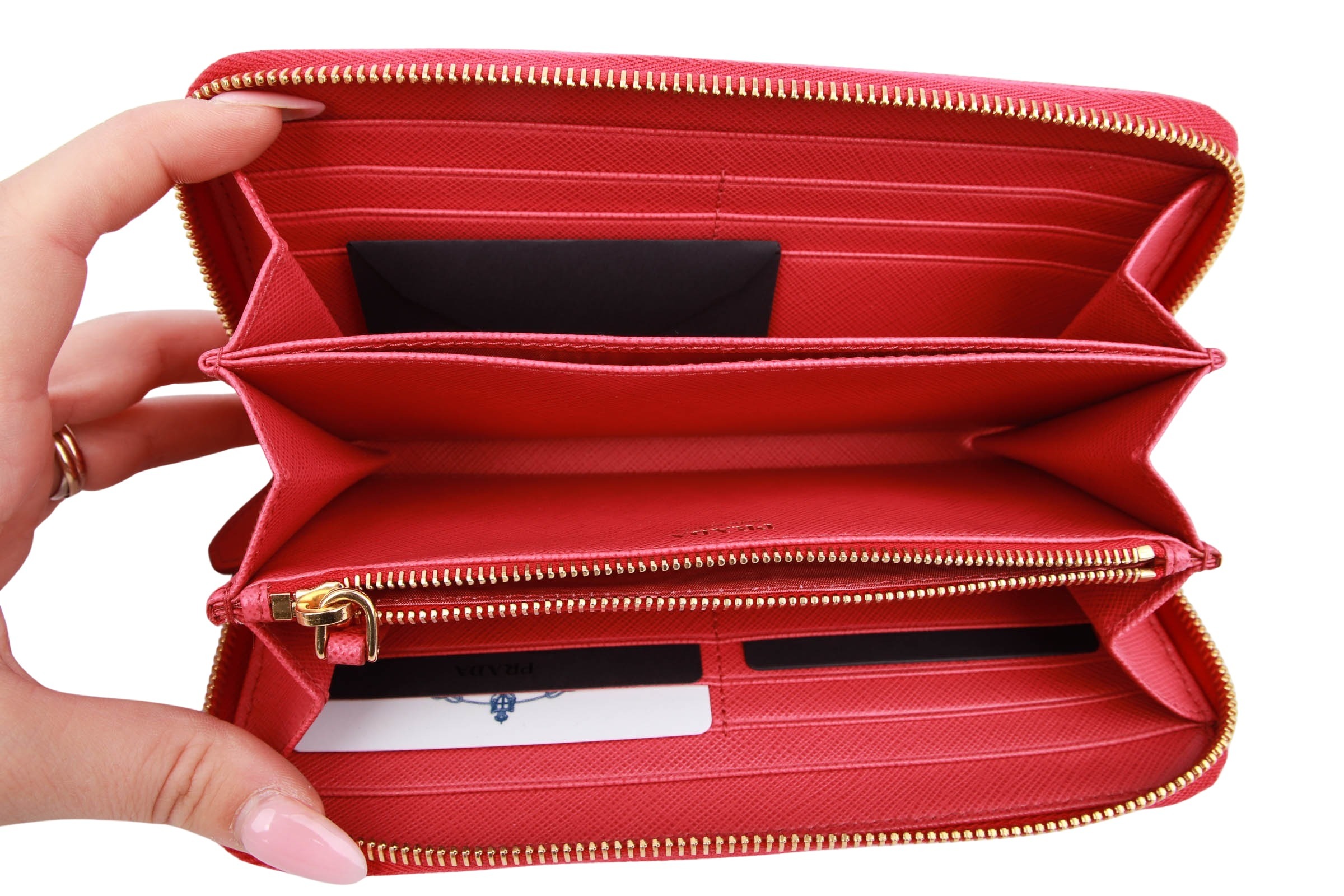 Dieses luxuriöse Portemonnaie von Prada vereint klassische Handwerkskunst mit modernem Stil. Gefertigt aus dem ikonischen Saffiano-Leder, besticht es durch seine charakteristische, feine Struktur, hohe Strapazierfähigkeit und edlen Glanz.