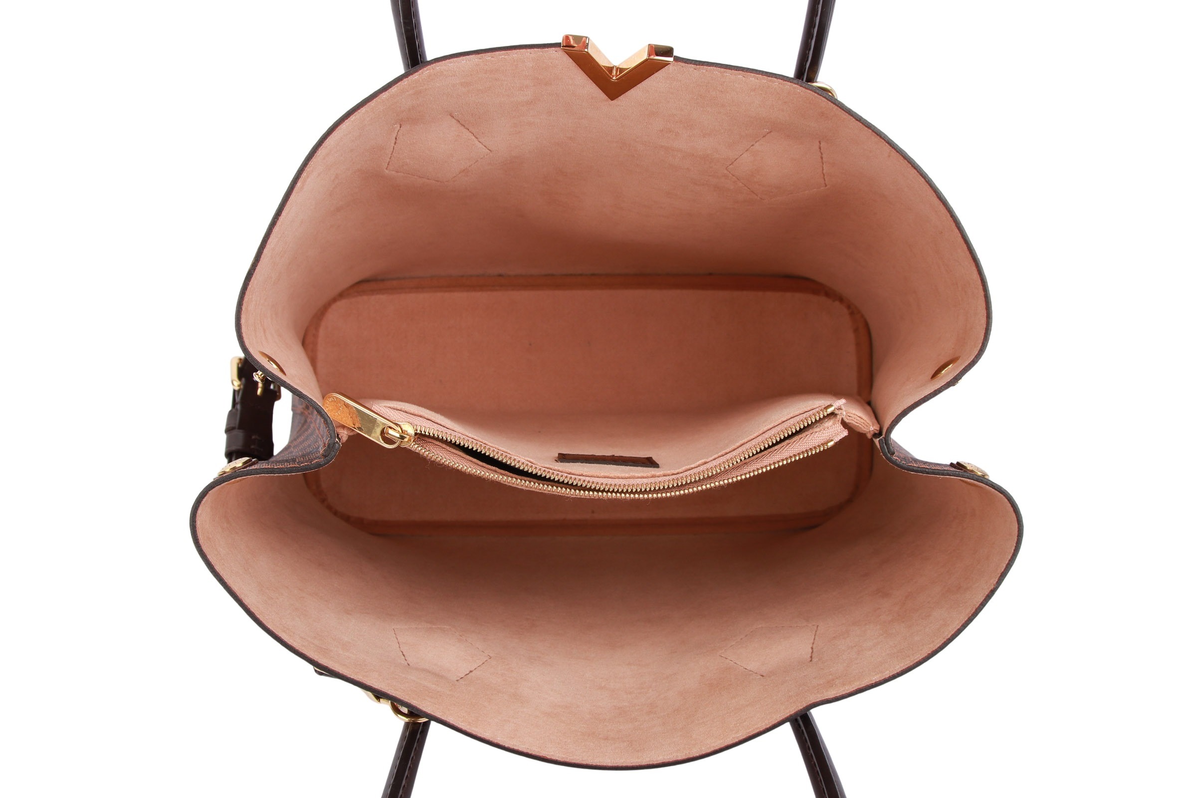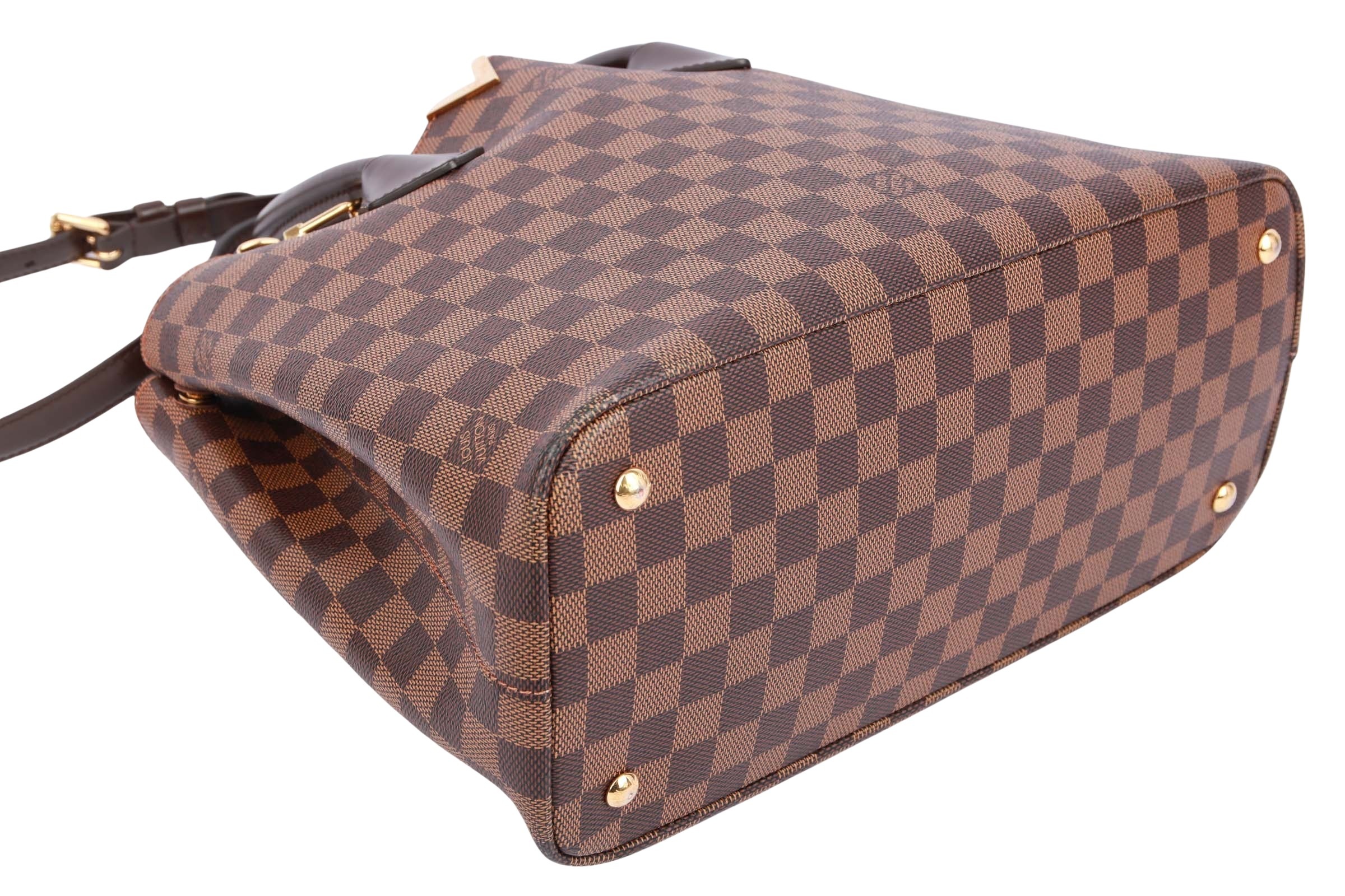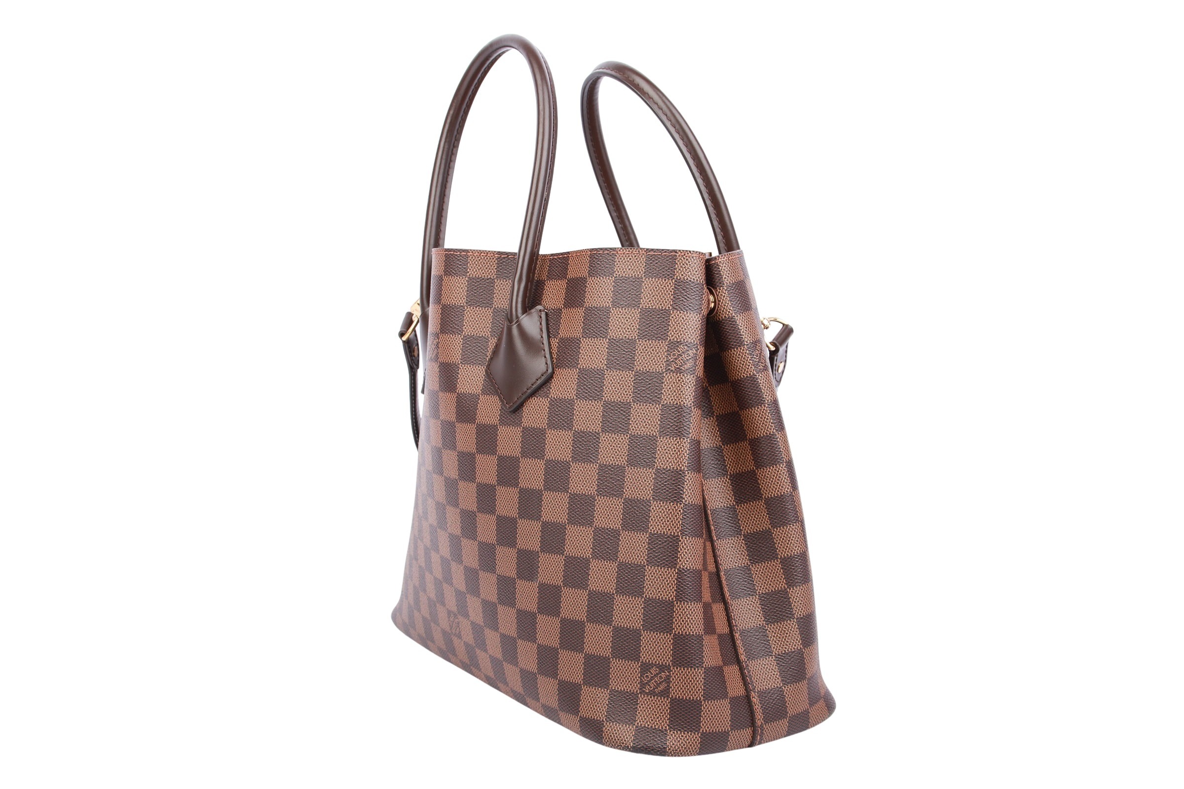 Die Louis Vuitton Kensington vereint klassische Eleganz mit modernem Chic. Gefertigt aus dem ikonischen Damier Ebene Canvas, besticht die Tasche durch ihr strukturiertes Design und ihre raffinierten Details – darunter elegante Lederbesätze und goldfarbene Metall-Elemente. Mit dem praktischen Reißverschluss, den zwei Tragegriffen und dem abnehmbaren Schulterriemen ist sie der ideale Begleiter für stilvolle Alltagslooks oder gehobene Business-Outfits.