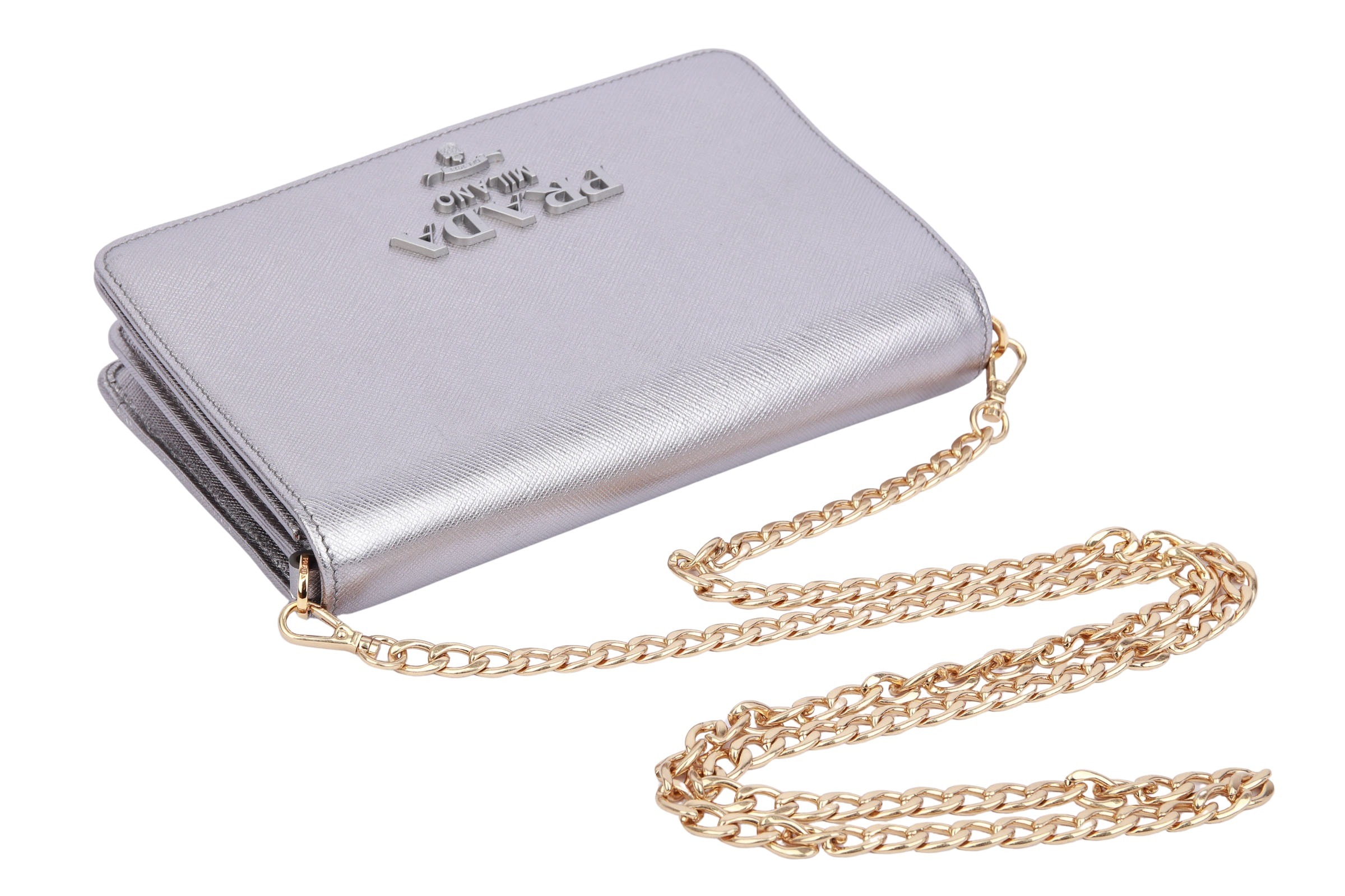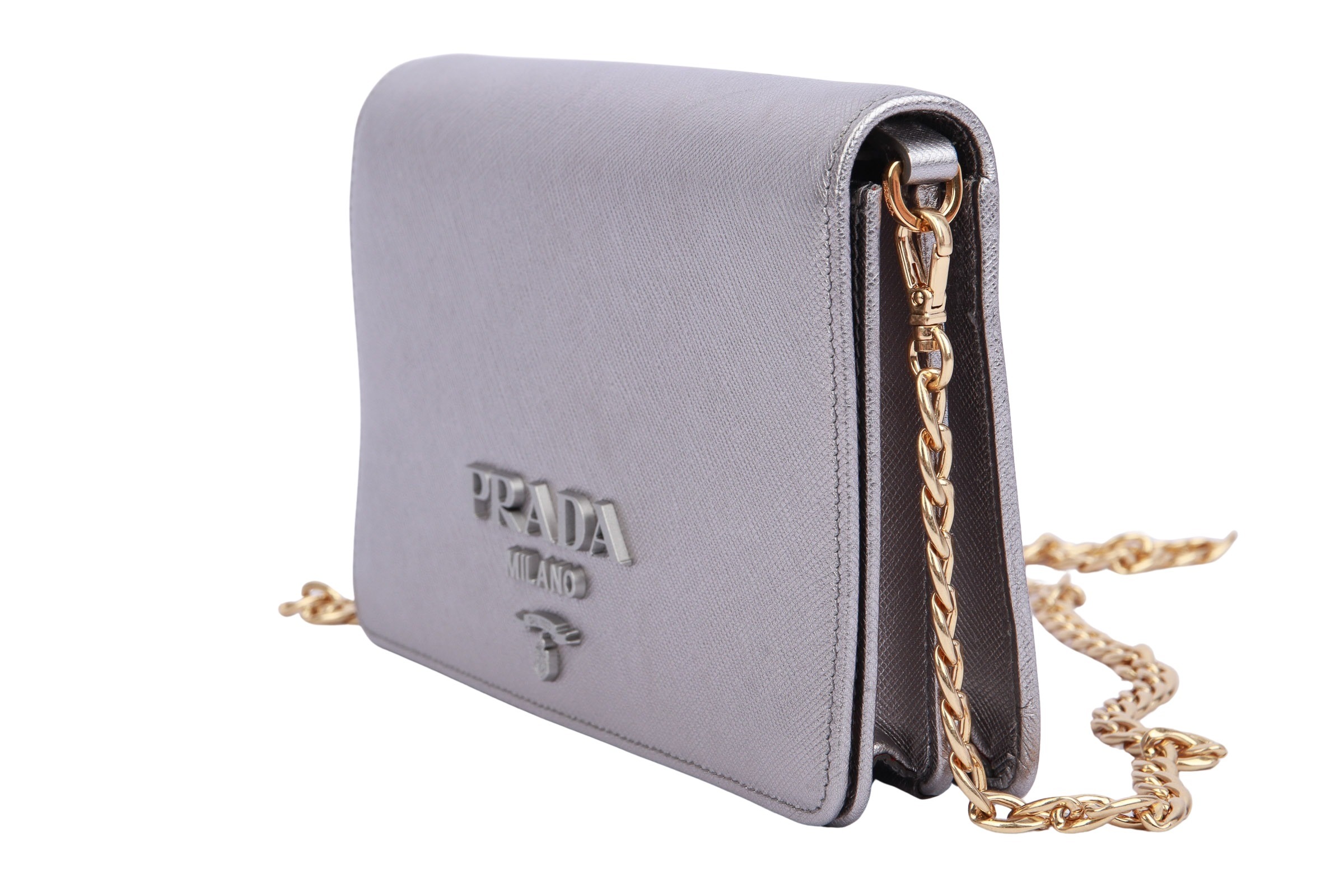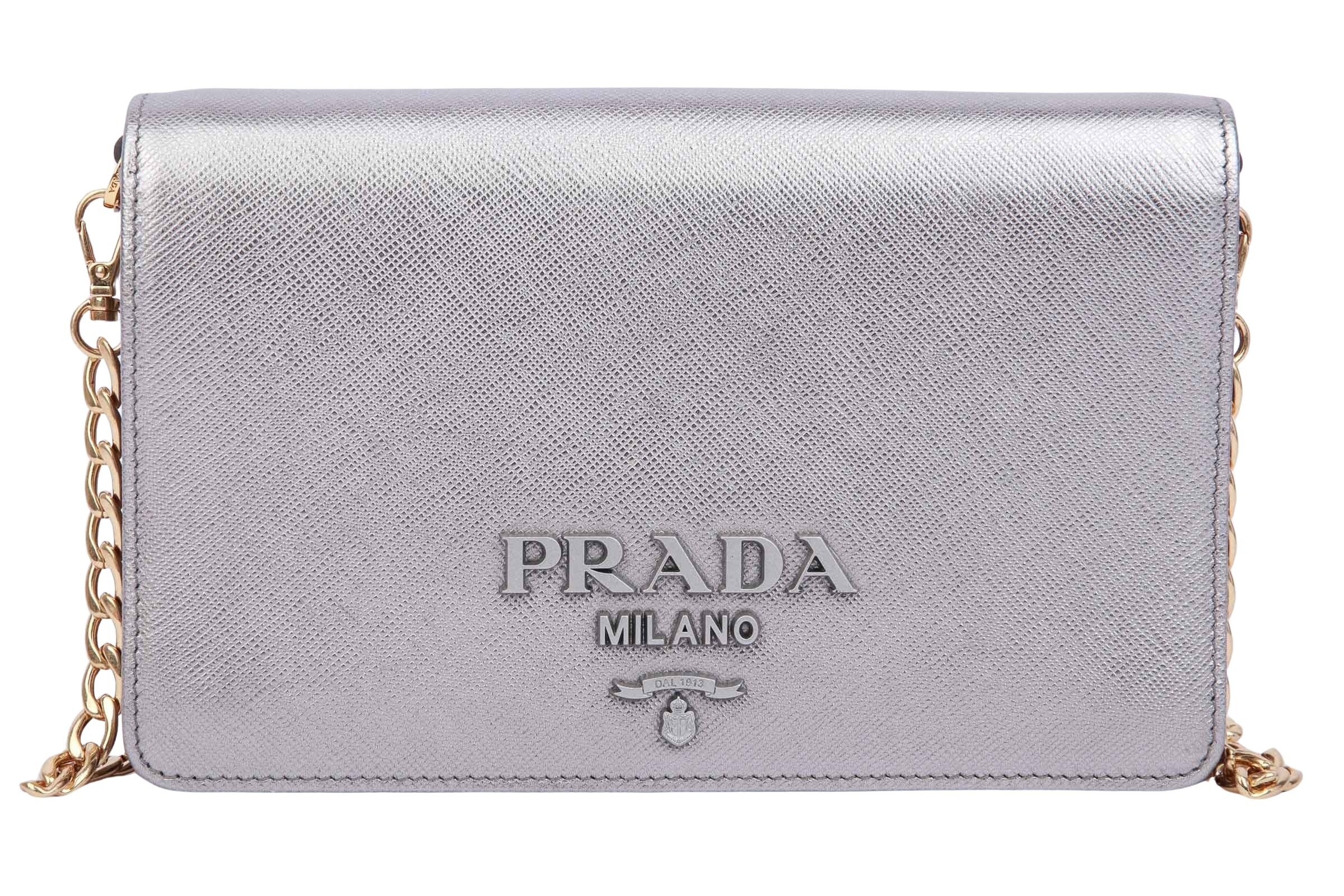 Prada Wallet On Chain Bag Saffiano Leather Silber