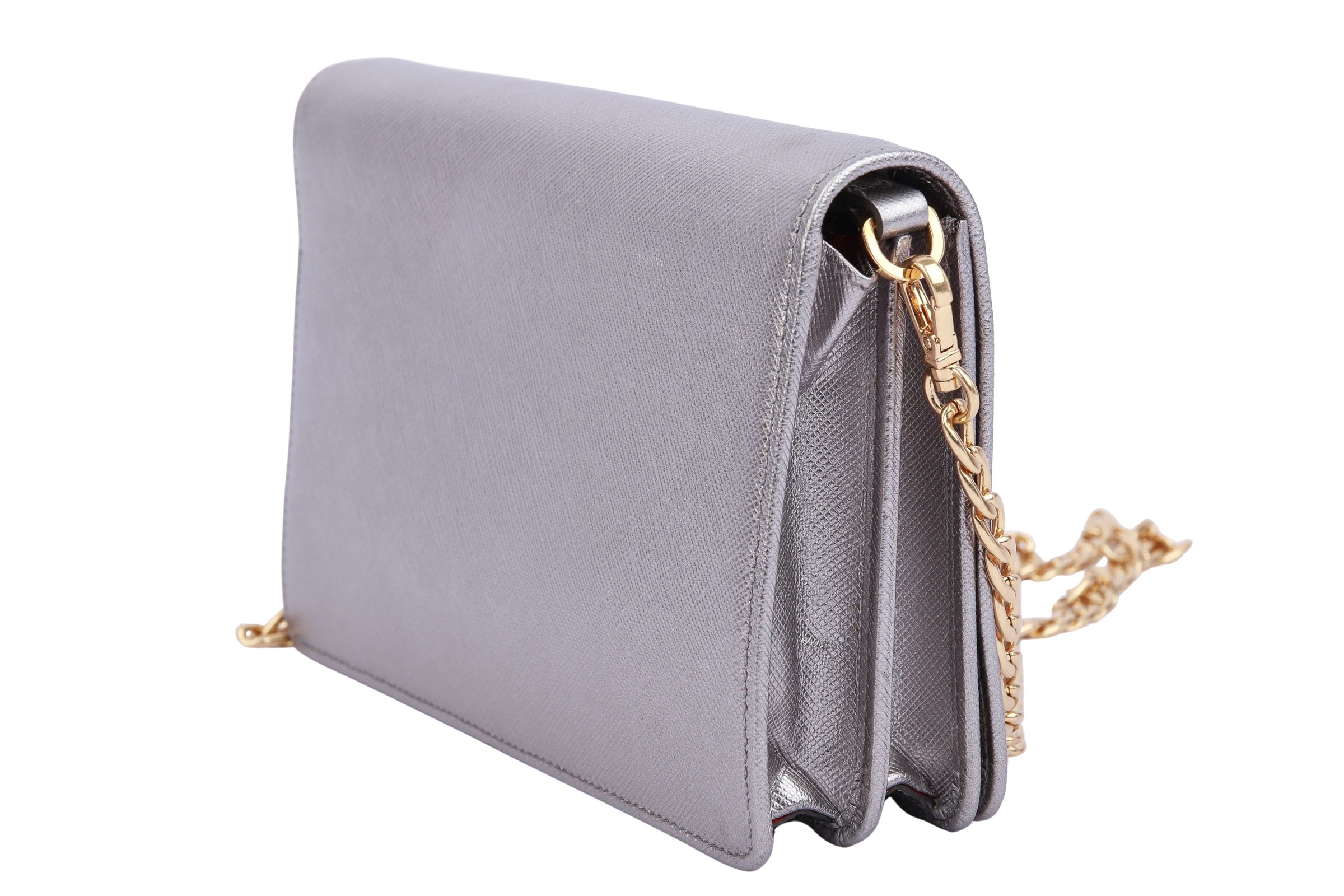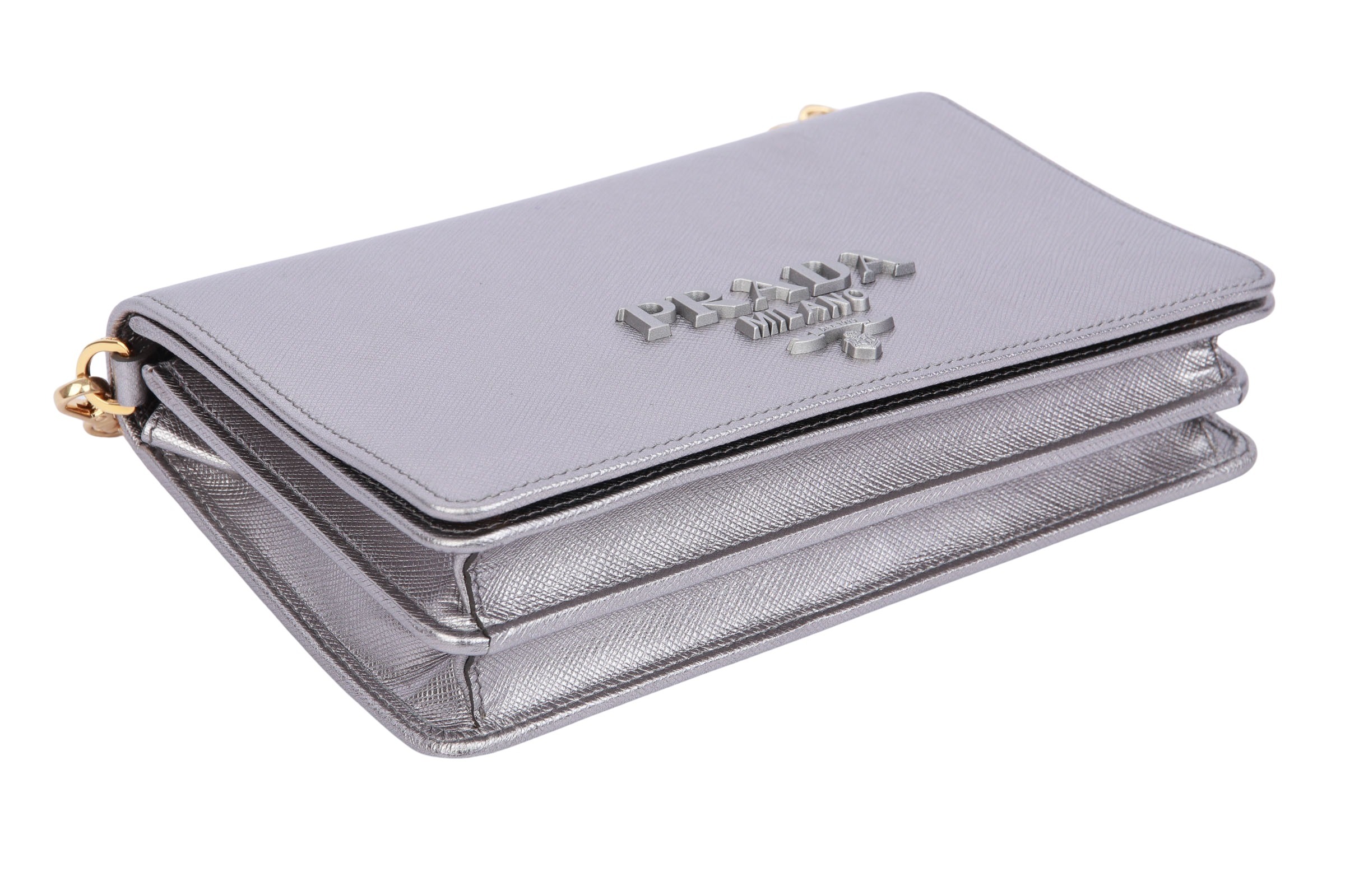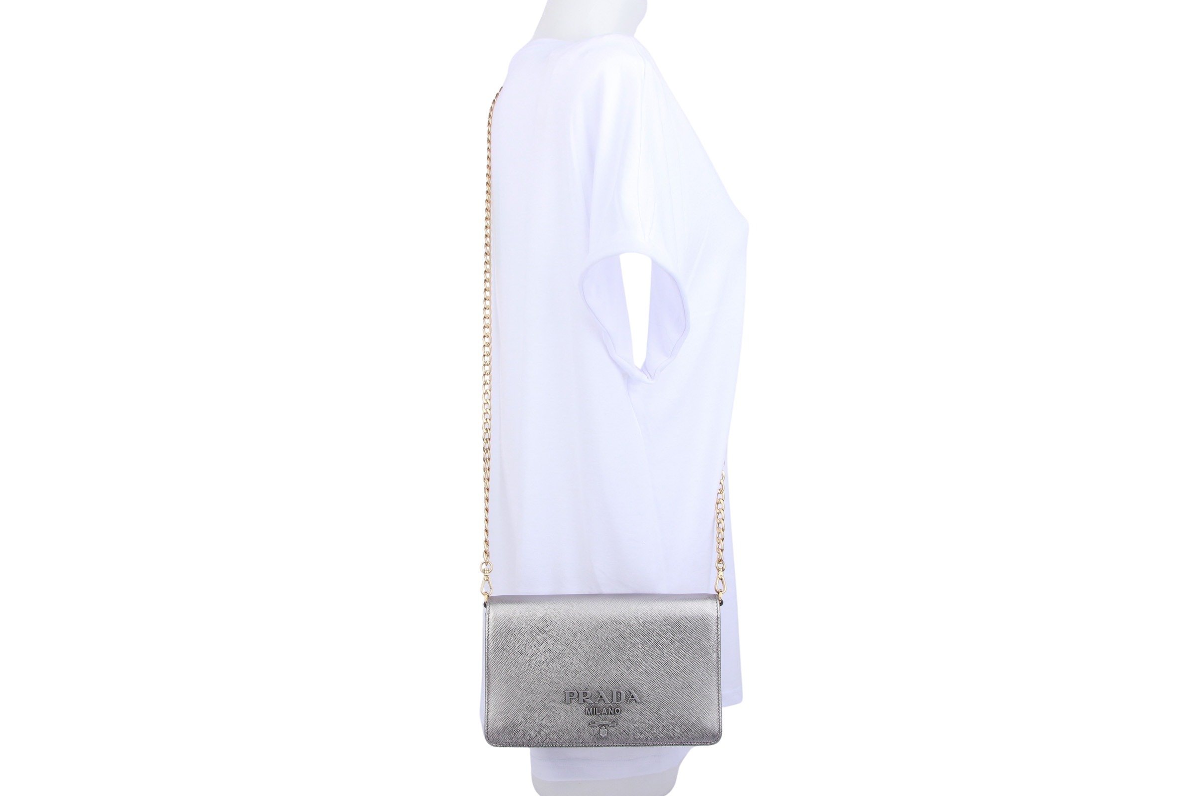 Prada Wallet On Chain Bag Saffiano Leather Silber