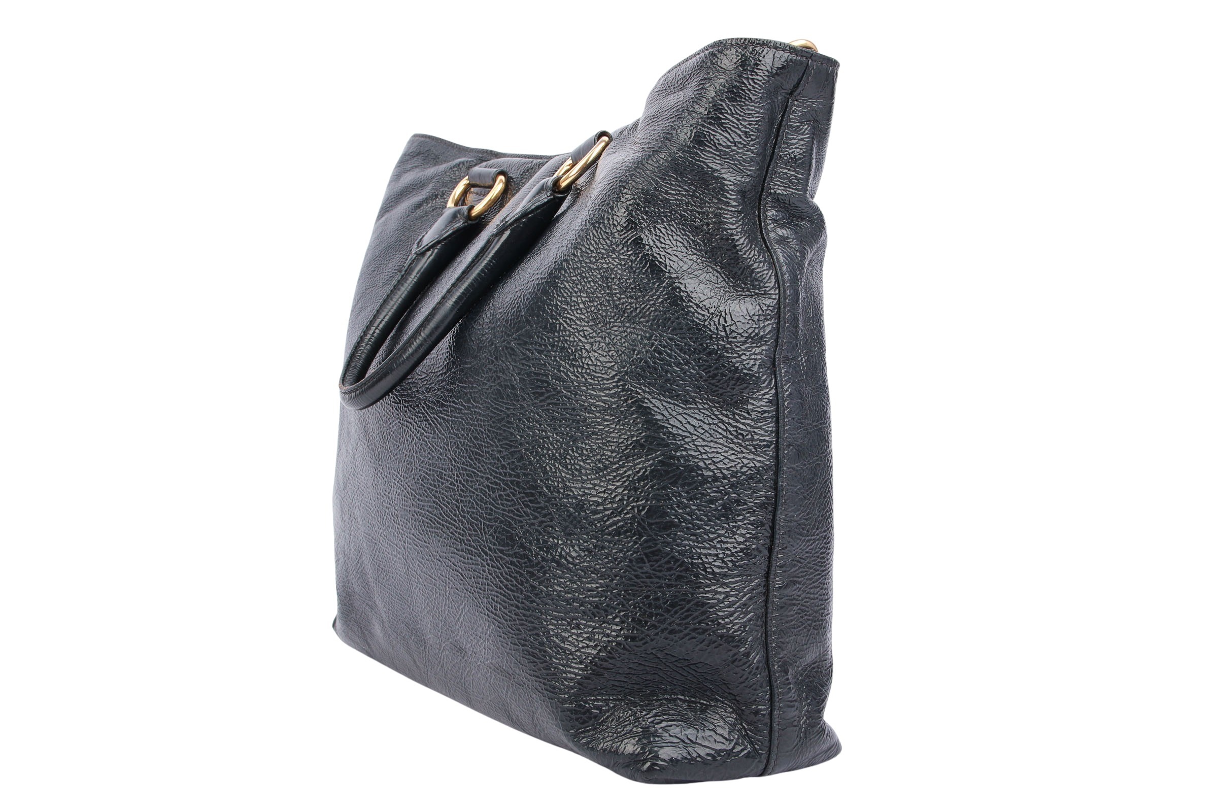 Glänzendes Lackleder in tiefem Schwarz trifft auf klare, strukturierte Formen – diese Tote vereint Eleganz mit moderner Raffinesse. Der Lack‑Finish sorgt für beeindruckende Reflexionen, während das hochwertige, feste Leder Stabilität und Langlebigkeit garantiert.Die Tasche besitzt zwei robuste Tragegriffe, ideal für das Tragen in der Hand oder über dem Arm, sowie eine großzügige offene Silhouette, die in ihrem Inneren Platz für alle Essentials bietet – von Portemonnaie über Kosmetik bis Notebook.