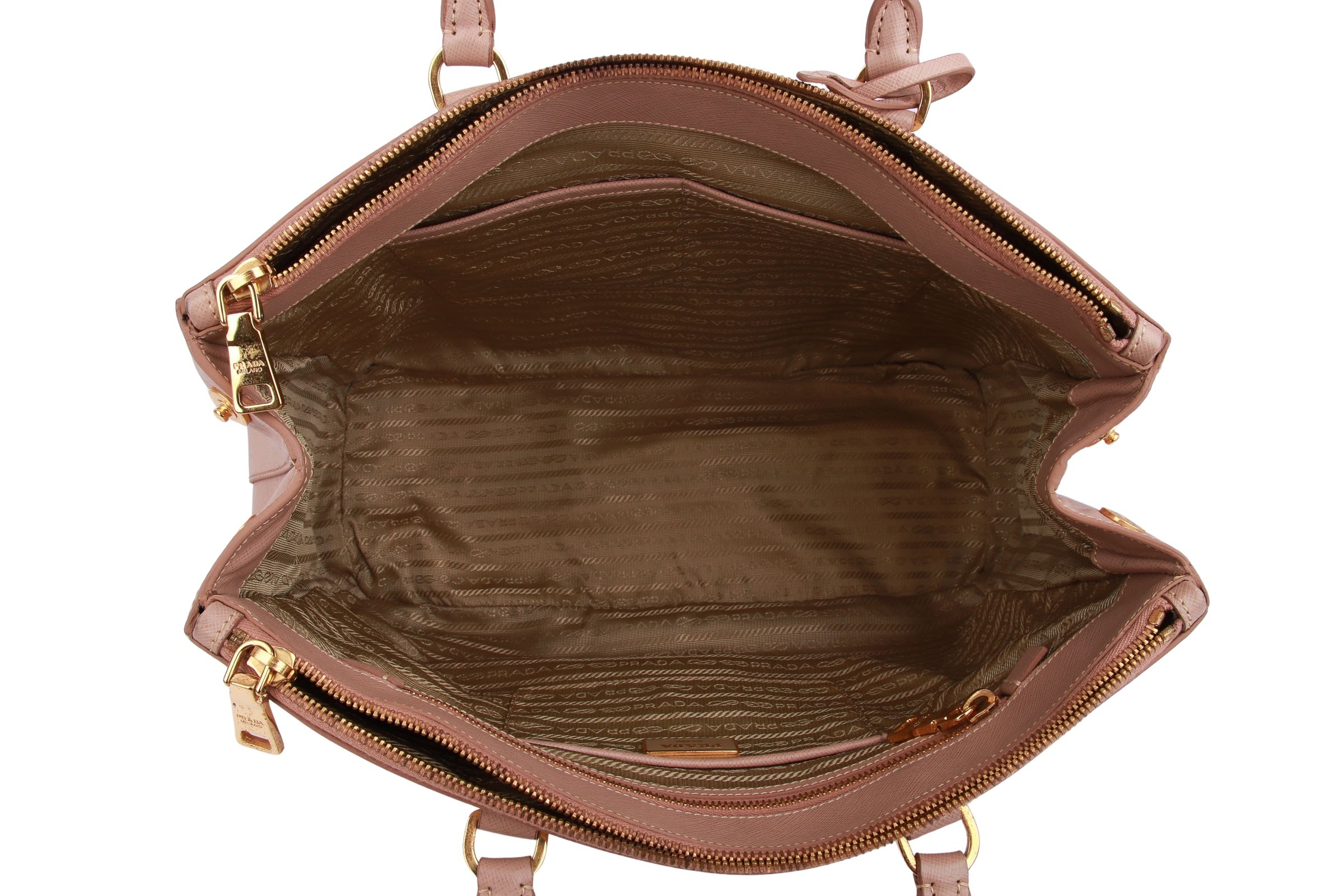 Die Prada Saffiano Tote Bag in Altrosa besticht durch ihr elegantes Design und die hochwertige Verarbeitung aus robustem Saffiano-Leder. Mit klaren Linien, dezenten Gold-Details und praktischer Innenaufteilung vereint sie zeitlose Eleganz mit Alltagstauglichkeit – ein stilvoller Begleiter für jede Gelegenheit.