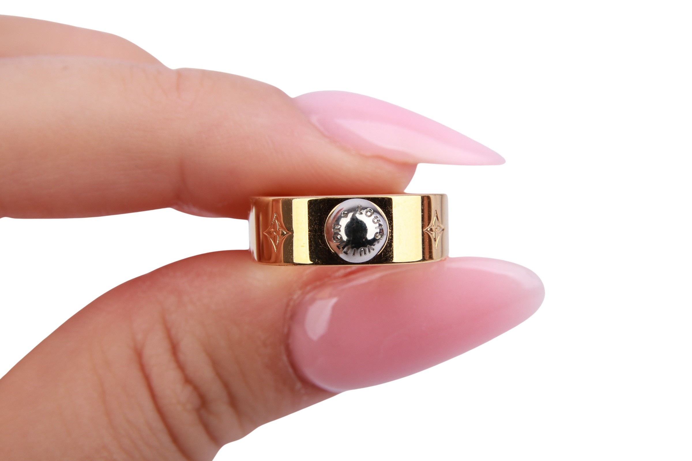 Der elegante Louis Vuitton Nanogram Ring ist ein echtes Statement-Piece für Liebhaber:innen luxuriöser Accessoires. Gefertigt aus vergoldetem Metall überzeugt der Ring durch sein modernes, zeitloses Design und die edle Gravur des ikonischen LV Monogram-Motivs.