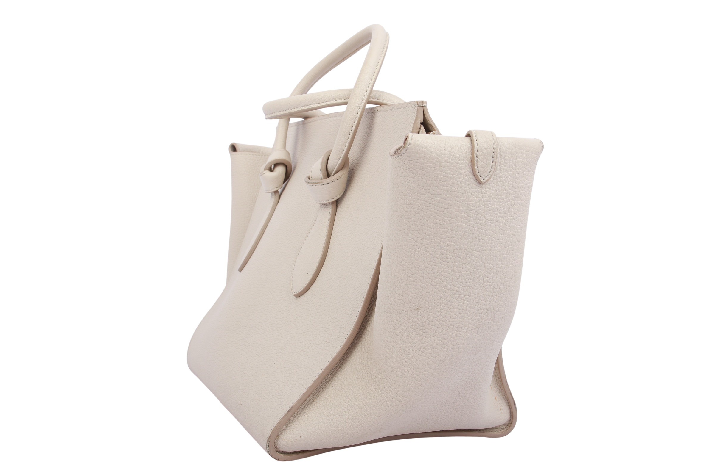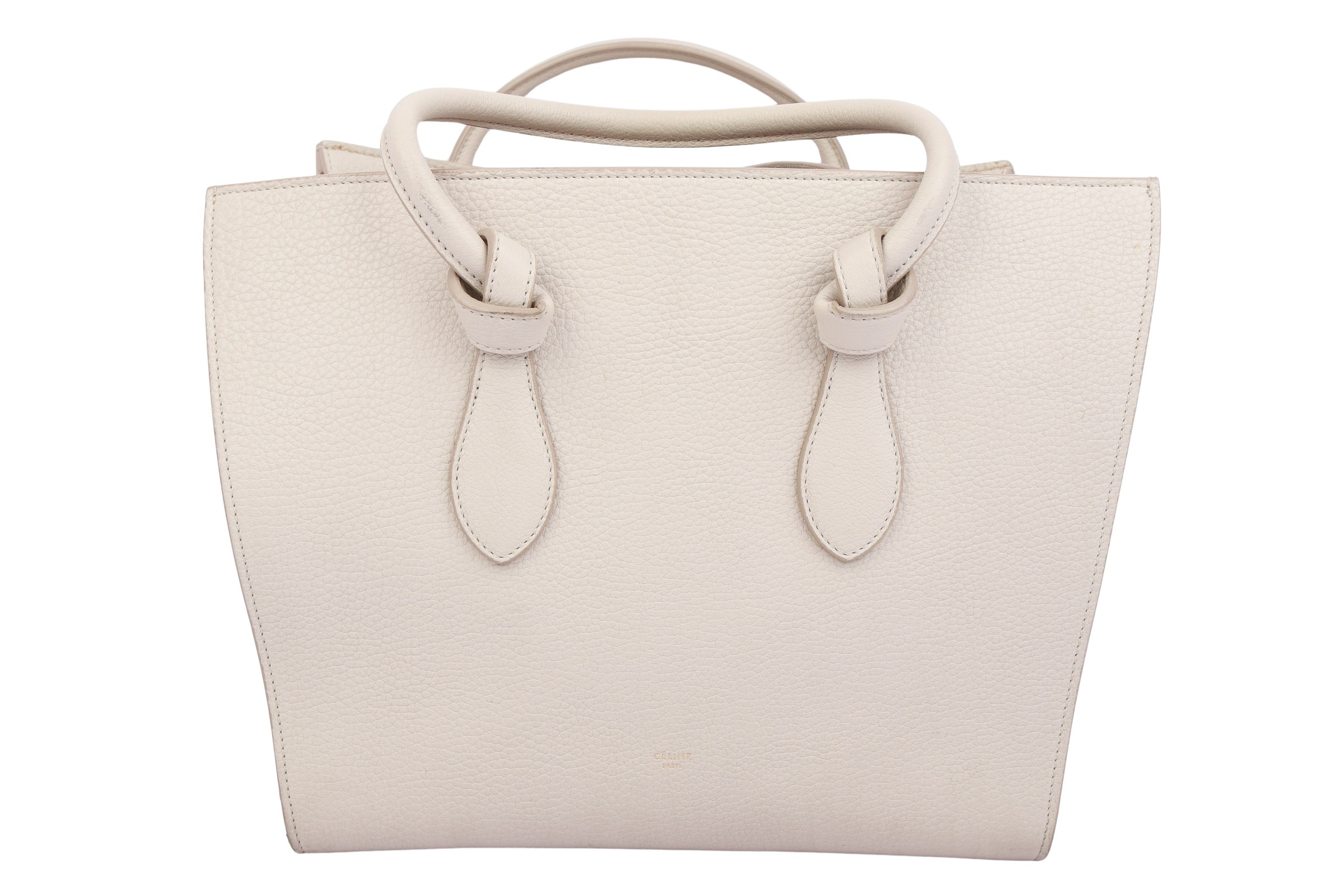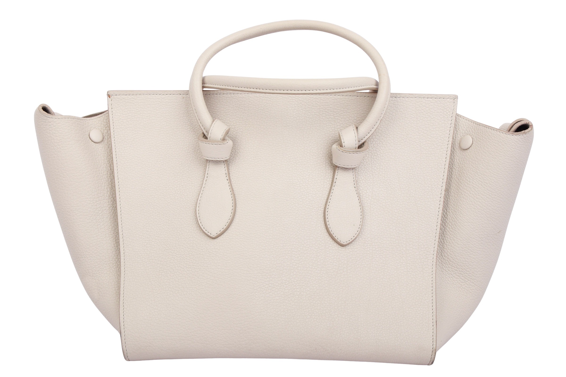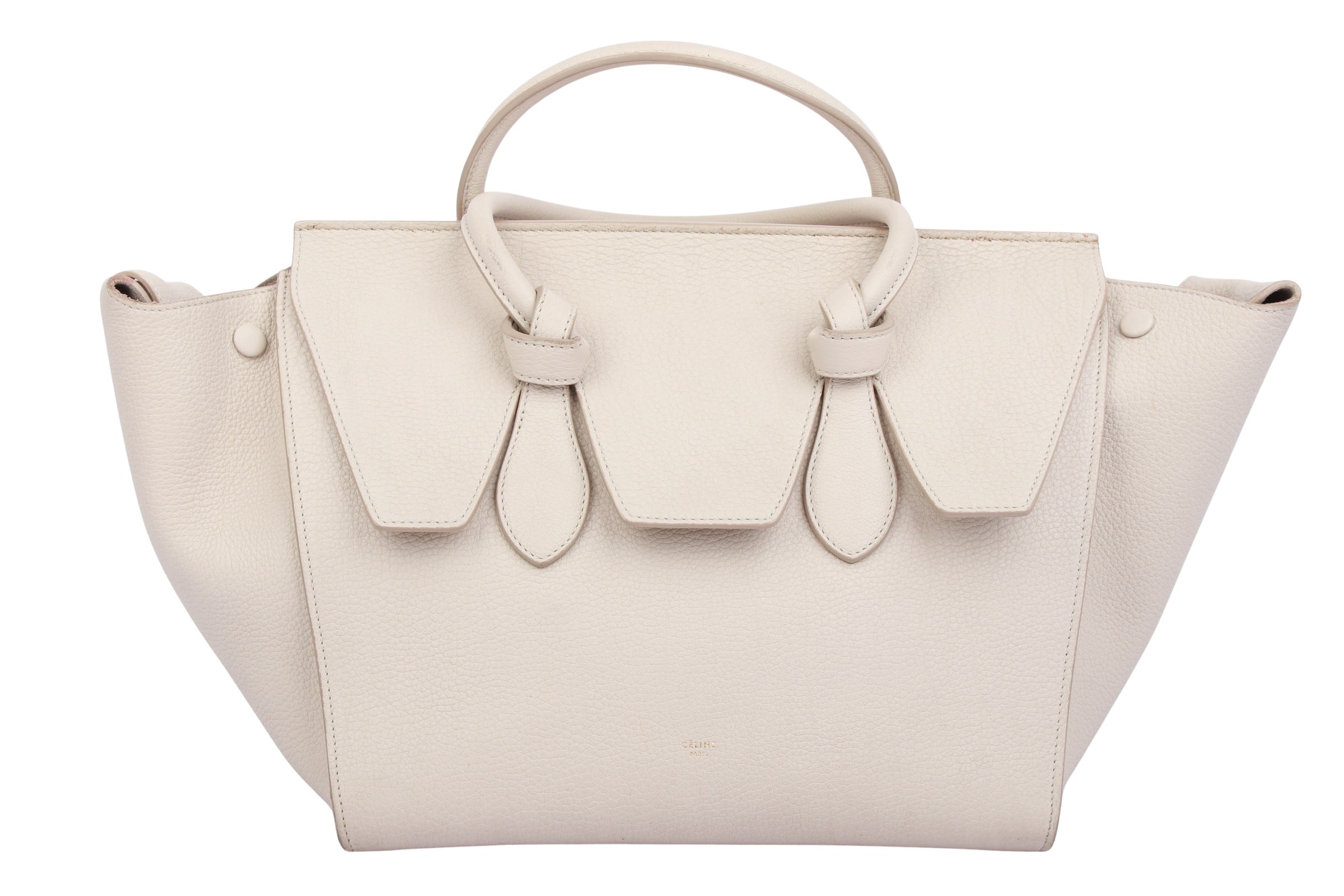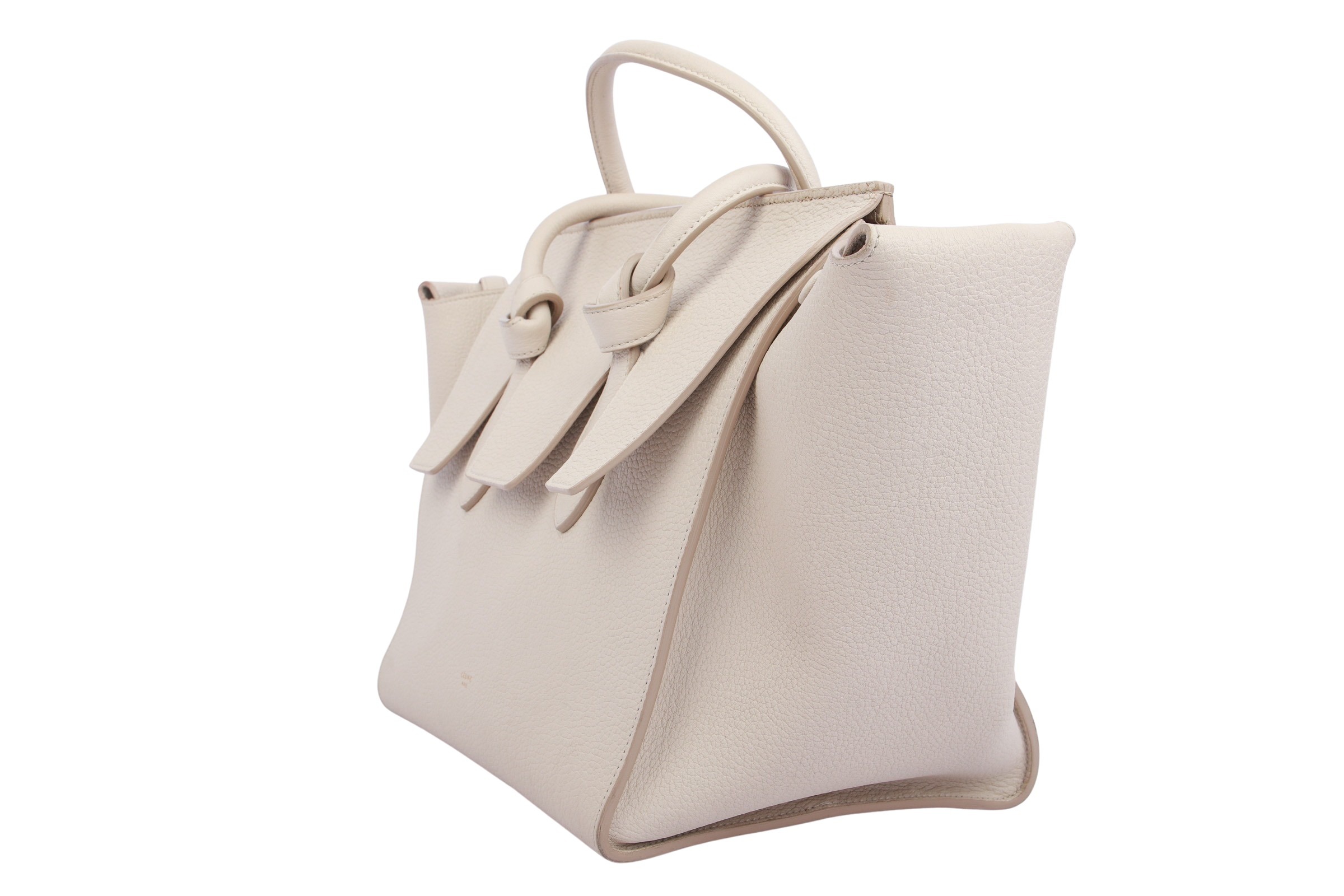 Luxuriöse Céline Tie Bag aus Leder. Charakteristisch sind die eleganten, seitlich ausklappbaren Flügel und die markanten Lederknoten an den Henkeln. Großzügiges Innenfach, hochwertiges Wildlederfutter und klare Linien machen sie zum perfekten Begleiter für Business und Alltag – zeitlos, edel und raffiniert zugleich.