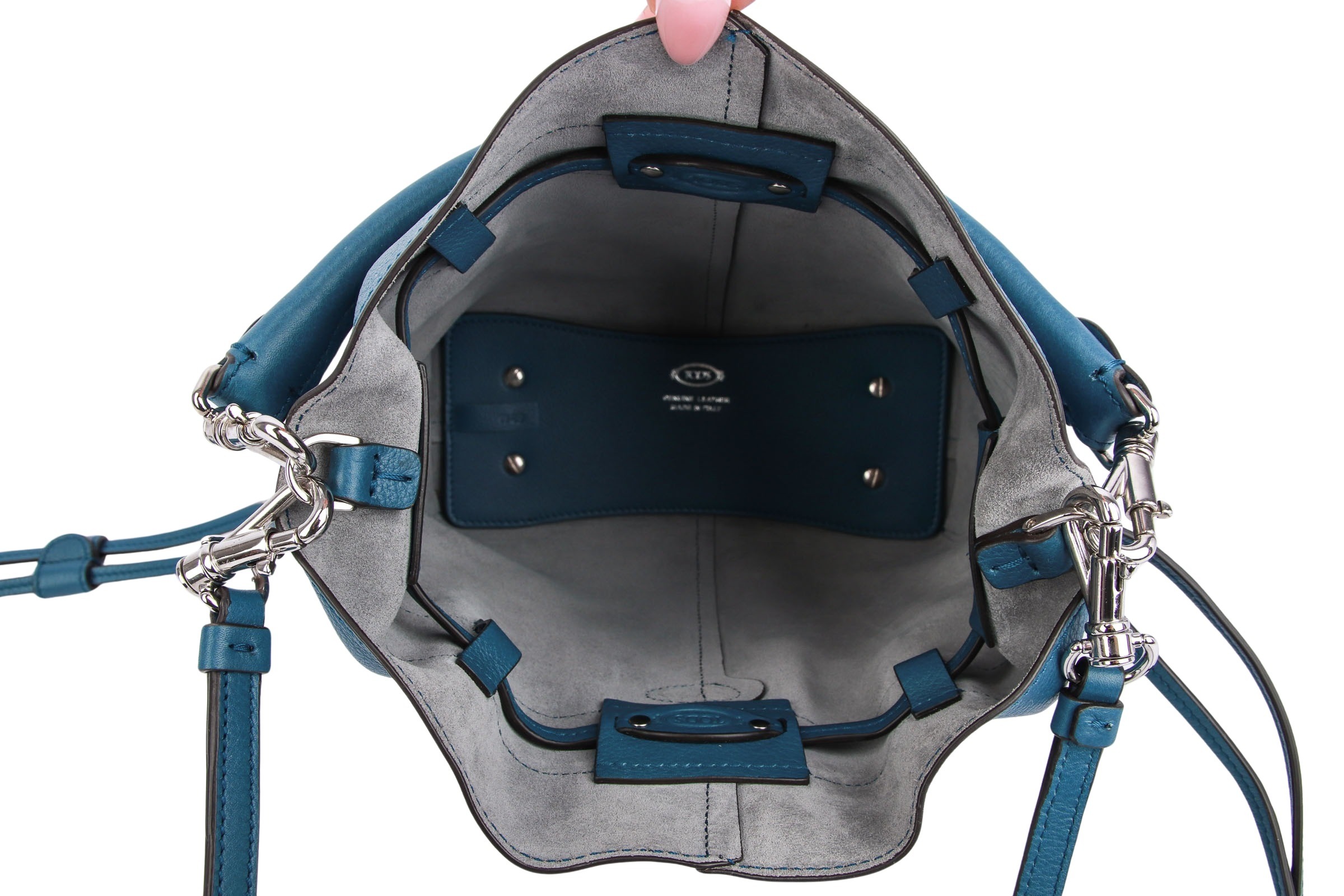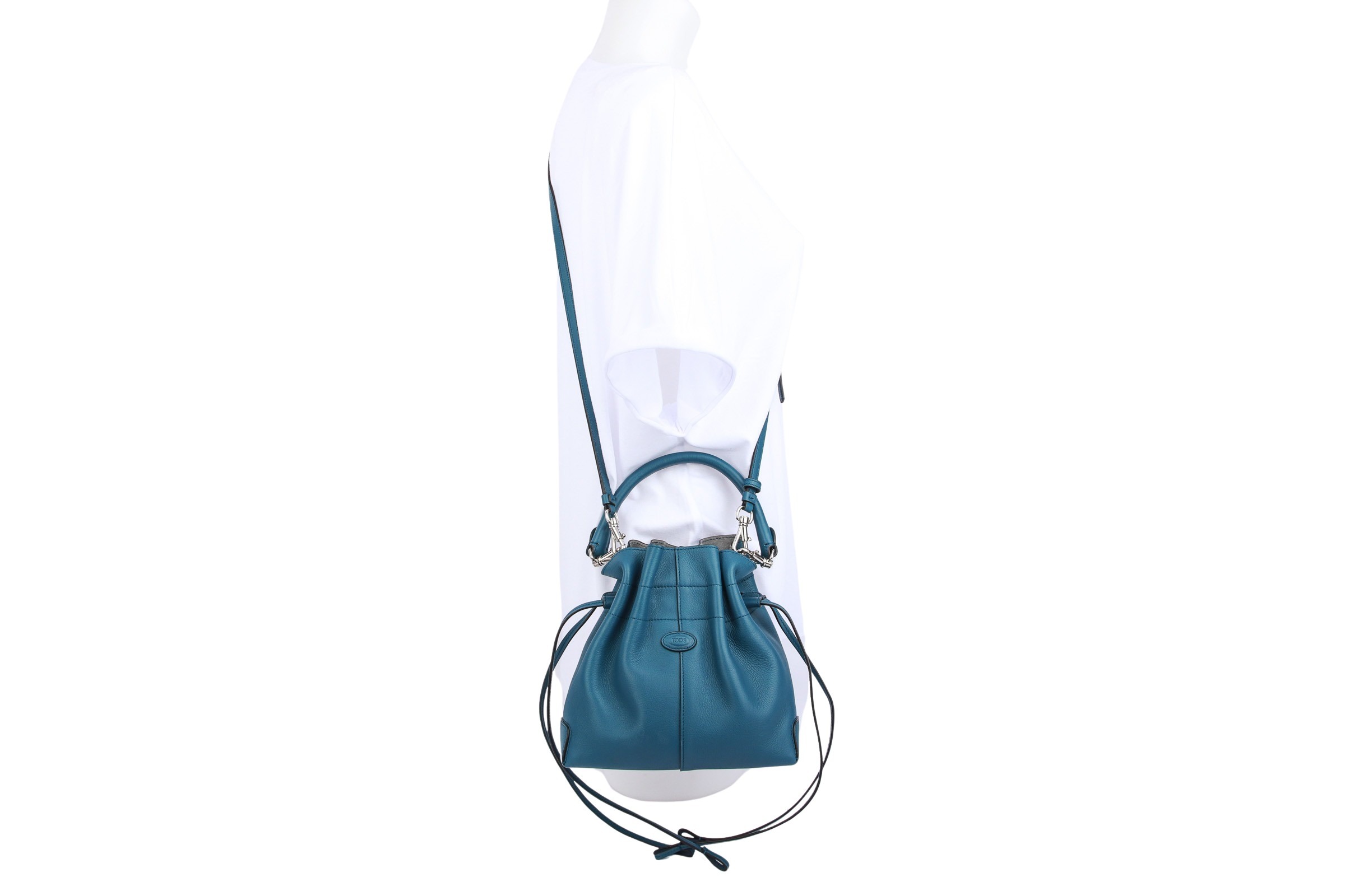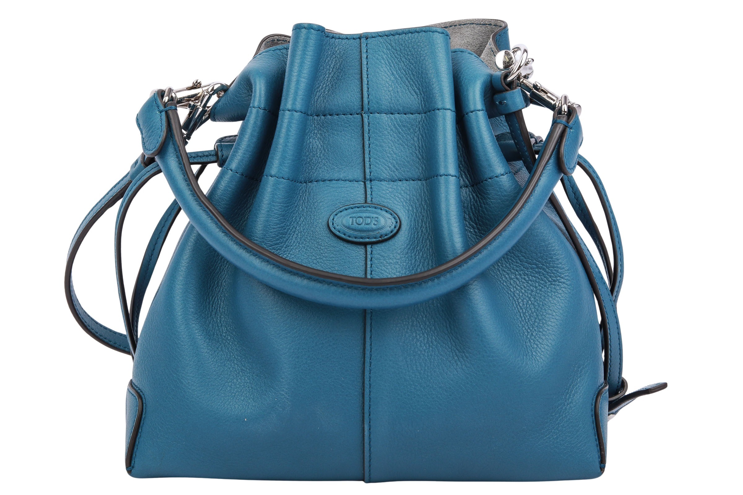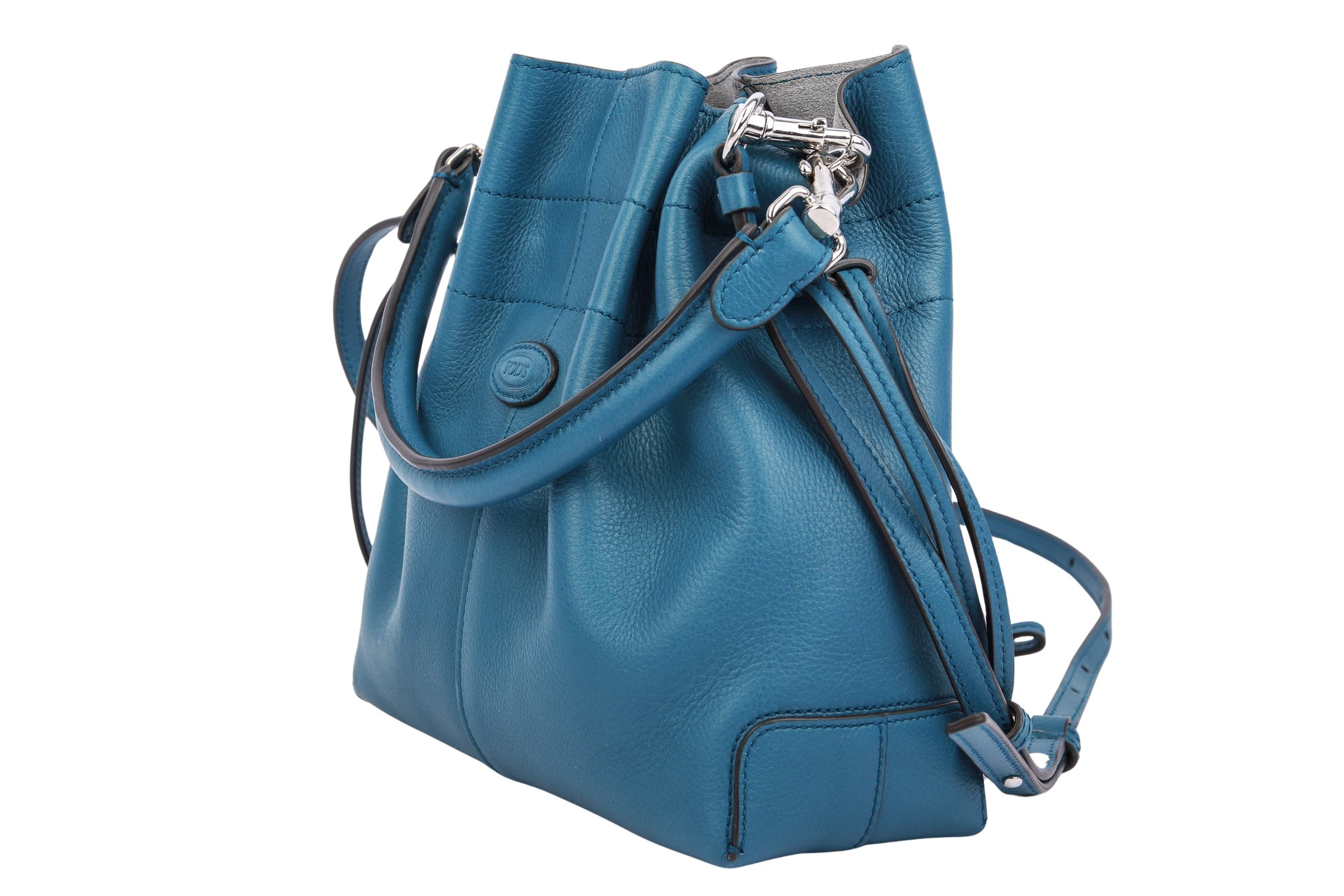 Die Tod's Beuteltasche aus weichem Kalbsleder in einem trendigen Blauton setzt einen modernen Akzent in jedem Look.