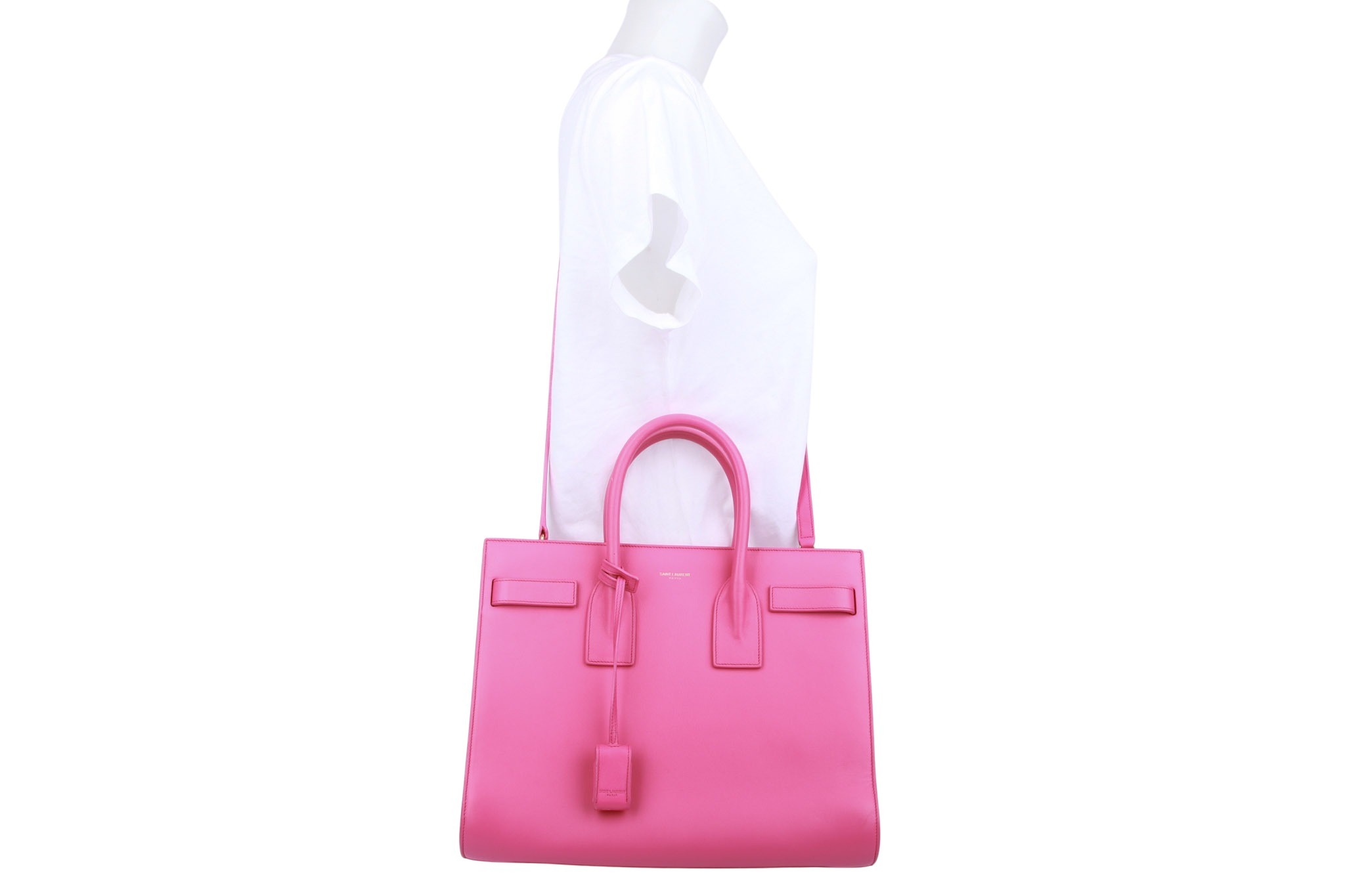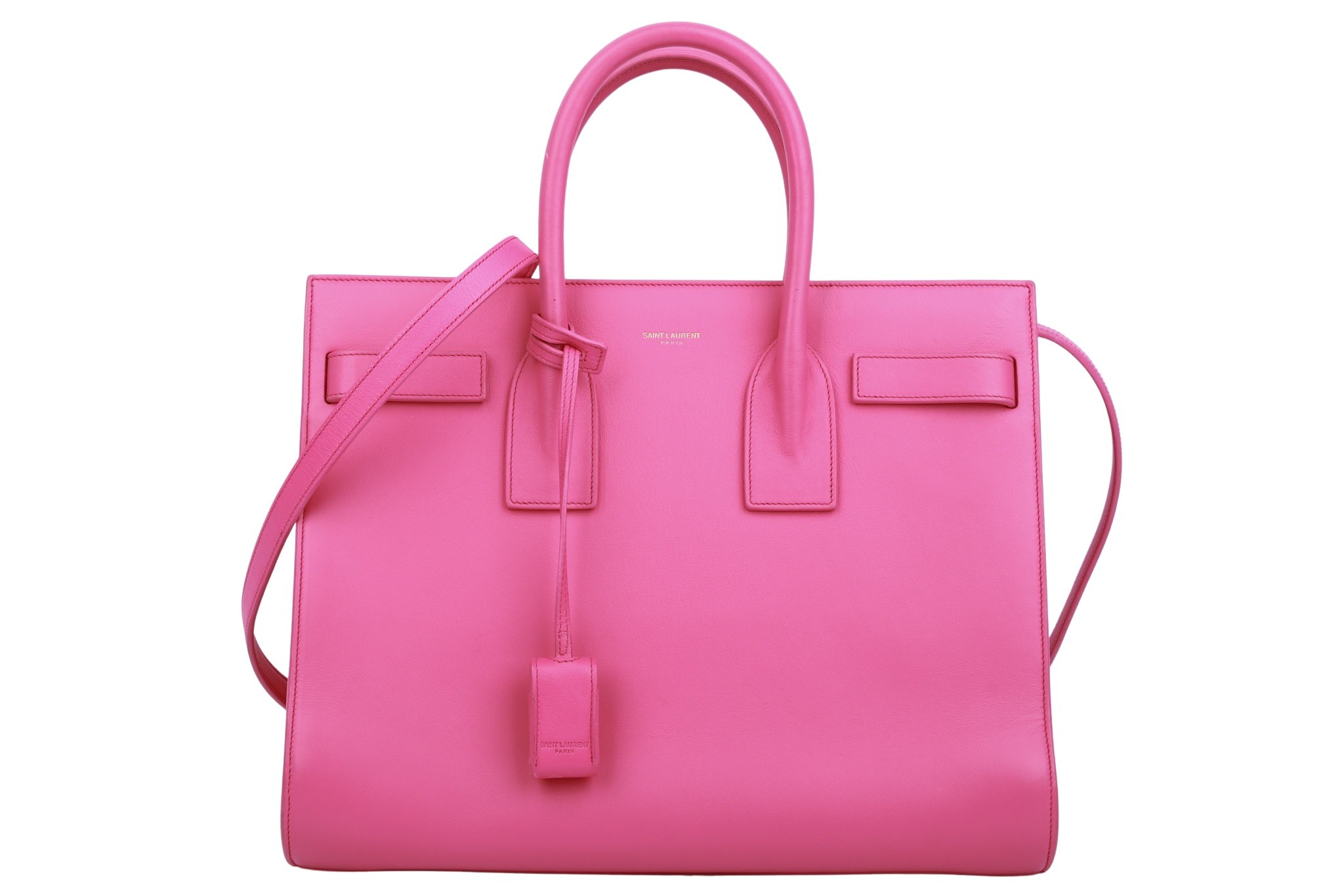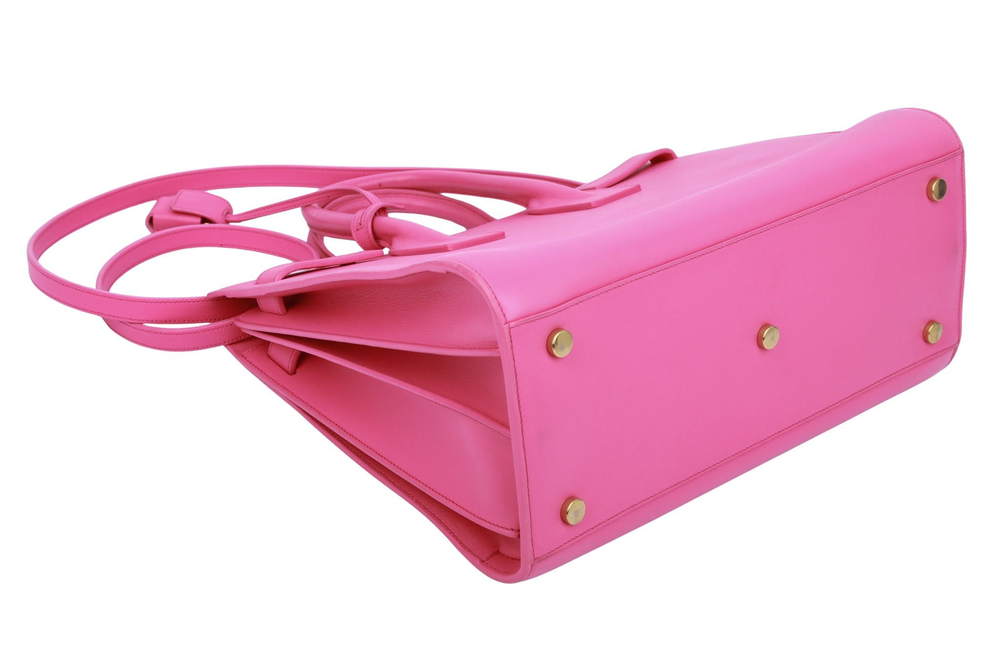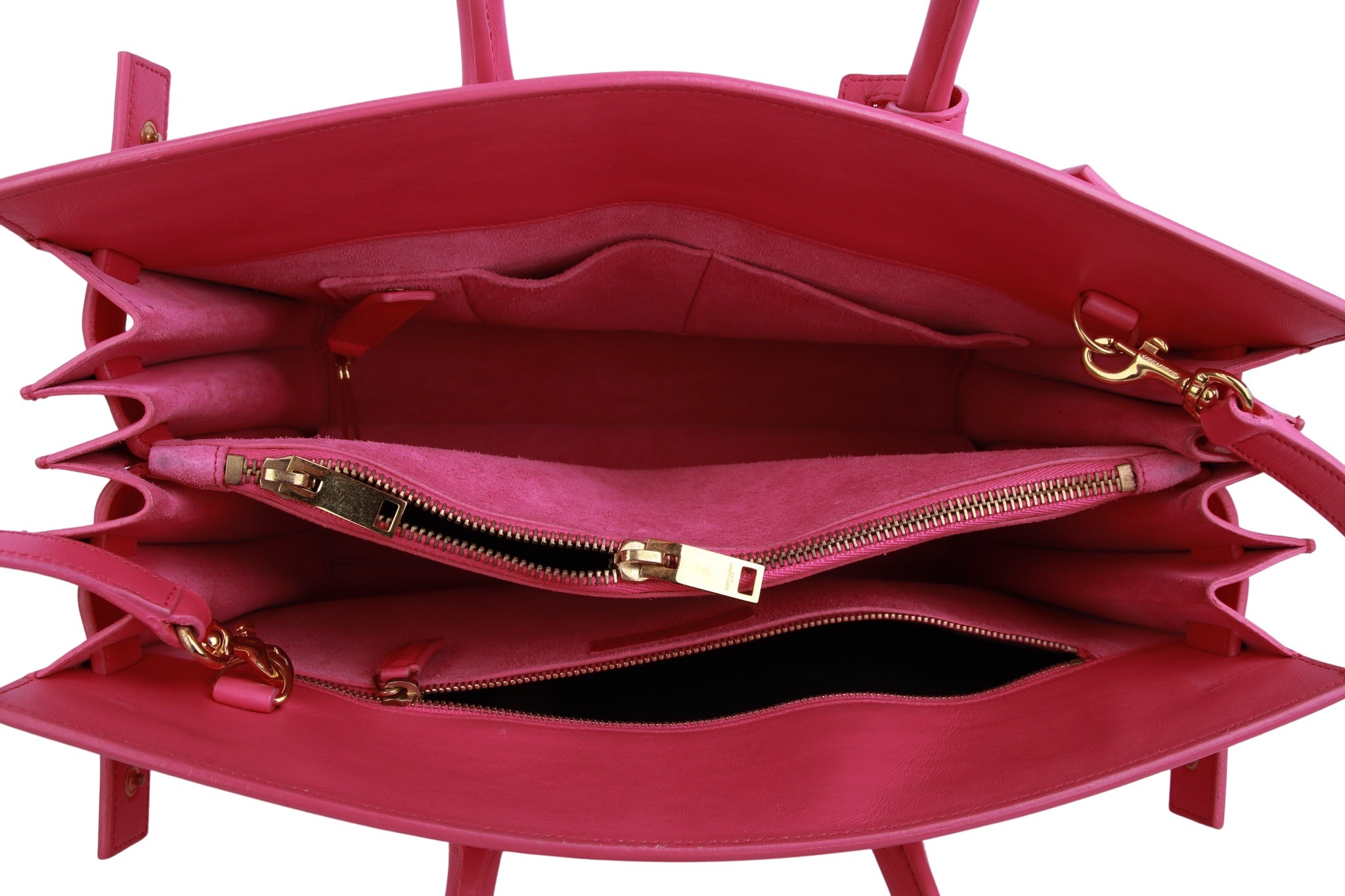 Die Tasche besteht aus hochwertigem glatten Leder in einer sanften Pink‑Nuance und besticht durch ihre markante Rechteck‑Form mit Doppelhenkeln sowie abnehmbarem Schulterriemen, perfekt für Hand‑ oder Schulter‑/Crossbody‑Tragevarianten. Das Design punktet mit seitlichen „Akkordeon“‑Falten, die für Struktur sorgen, sowie einem edlen Logo‑Prägedetail auf der Vorderseite. Innen bietet sie eine durchdachte Aufteilung mit Mittelfach und weiteren Fächern, ideal für den Alltag oder besondere Gelegenheiten.