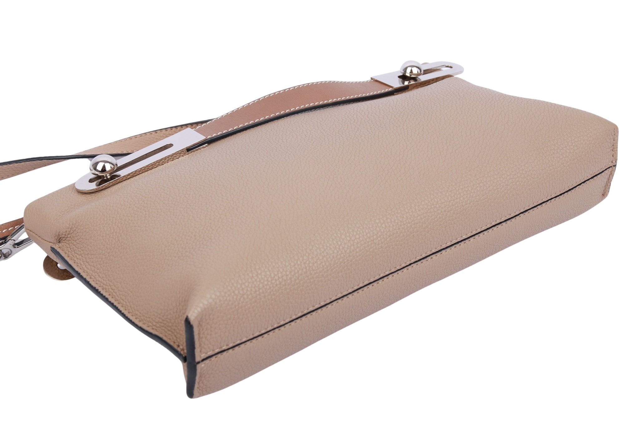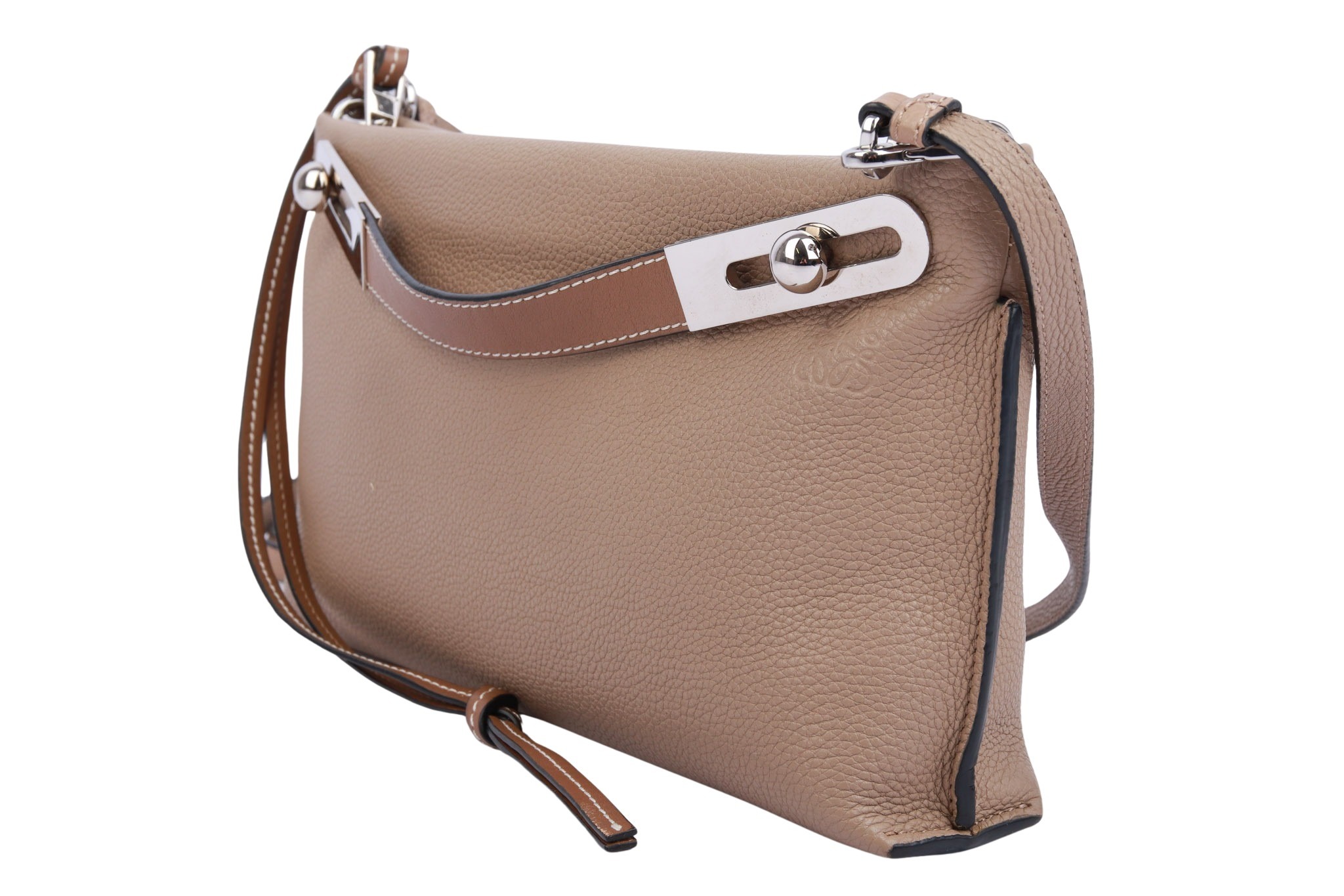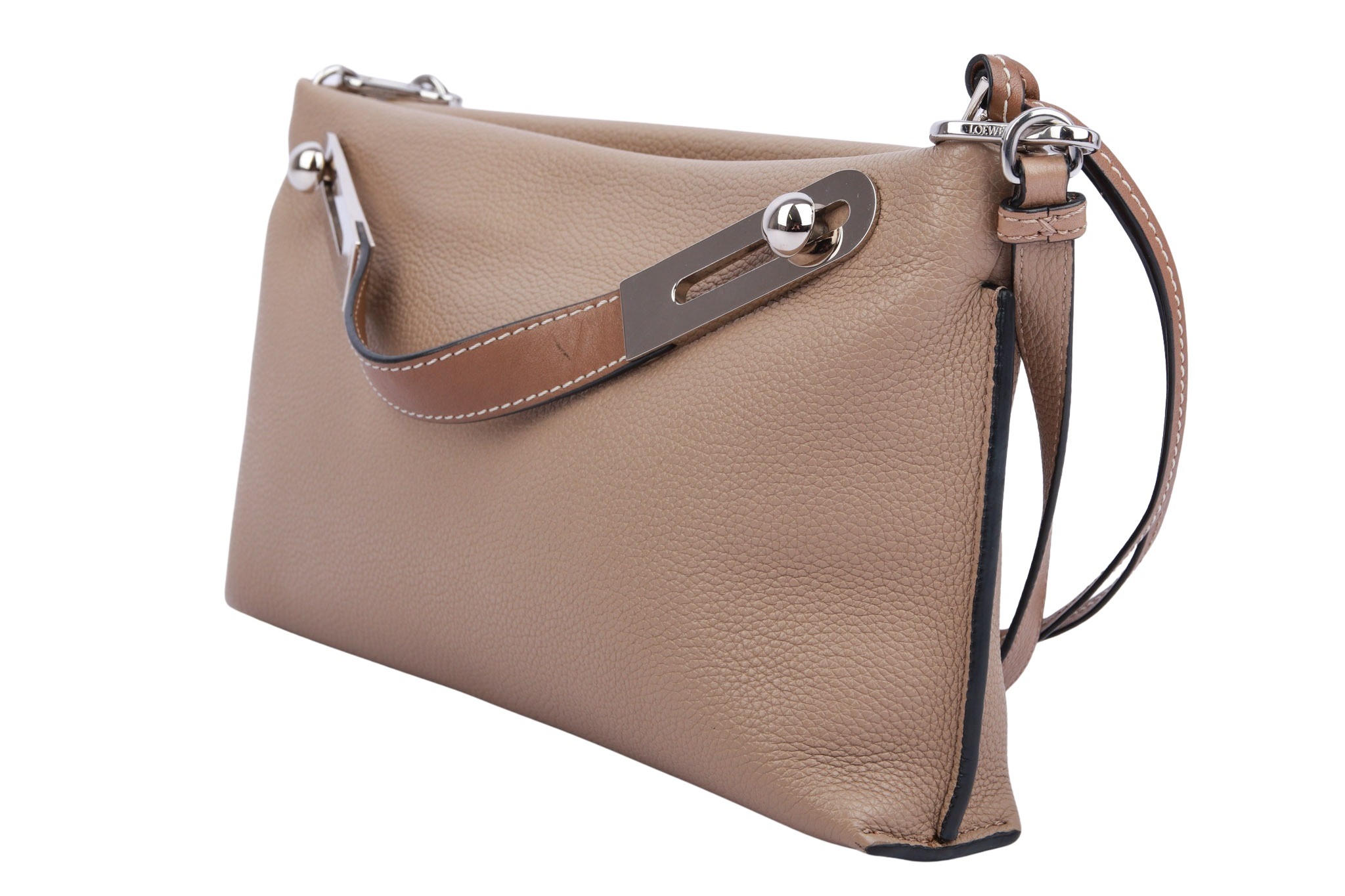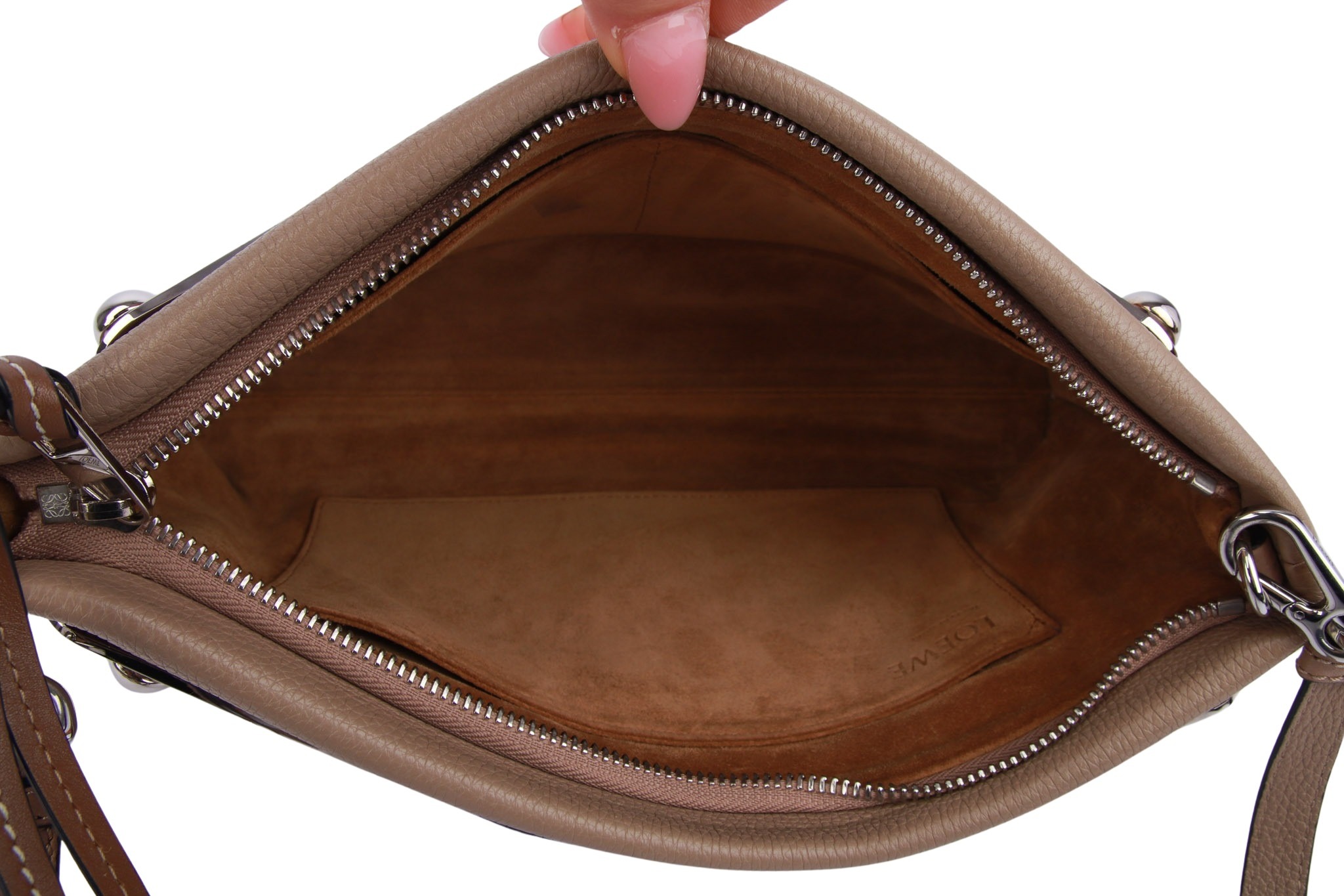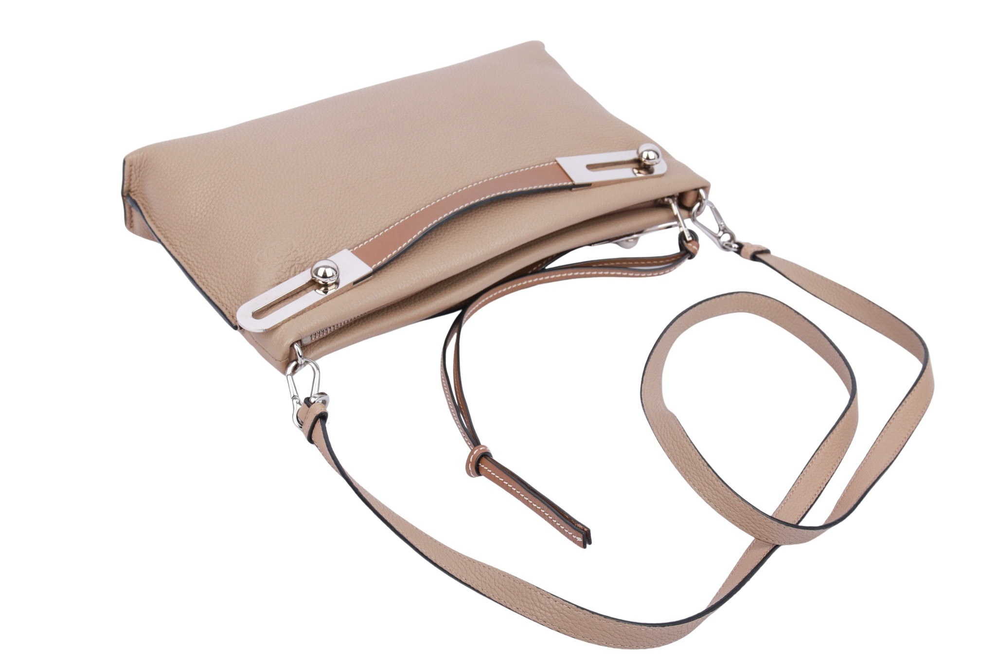 Die Loewe Missy Small in Beige besticht durch ihre kompakte, rechteckige Silhouette aus glattem Leder mit dezentem Logo‑Präge auf der Vorderseite – ein elegantes und zugleich zurückhaltendes Statement. Dank abnehmbarem Schulter‑/Crossbody‑Riemen und seitlichen Henkeln lässt sie vielfältige Tragemöglichkeiten zu: über der Schulter, quer getragen oder in der Hand. Auf der Innenseite erwartet Sie ein feines Innenfutter, oft mit Wildleder‑Optik, sowie eine praktische Aufteilung für Essentials wie Handy, Kartenetui und Schlüssel.