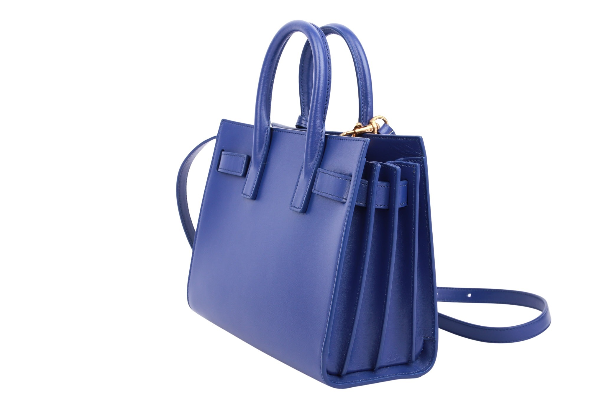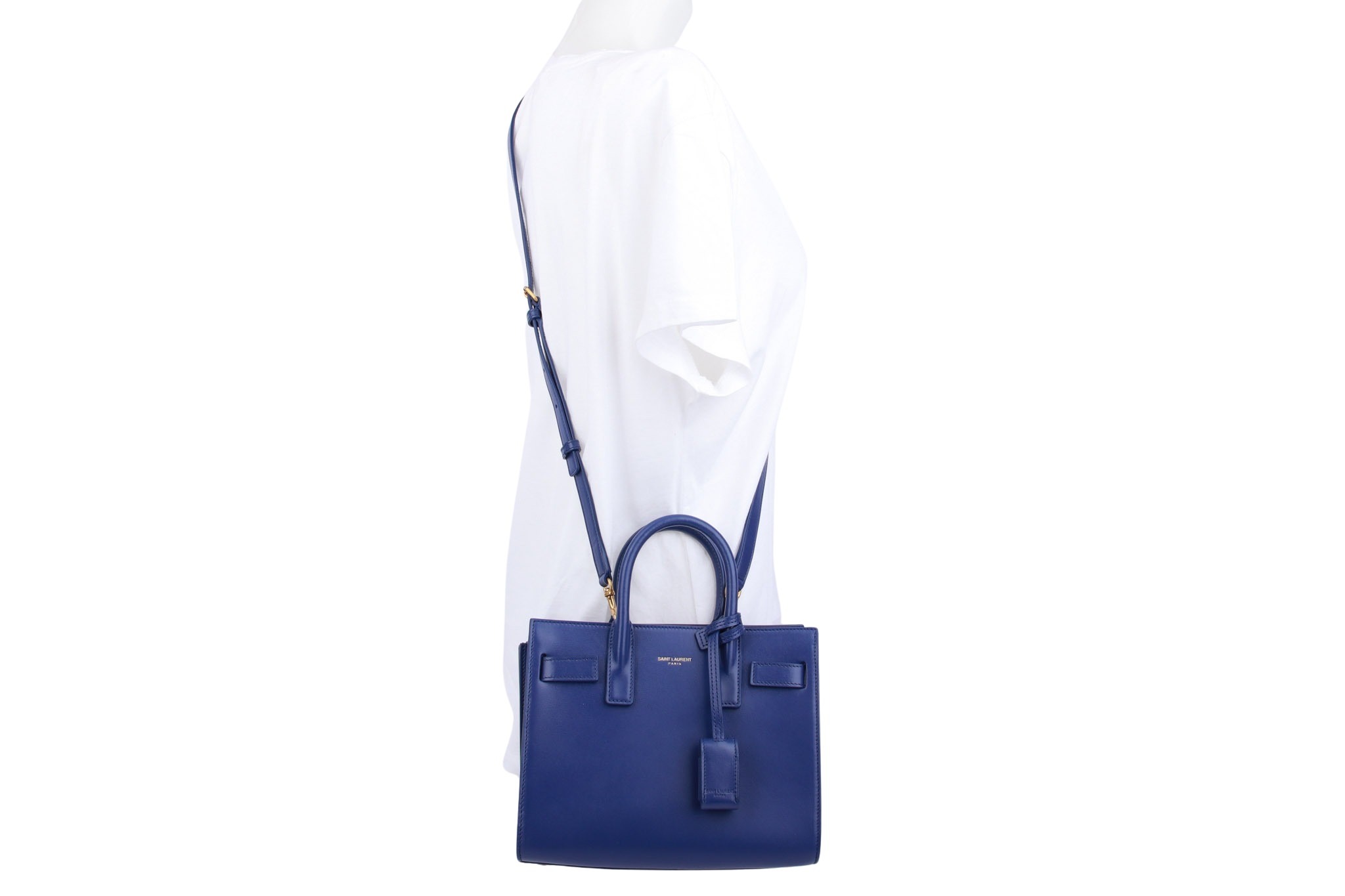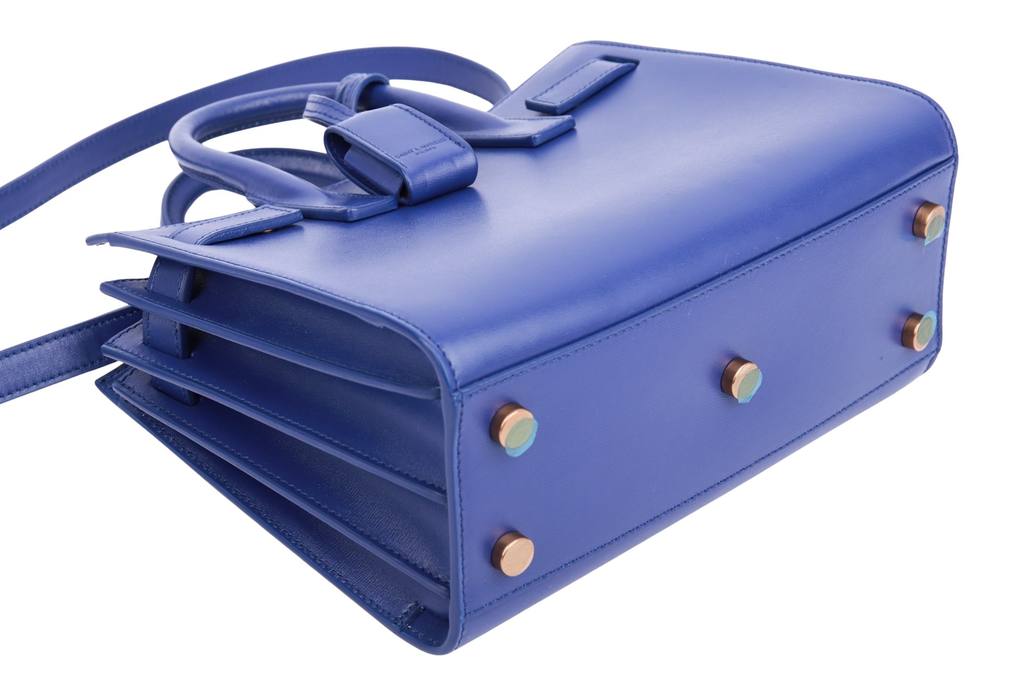 Eleganz trifft auf Raffinesse – die „Nano“‑Ausgabe der ikonischen Sac de Jour‑Tasche von Saint Laurent in einem tiefen Royalblau. Ein Statement‑Accessoire, das Stil und Luxus auf kleinem Raum vereint.