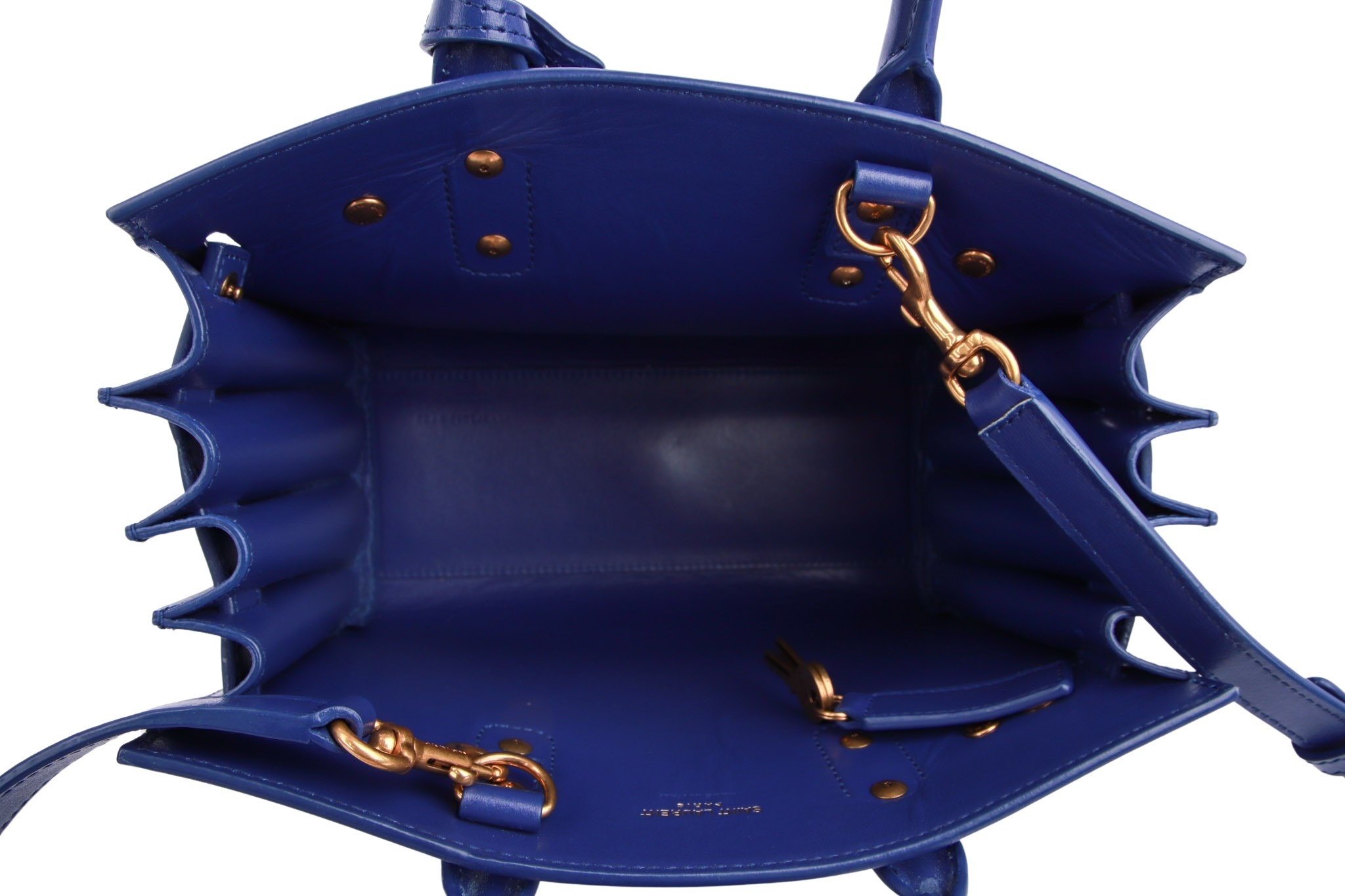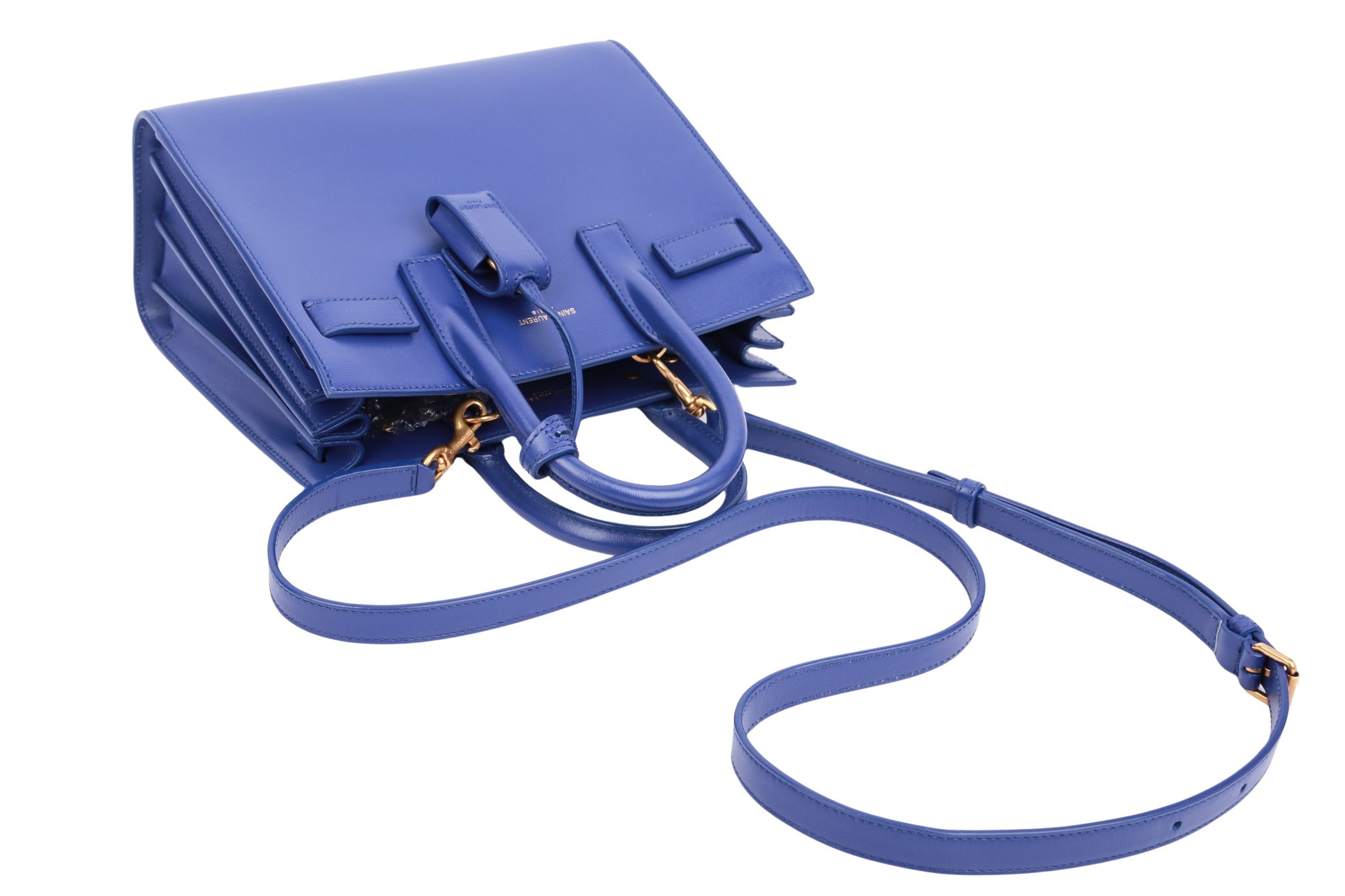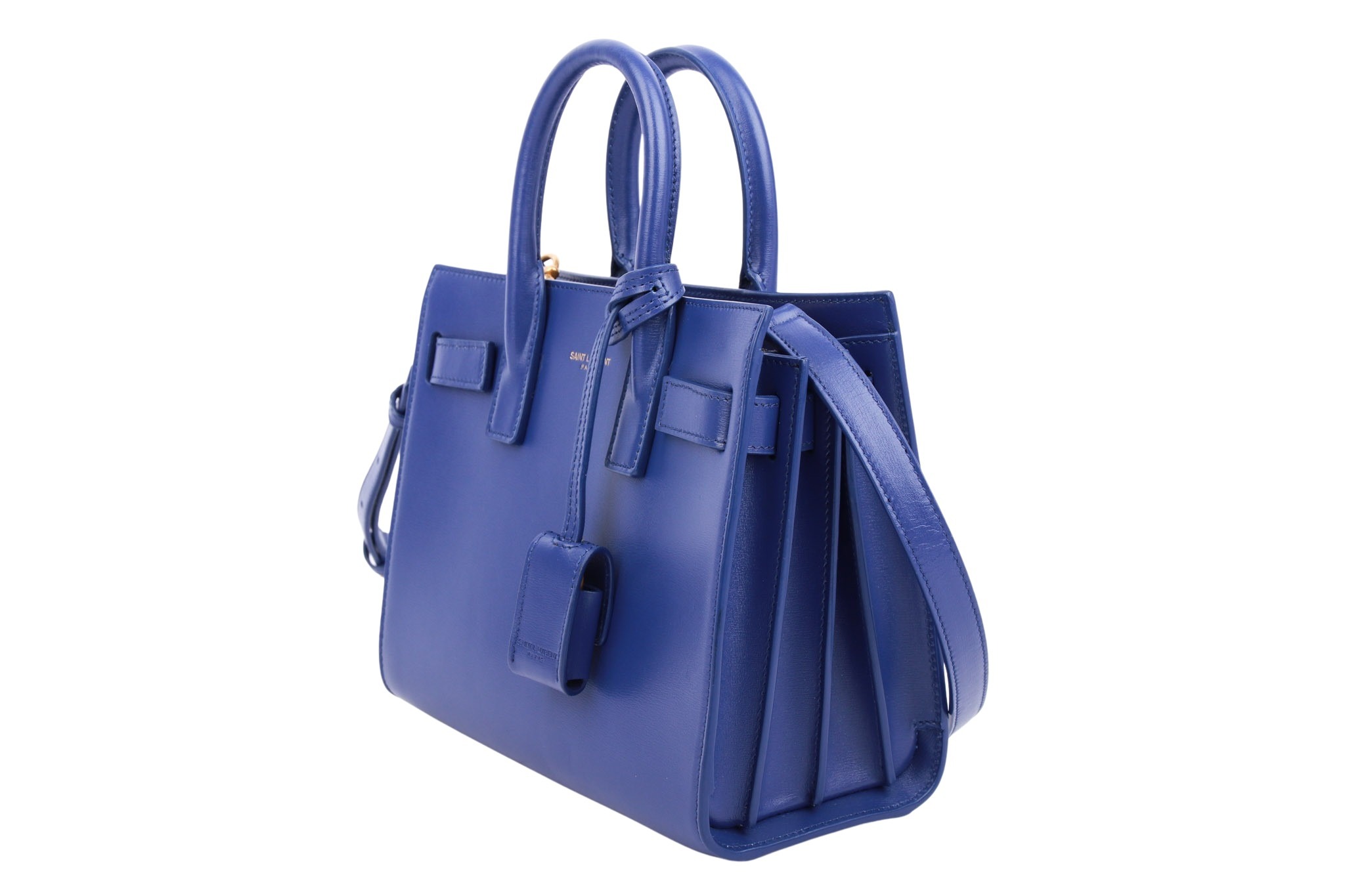 Eleganz trifft auf Raffinesse – die „Nano“‑Ausgabe der ikonischen Sac de Jour‑Tasche von Saint Laurent in einem tiefen Royalblau. Ein Statement‑Accessoire, das Stil und Luxus auf kleinem Raum vereint.