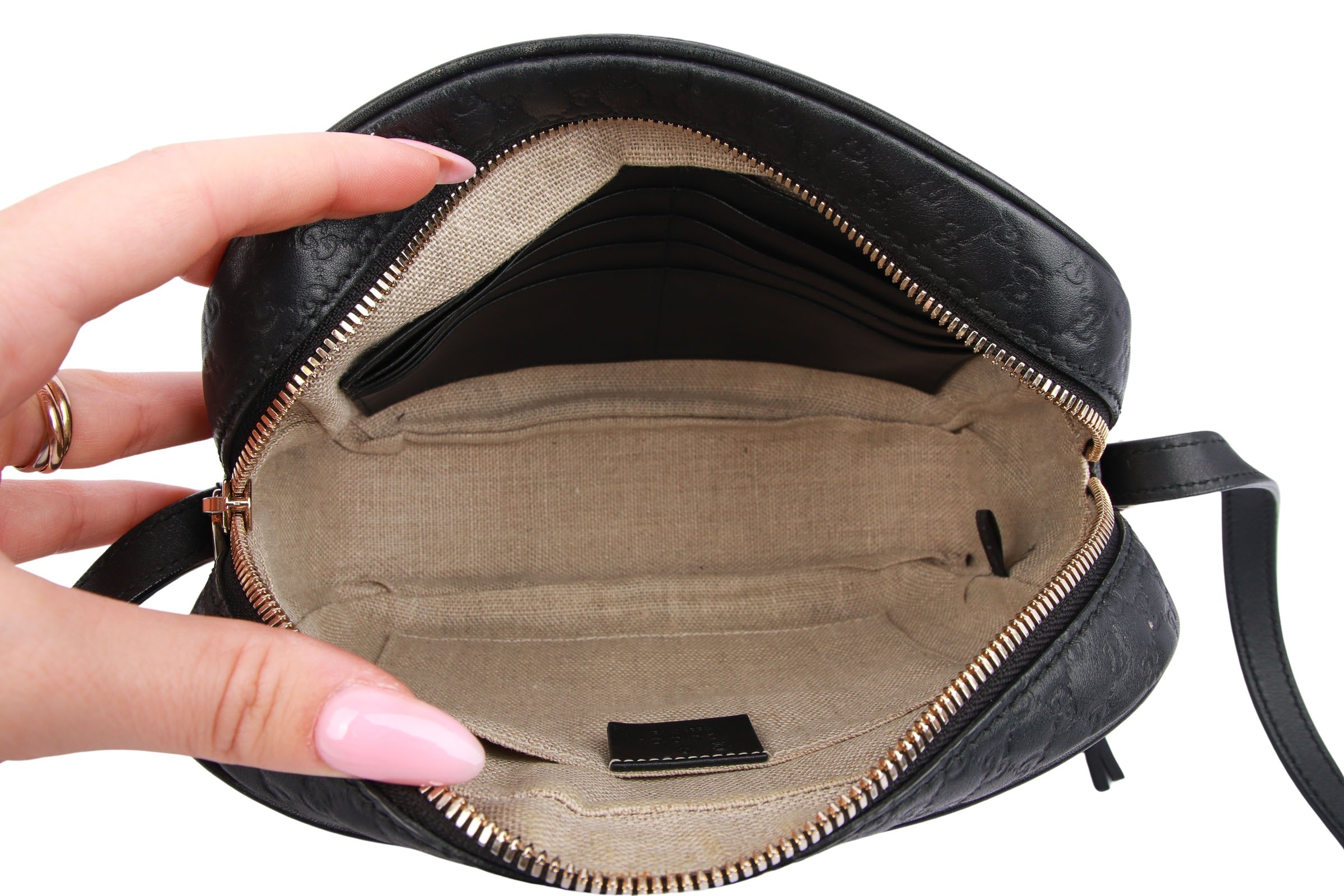 Die Gucci Microguccissima Bree Crossbody ist eine elegante, kompakte Umhängetasche aus fein geprägtem Kalbsleder mit dem charakteristischen „Micro Guccissima“-Monogram. Sie hat eine rechteckige Form mit Reißverschluss, verstellbarem Leder-Schulterriemen und einem strukturierten Innenfach mit Steckfächern. Hergestellt in Italien, verbindet sie zeitlosen Luxus mit praktischer Alltagstauglichkeit.