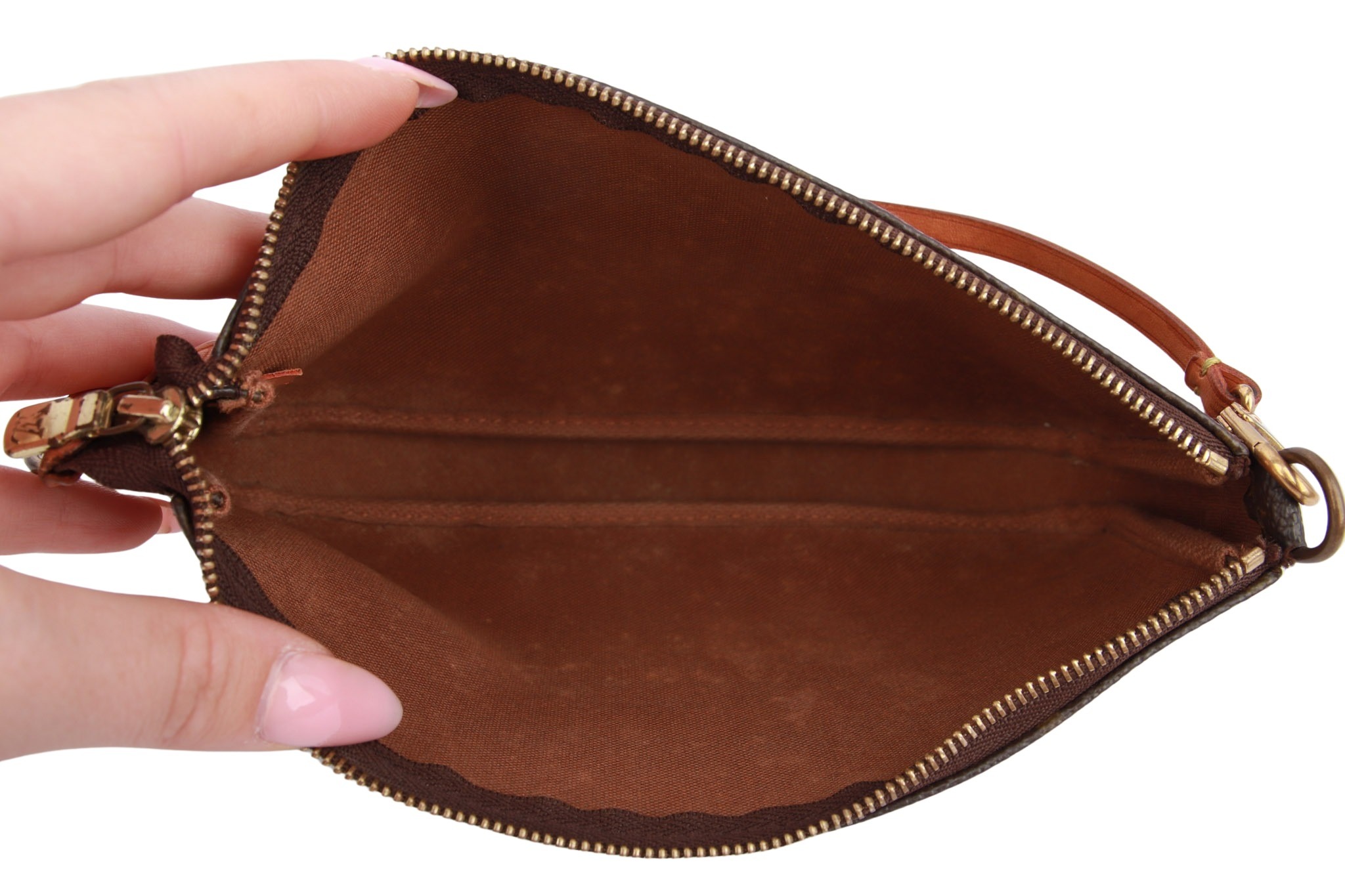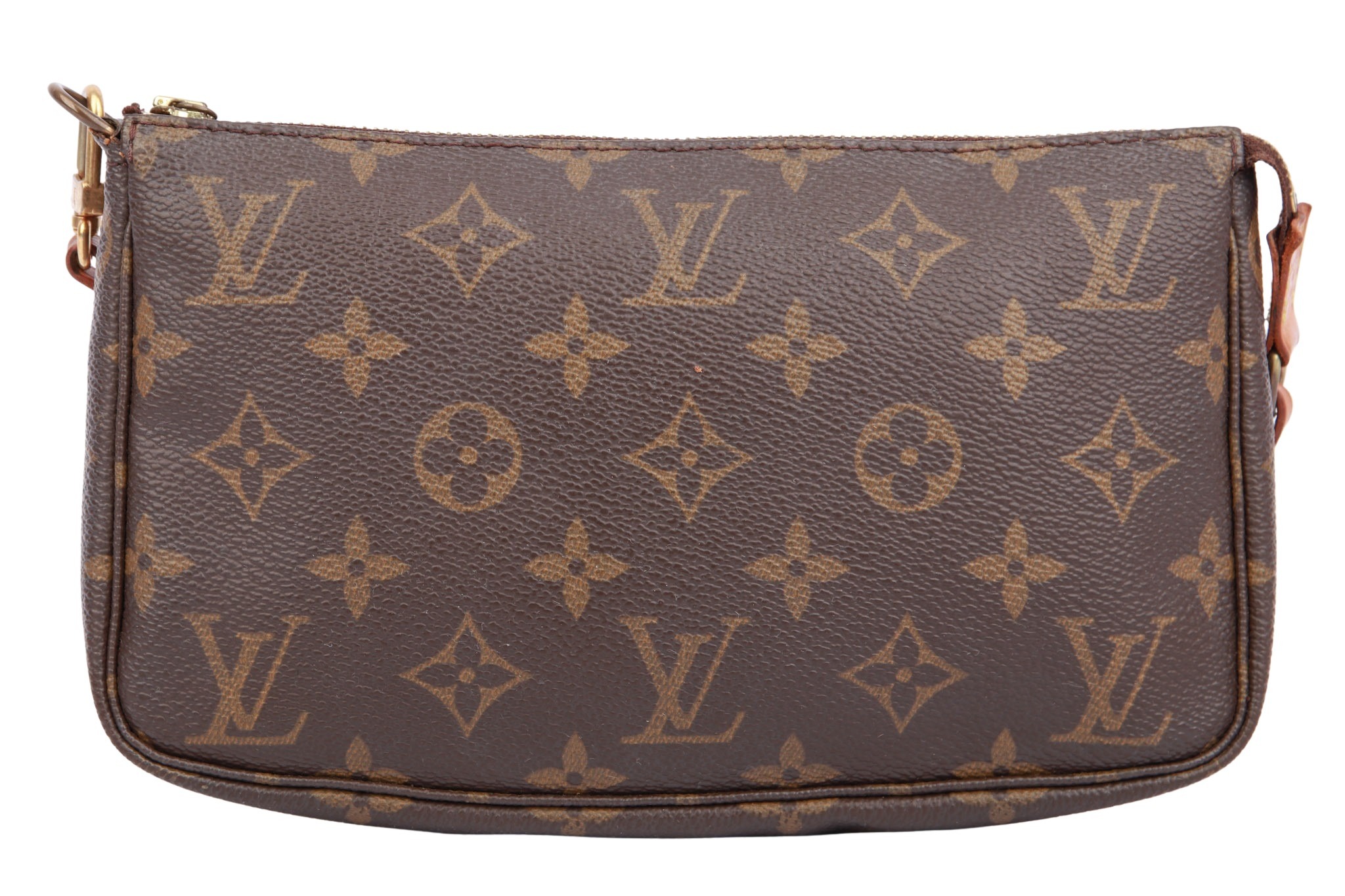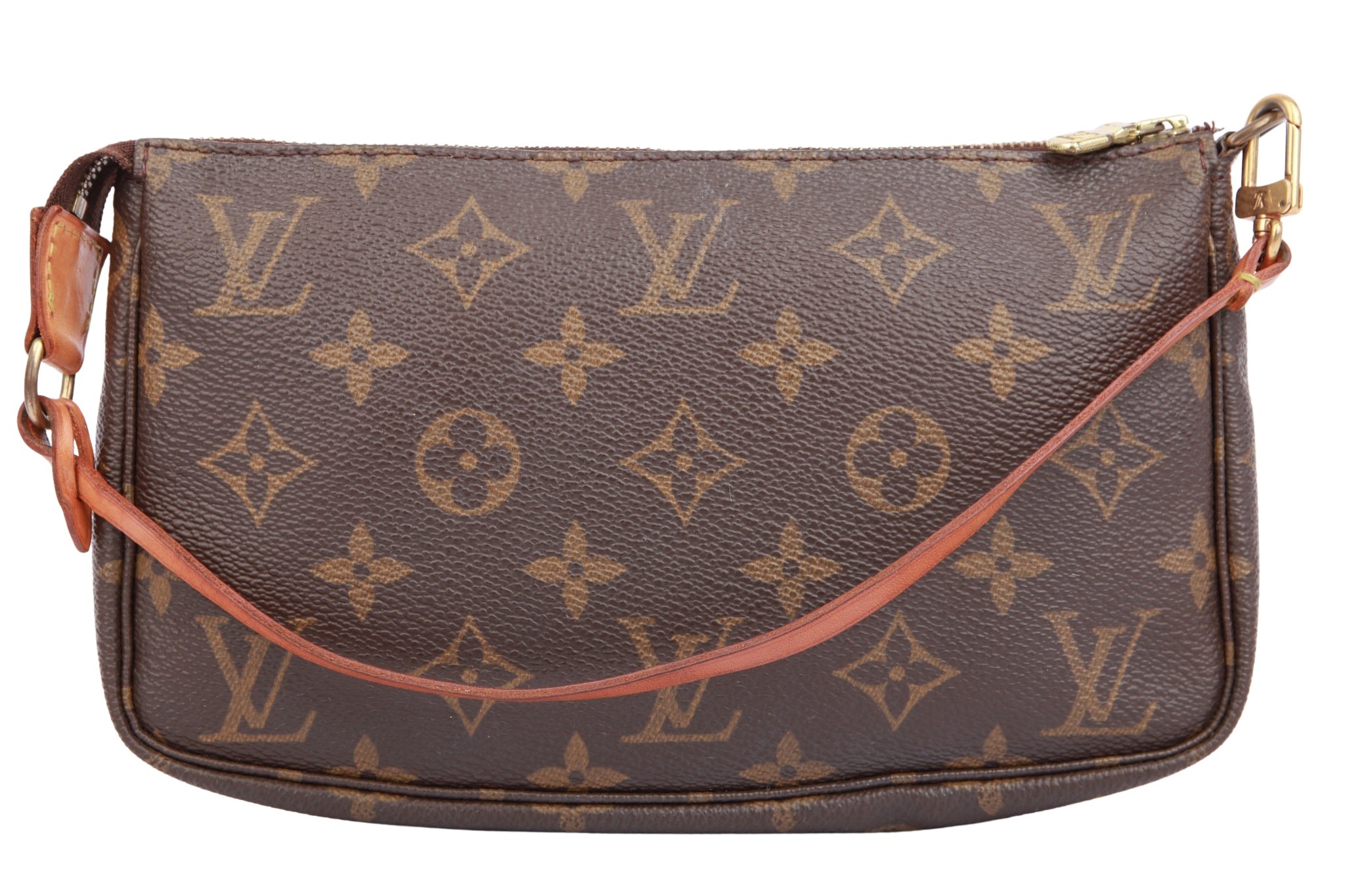 Die Louis Vuitton Pochette Monogram Canvas ist eine kompakte und vielseitige Tasche, die sich ideal für den Alltag oder den Abend eignet. Gefertigt aus dem ikonischen Monogram Canvas mit natürlichen Lederdetails, kombiniert sie zeitlosen Stil mit praktischer Funktion. Trotz ihrer handlichen Größe bietet sie Platz für das Wesentliche – wie Handy, Schlüssel und Kosmetik. Die Pochette kann als Clutch getragen, am Handgelenk geführt oder dank des abnehmbaren Riemens auch an größeren Taschen befestigt werden. Ein echtes Must-have, das sowohl einzeln als auch als Ergänzung zu anderen Louis Vuitton Taschen überzeugt.