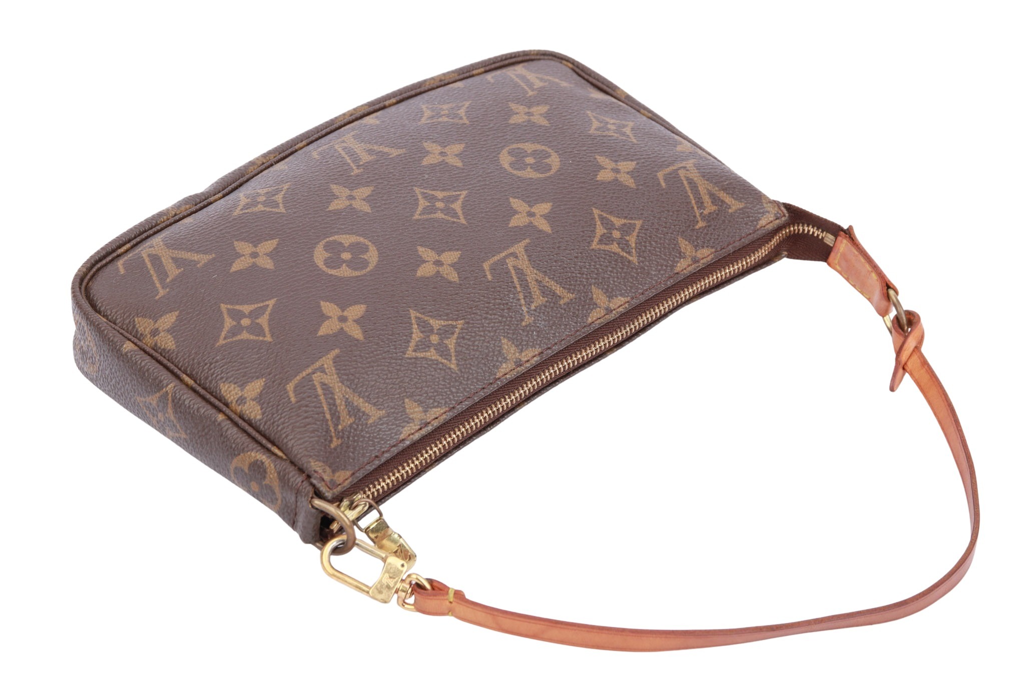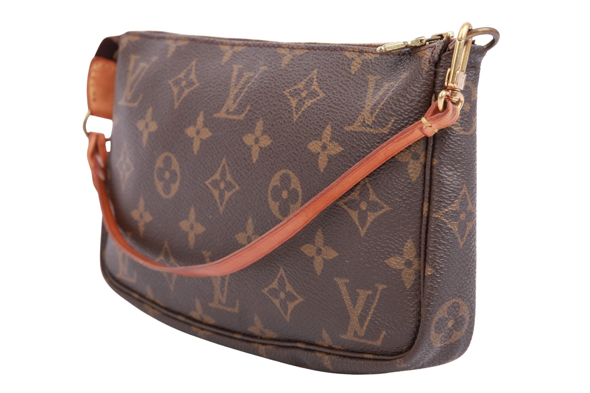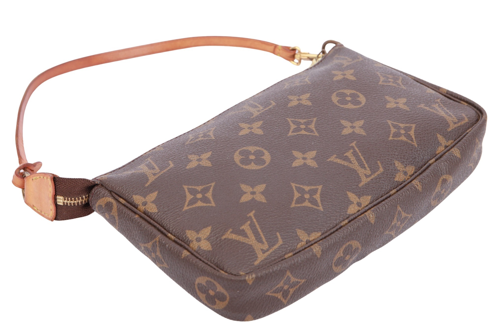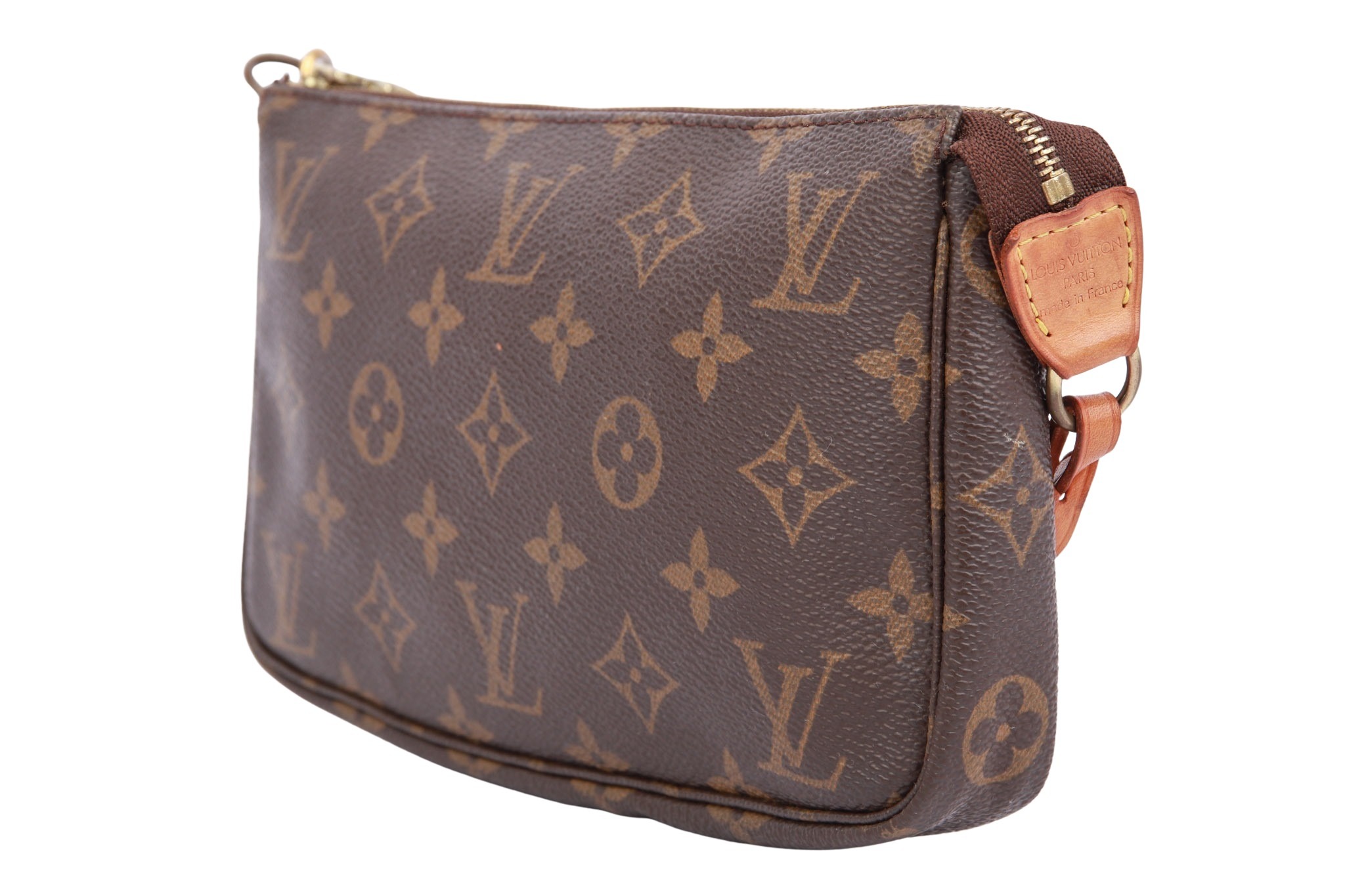 Die Louis Vuitton Pochette Monogram Canvas ist eine kompakte und vielseitige Tasche, die sich ideal für den Alltag oder den Abend eignet. Gefertigt aus dem ikonischen Monogram Canvas mit natürlichen Lederdetails, kombiniert sie zeitlosen Stil mit praktischer Funktion. Trotz ihrer handlichen Größe bietet sie Platz für das Wesentliche – wie Handy, Schlüssel und Kosmetik. Die Pochette kann als Clutch getragen, am Handgelenk geführt oder dank des abnehmbaren Riemens auch an größeren Taschen befestigt werden. Ein echtes Must-have, das sowohl einzeln als auch als Ergänzung zu anderen Louis Vuitton Taschen überzeugt.